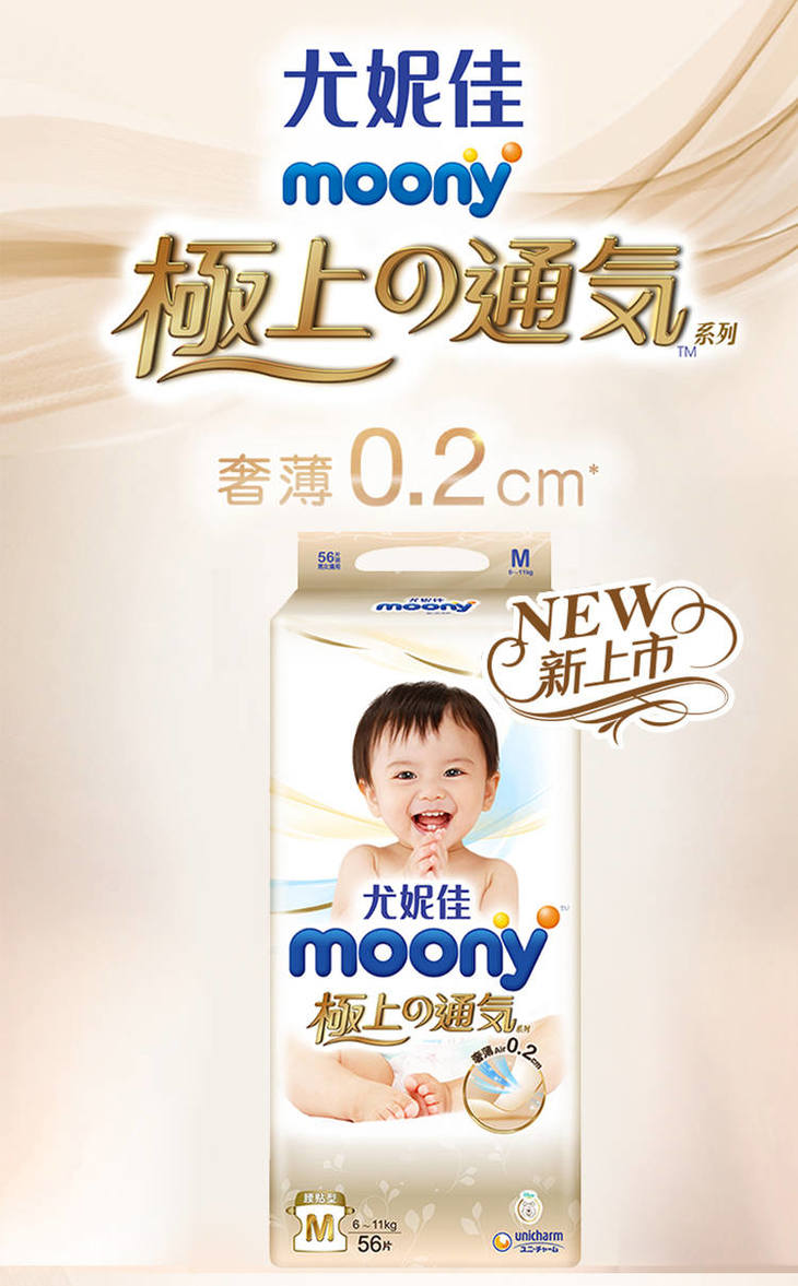 尤妮佳moony极上通气系列纸尿裤S76/M56/L48/XL38