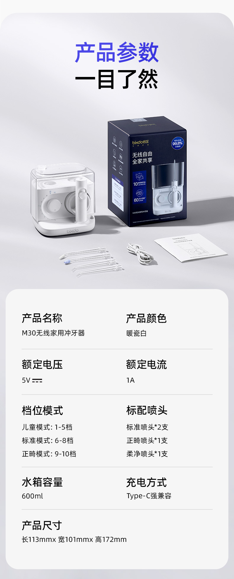【马泷齿科专享】倍至小魔盒无线家用十档台式冲牙器M30