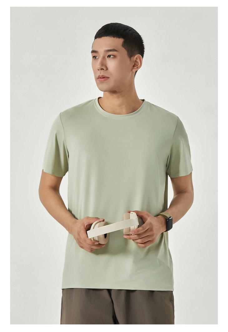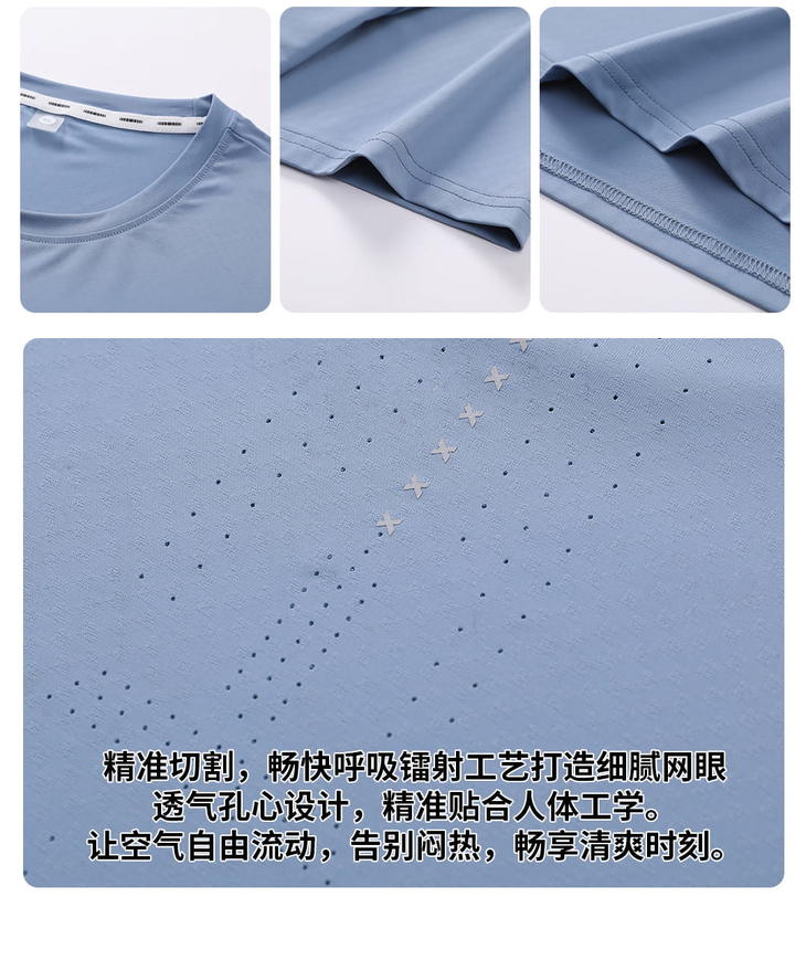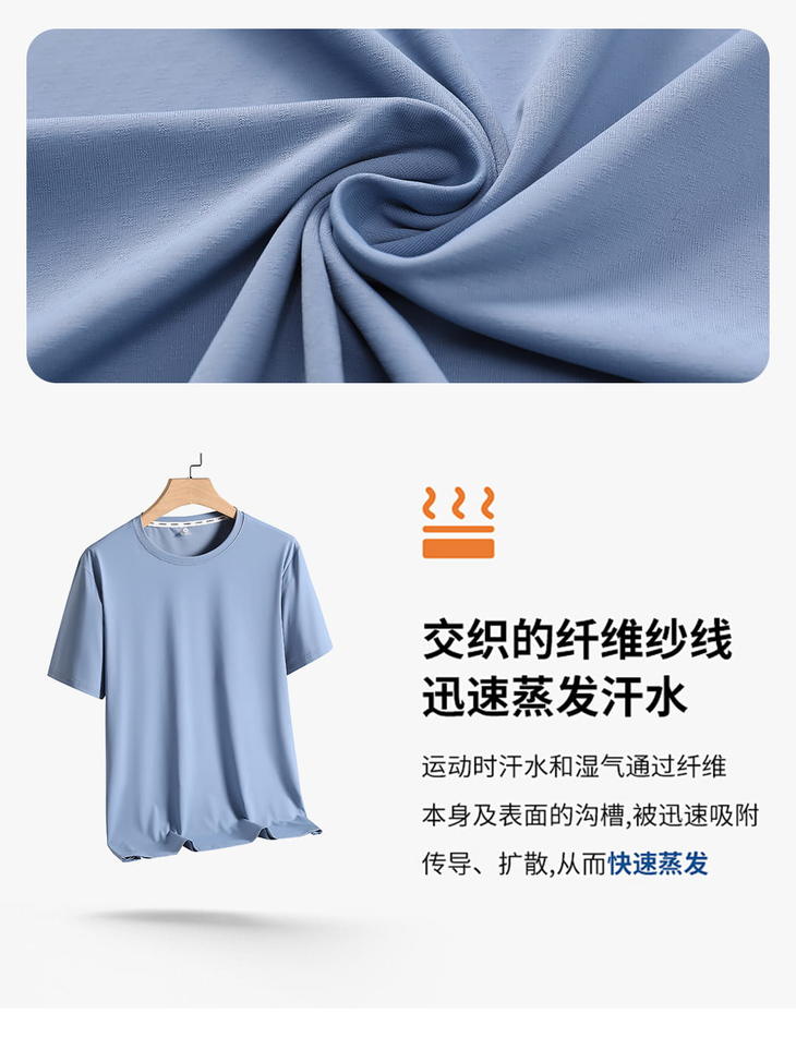 【畅爽出行 冰感科技!】SKAH狮卡赫提花冰丝速干T恤9322 宽松圆领透气上衣运动休闲跑步健身男士户外短袖