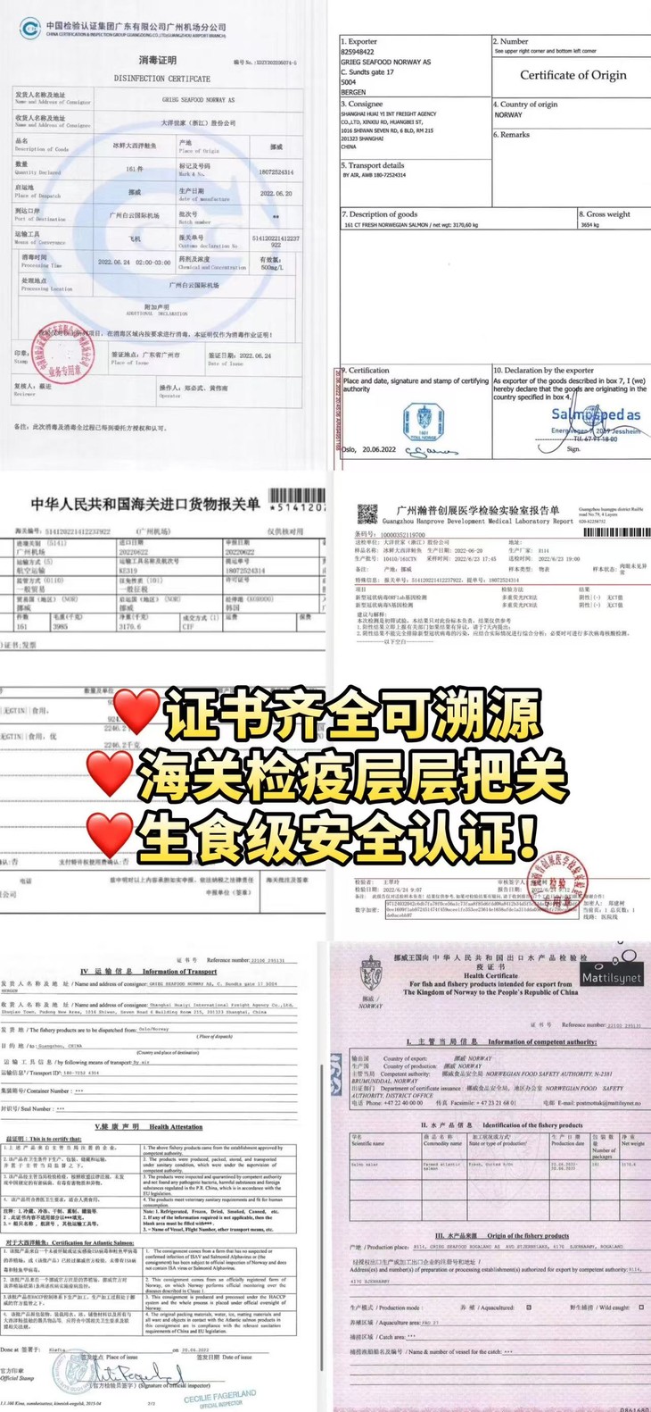【三文鱼】挪威北极圈冰川海域直供,深海纯净无污染,每一条三文鱼都带着北大西洋的“冷冽鲜甜。证书齐全可溯源,海关检疫层层把关,生食级安全认证!