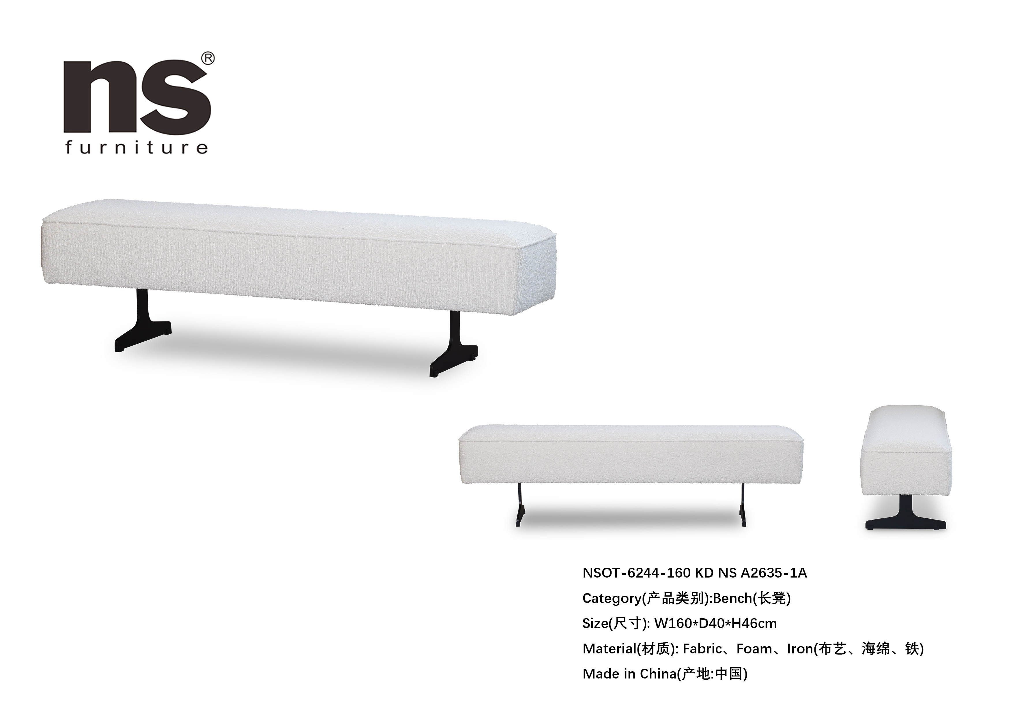 NS家居ns furniture软包布艺长凳NSOT-6244-160 KD NS A2635-1A