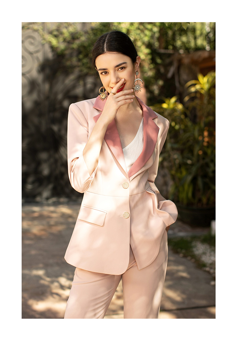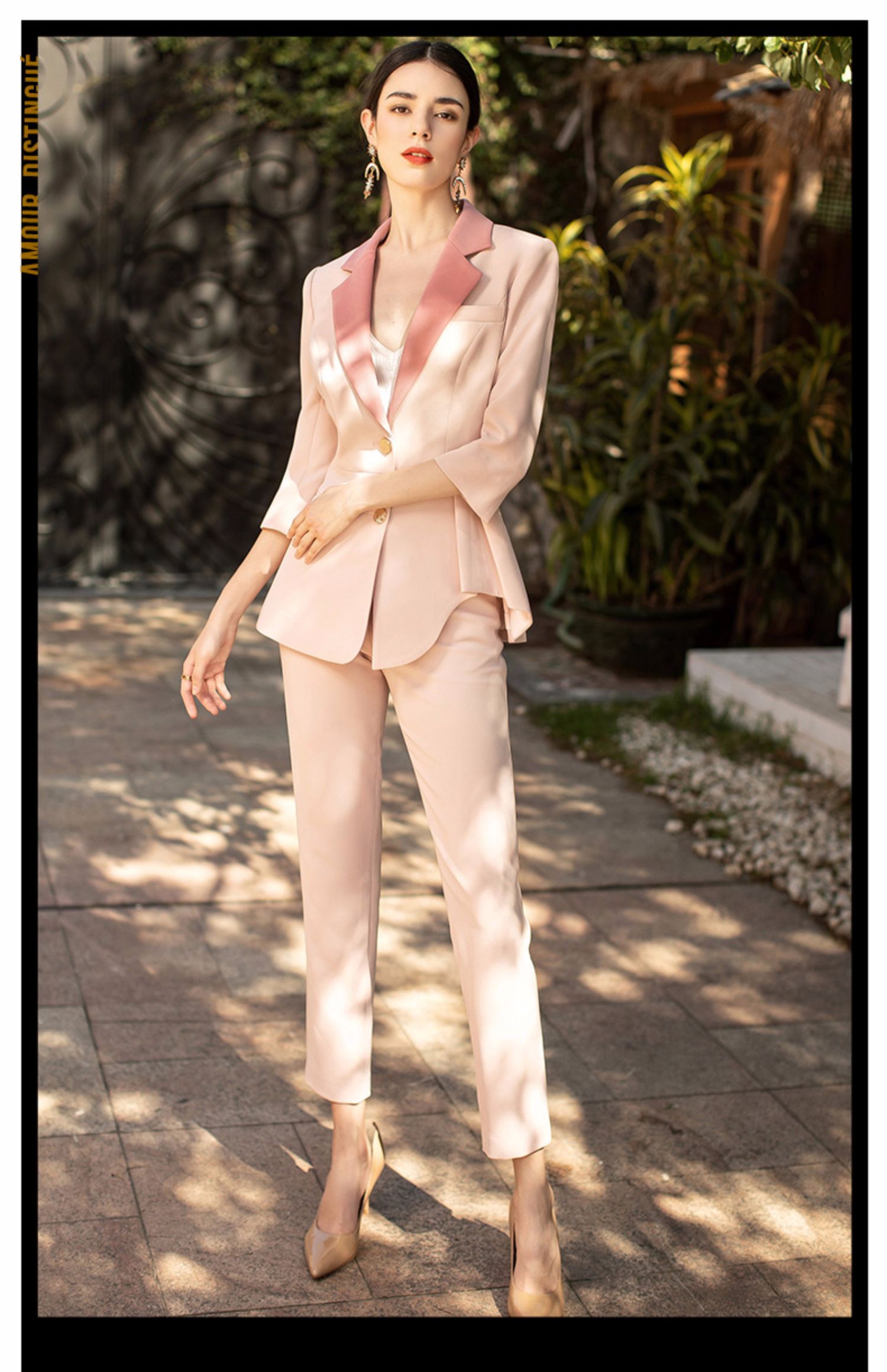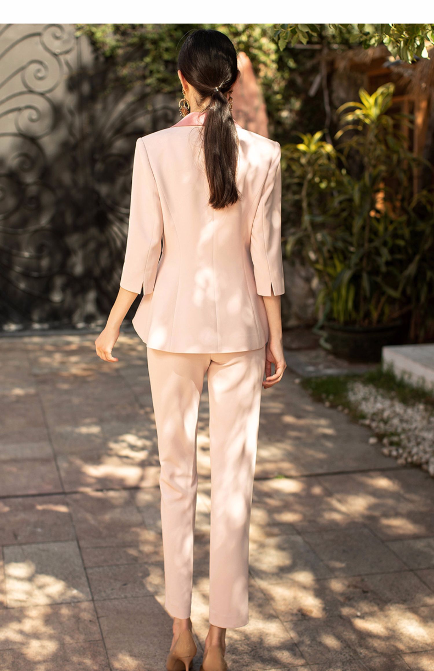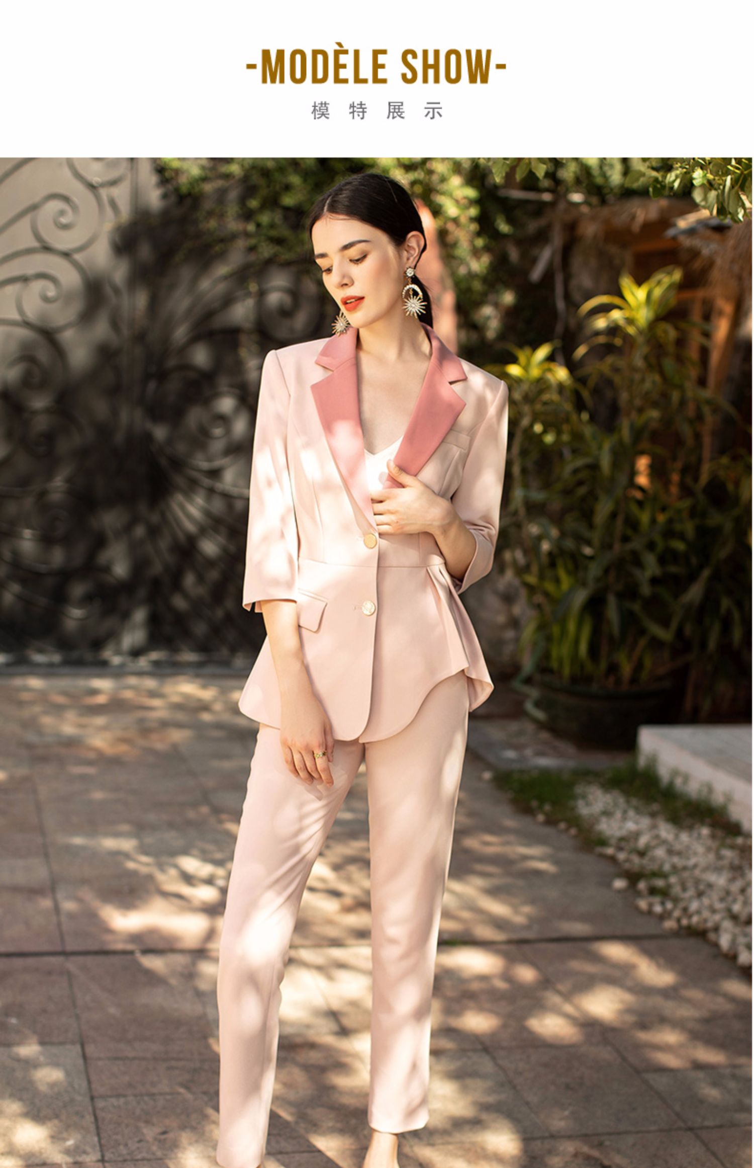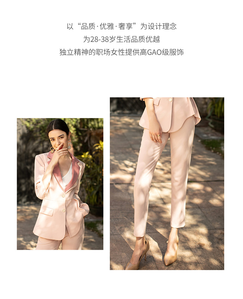 IWY/粉色职业西装套装简约优雅收腰显瘦艺考主持人时尚气质英伦范CP1329