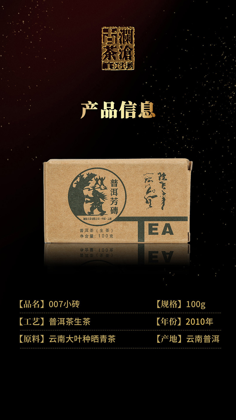 澜沧古茶2010年007小砖普洱茶生茶云南茶叶13年陈老茶