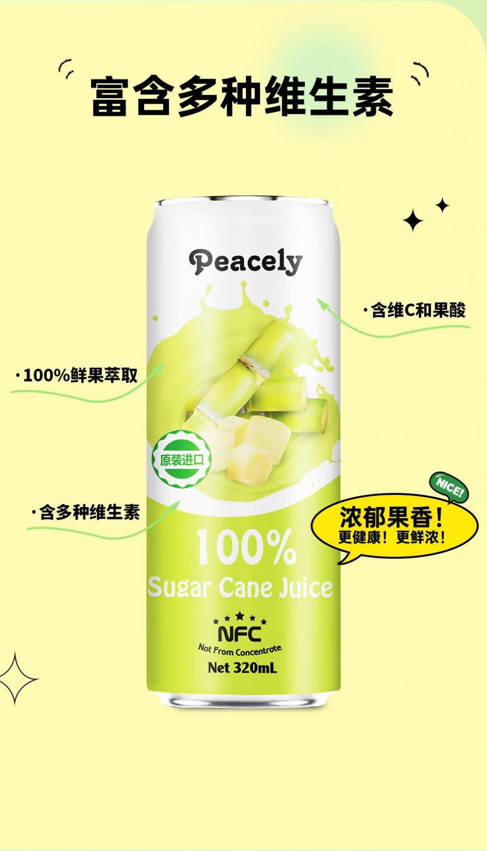 佩思利100%甘蔗汁320ml/023182 清甜解腻来杯甘蔗汁