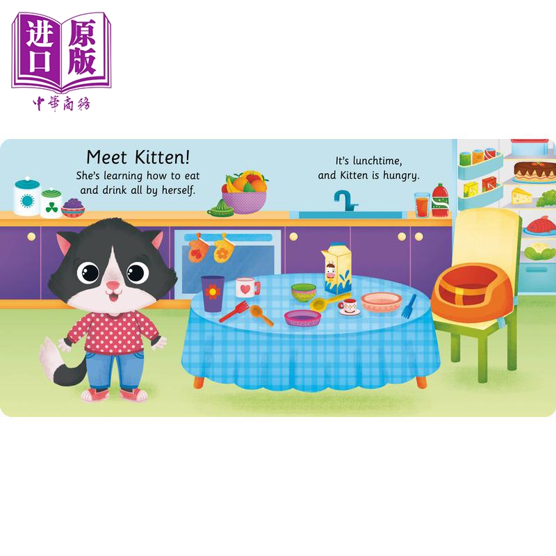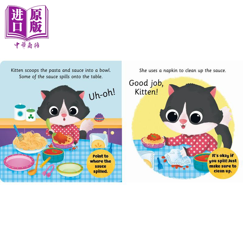 【中商原版】猫猫学习餐饮礼仪 Kitten Learns to Eat 英文原版 儿童纸板书 亲子绘本 早教认知图画书 进口儿童读物2-4岁
