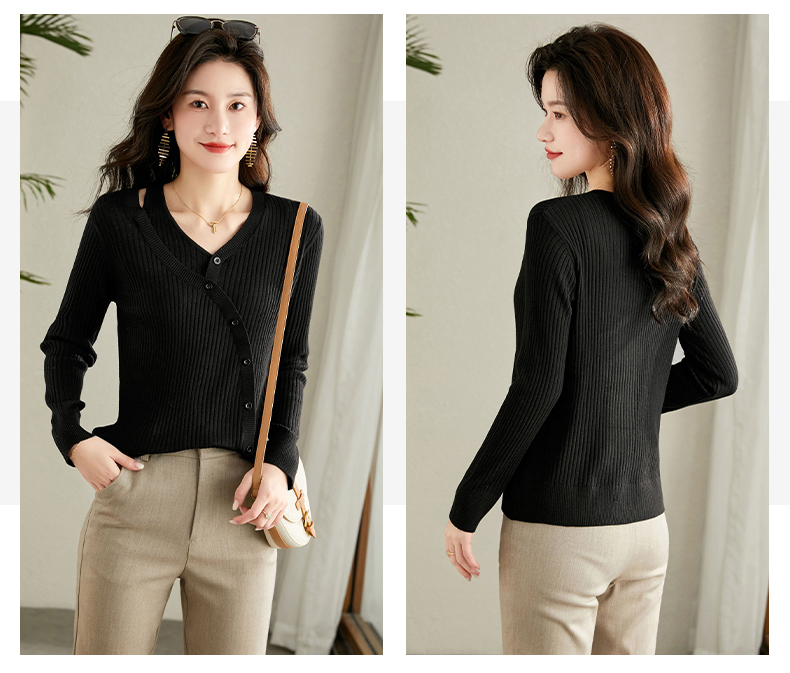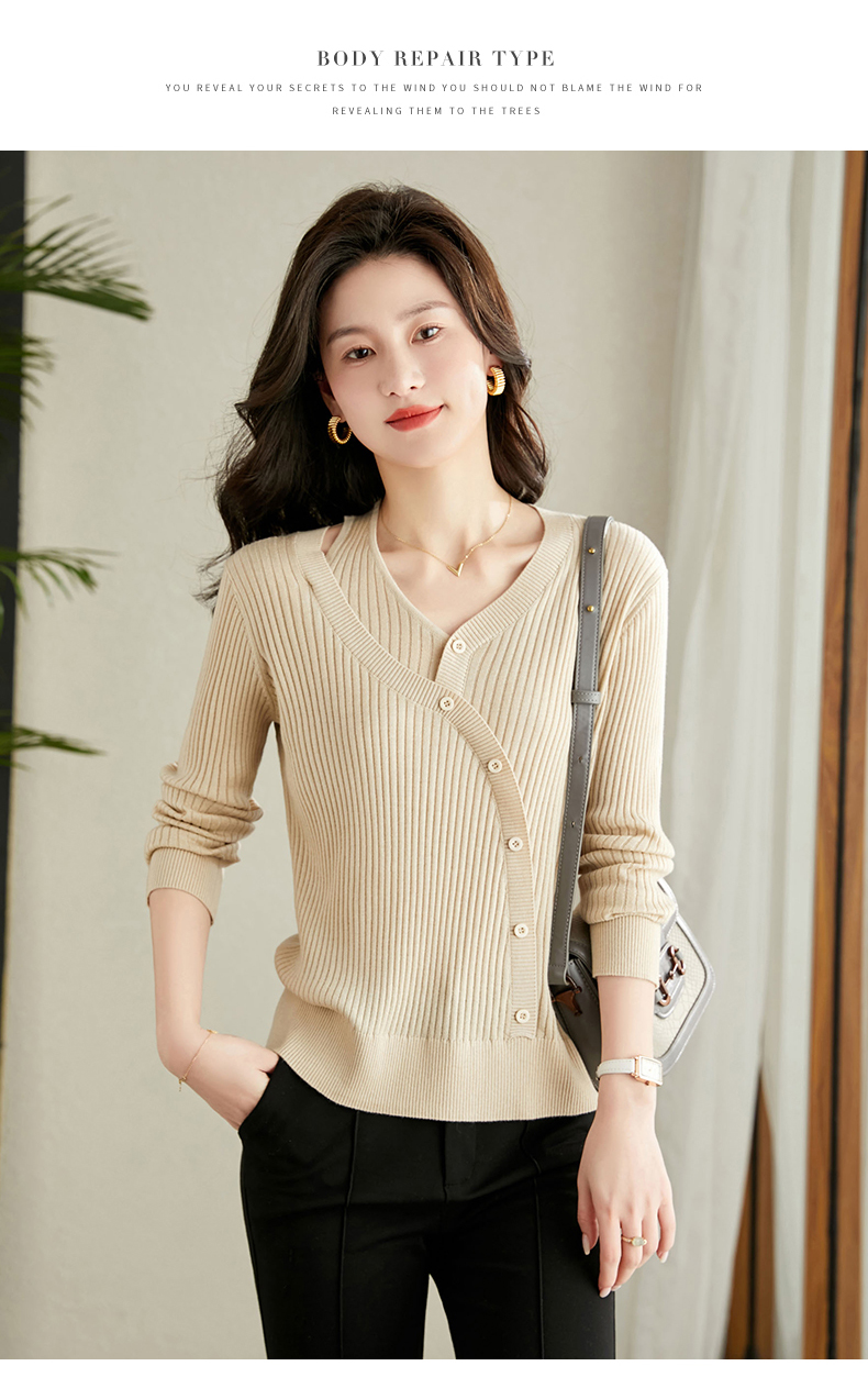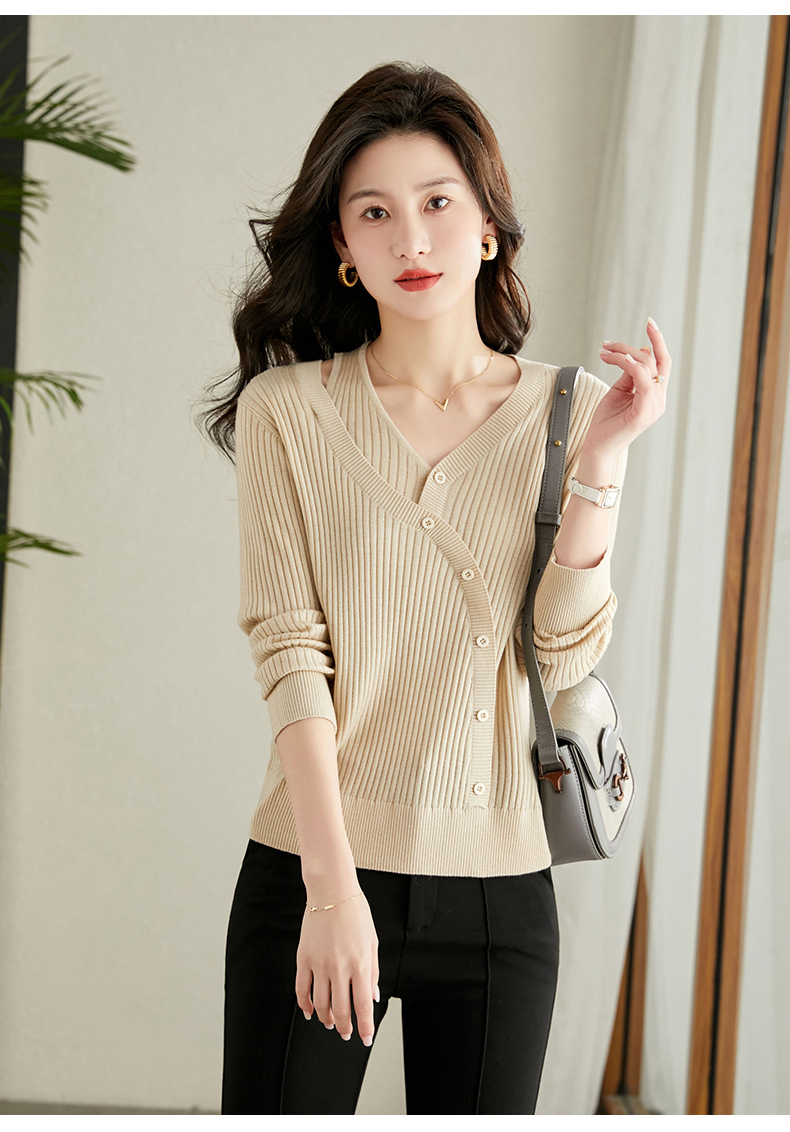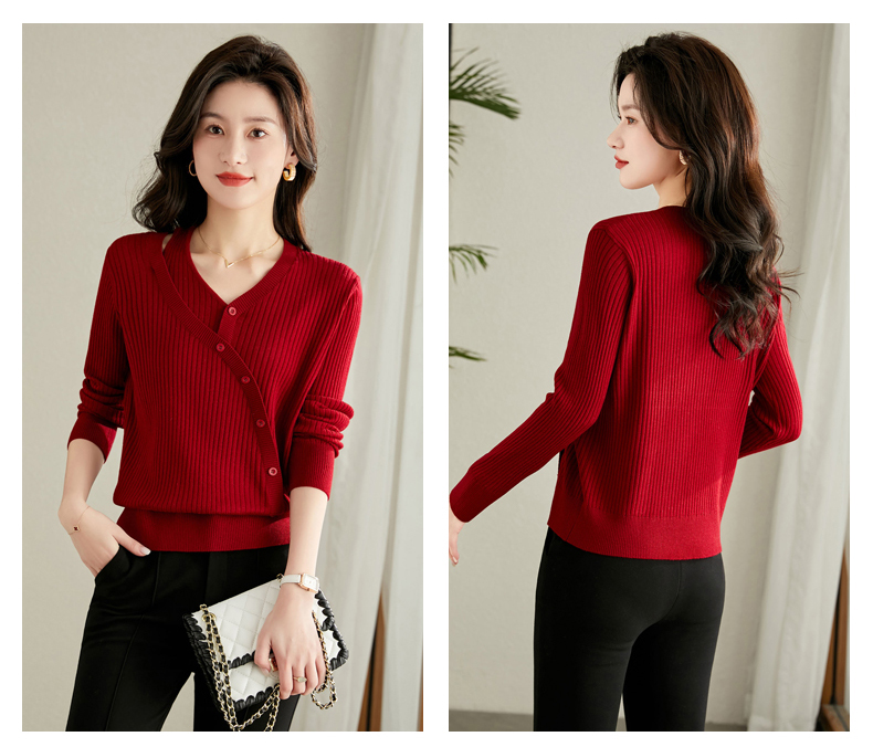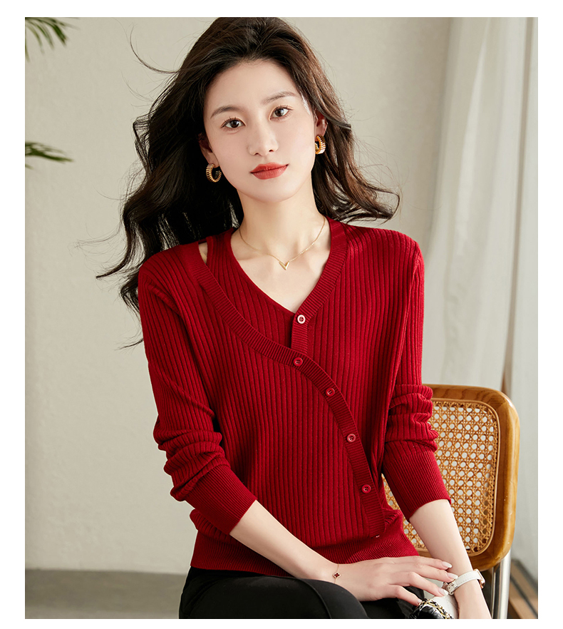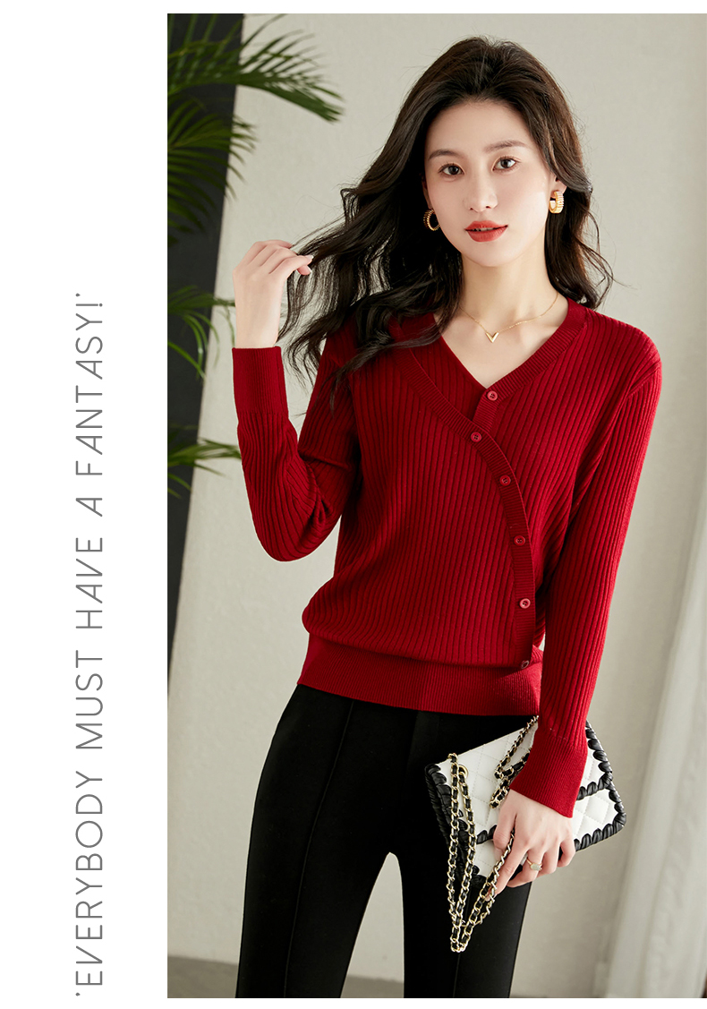 款时尚减龄针织,洋气设计感显瘦V领上衣CC-16-6633