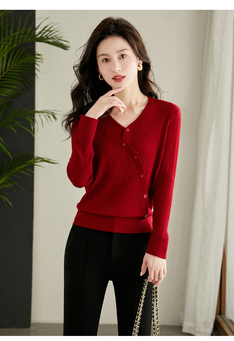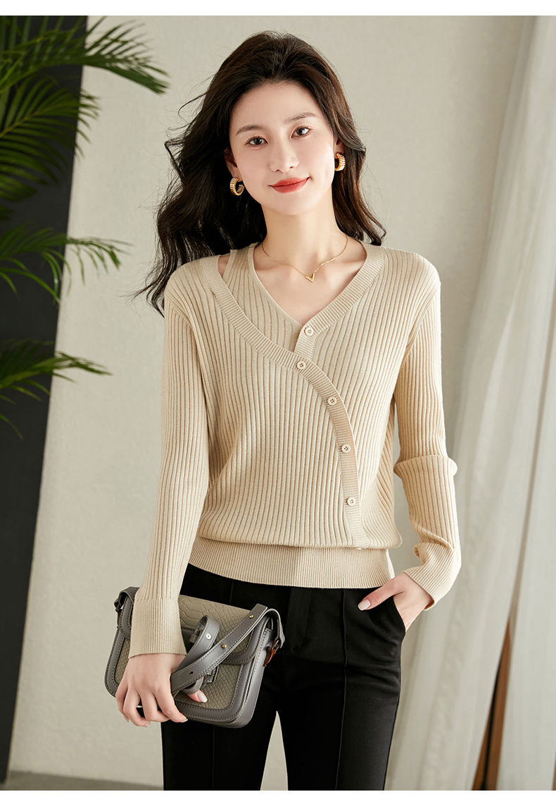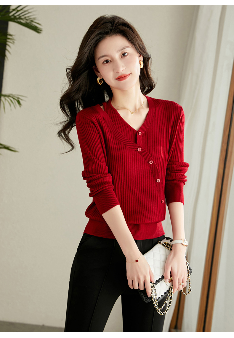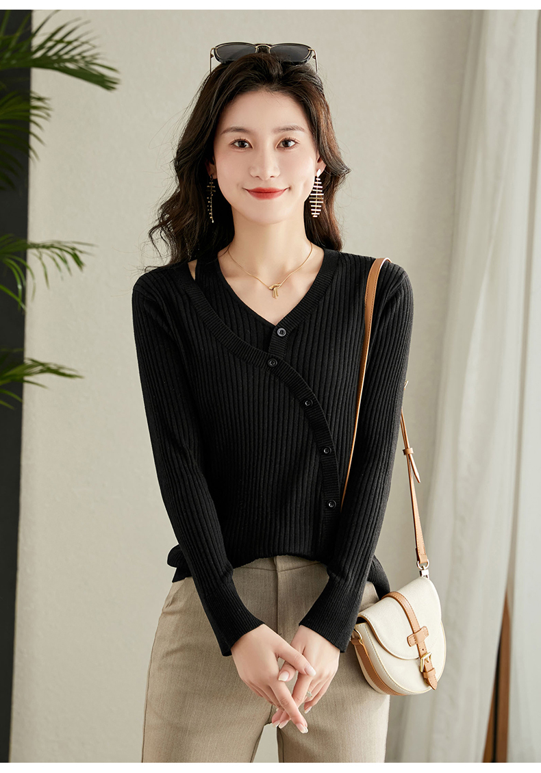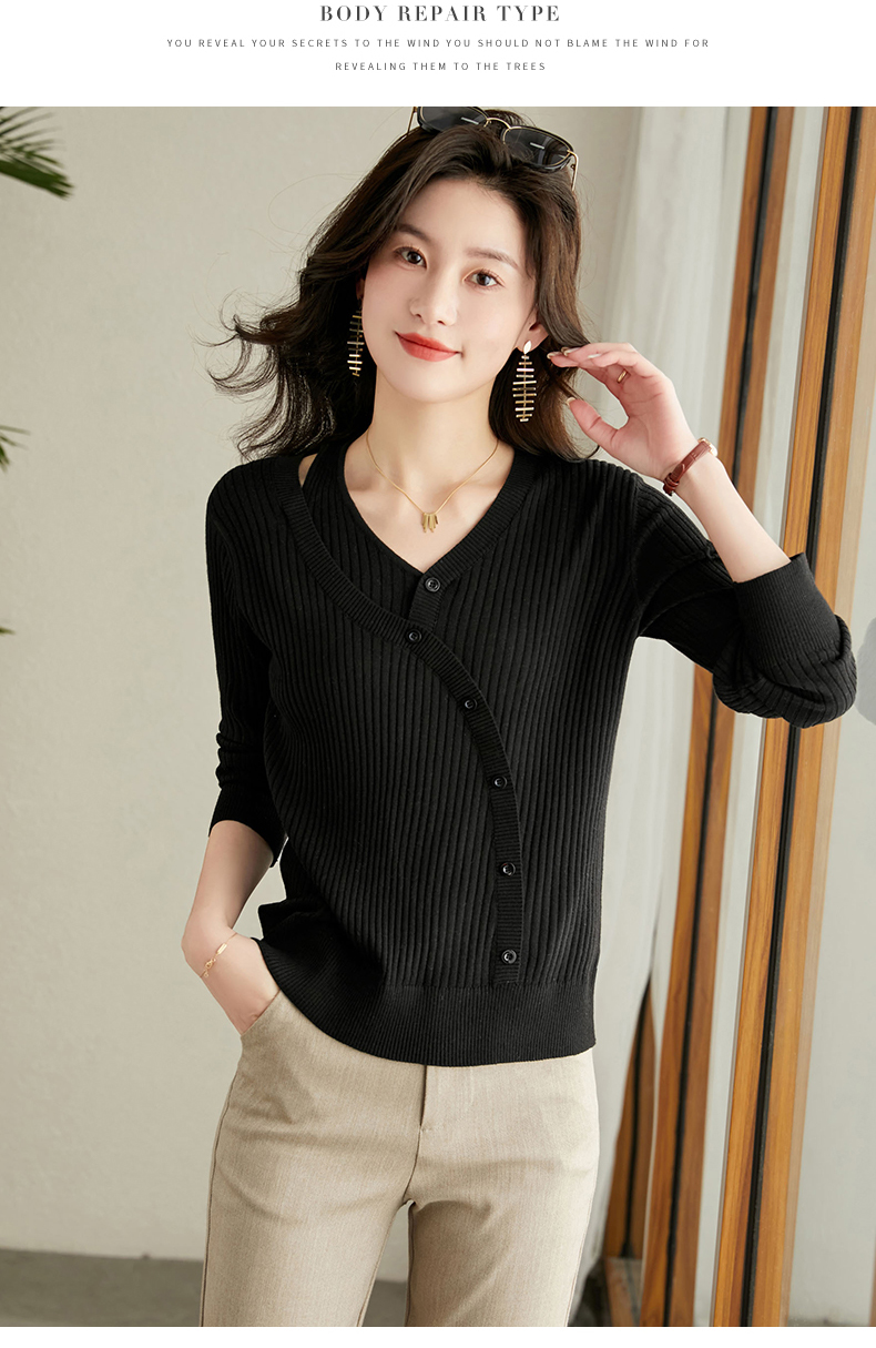款时尚减龄针织,洋气设计感显瘦V领上衣CC-16-6633