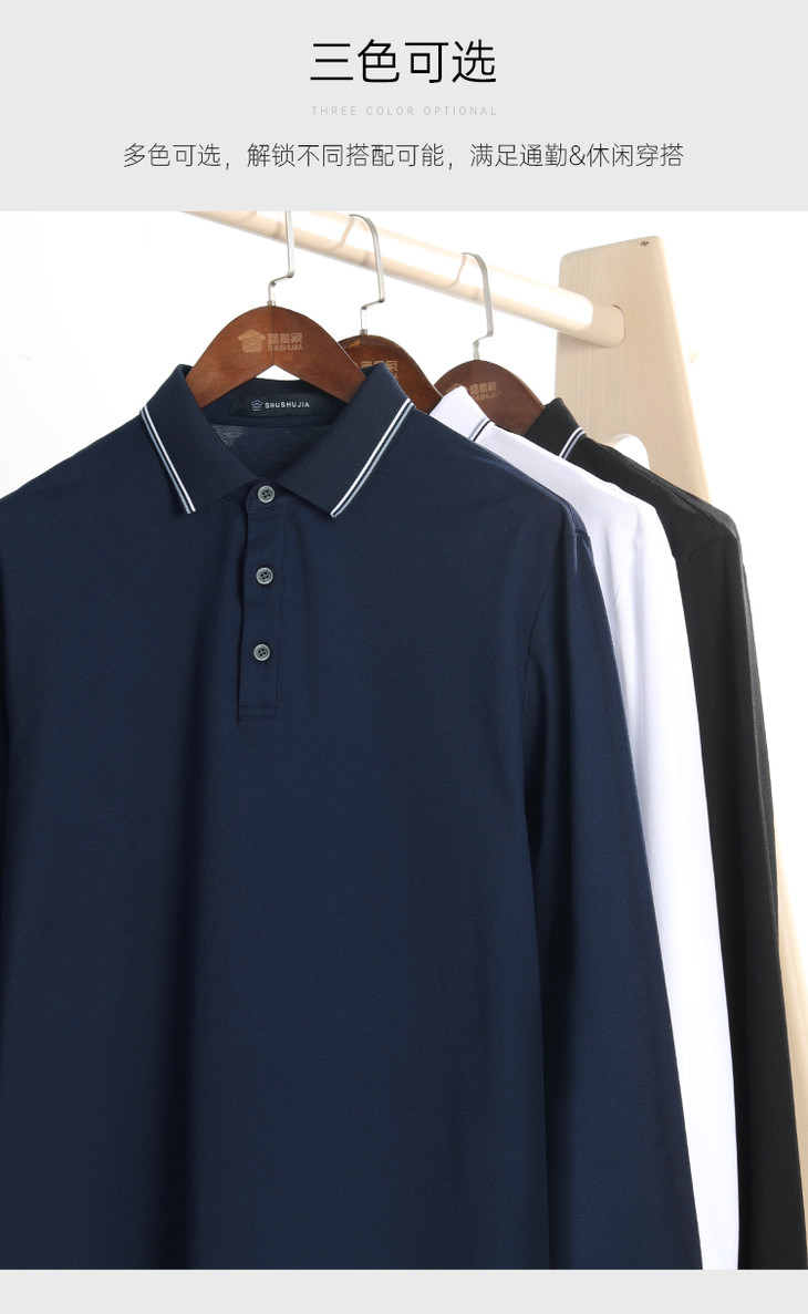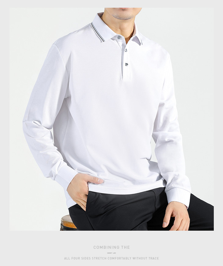 【含蚕丝通勤长袖Polo衫】爽滑无痕Polo杉撞色翻领打底杉
