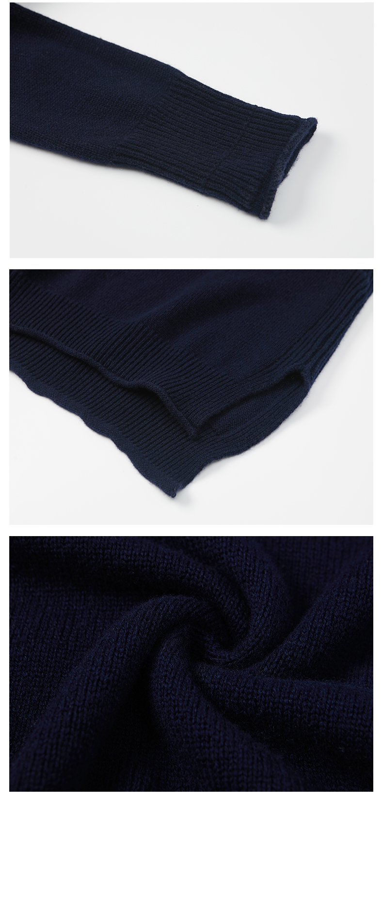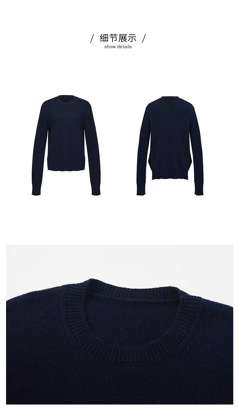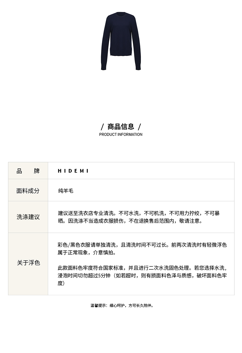 HIDEMI 美利奴羊毛藏蓝色卷边毛衣