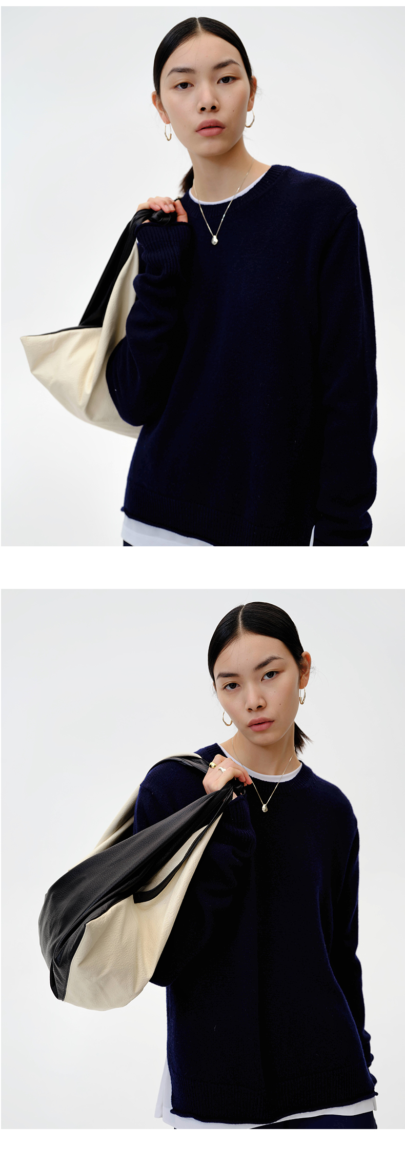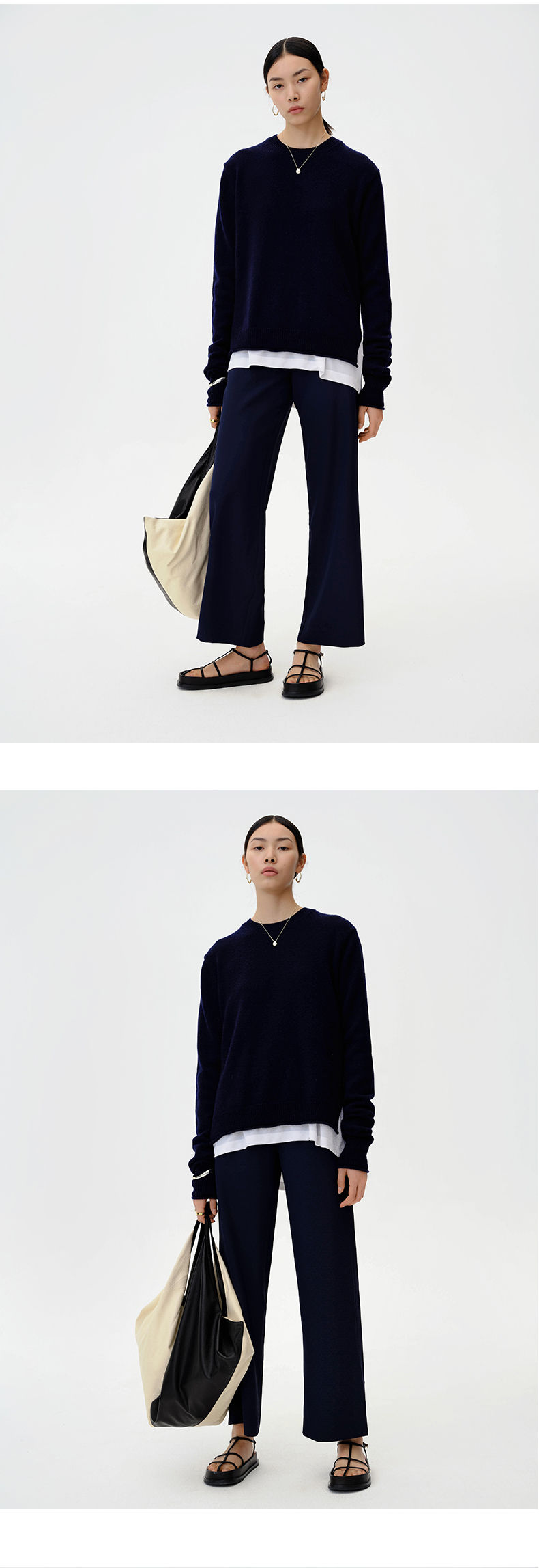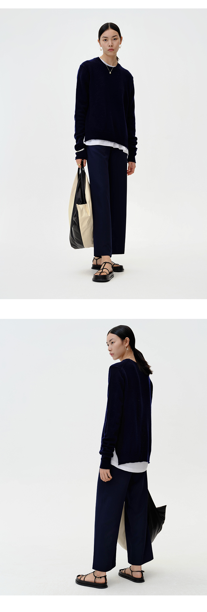 HIDEMI 美利奴羊毛藏蓝色卷边毛衣