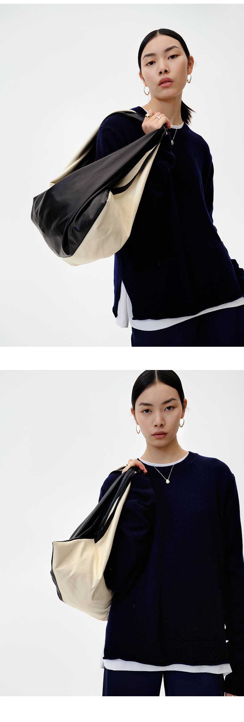 HIDEMI 圈圈羊驼毛粗针宽松毛衣 黑色/自然驼