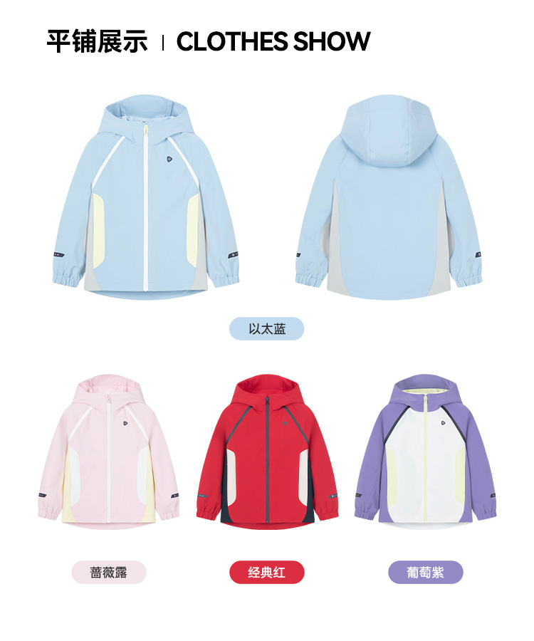 水孩儿童装24新款儿童三防外套男童轻户外时尚运动上衣女童舒适连帽衫