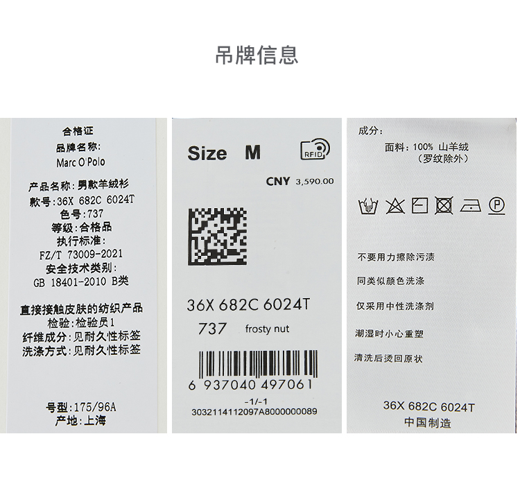 Marc O'Polo/MOP冬新款螺纹圆领康赛妮羊绒针织衫男