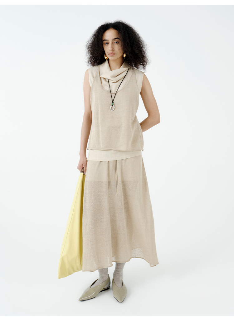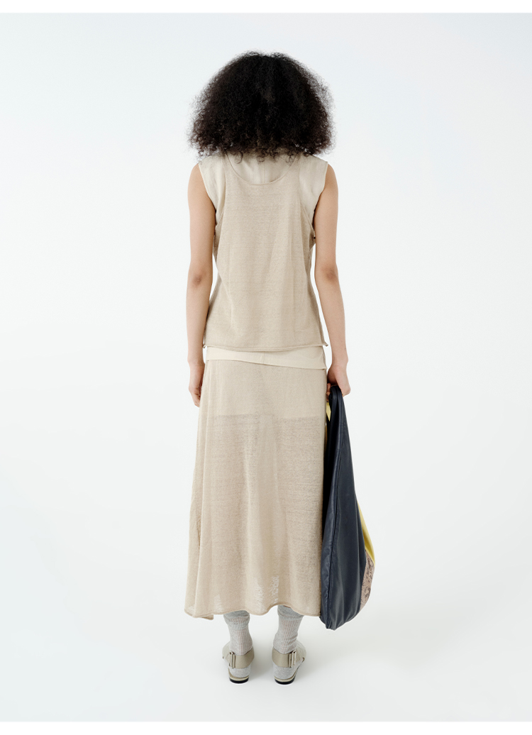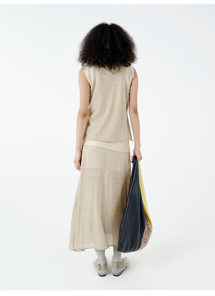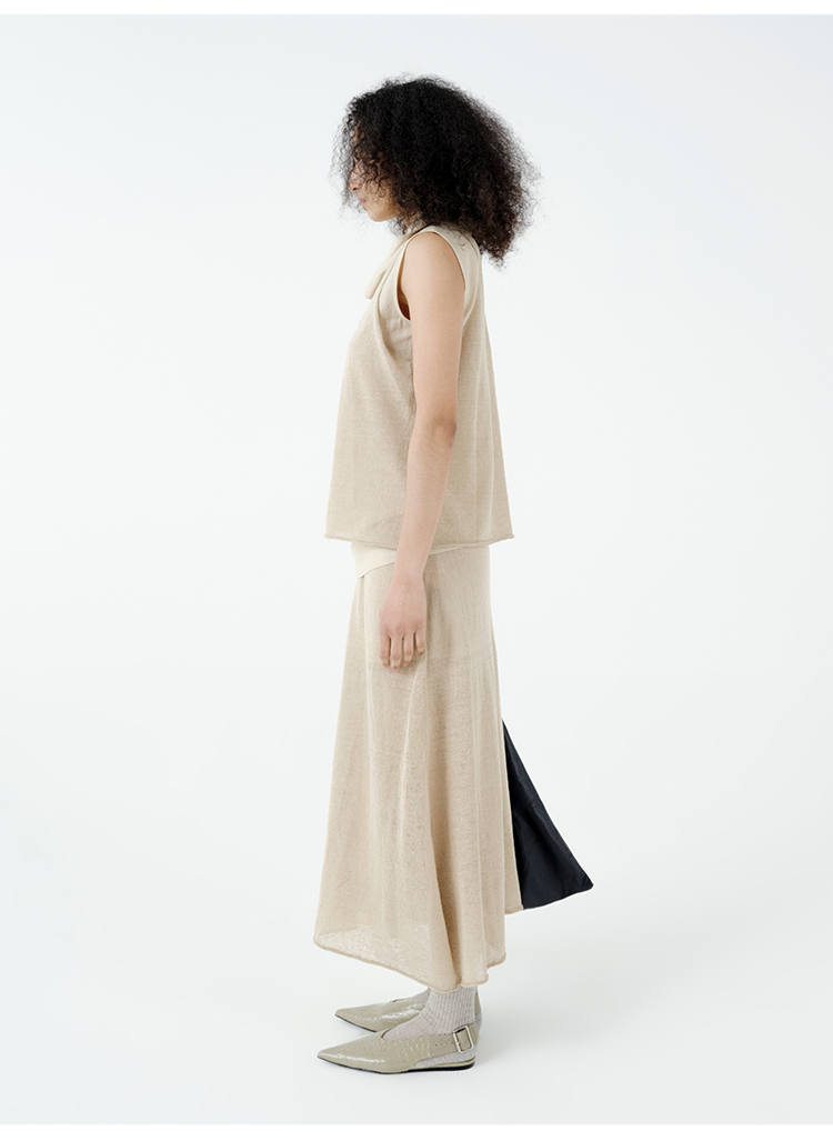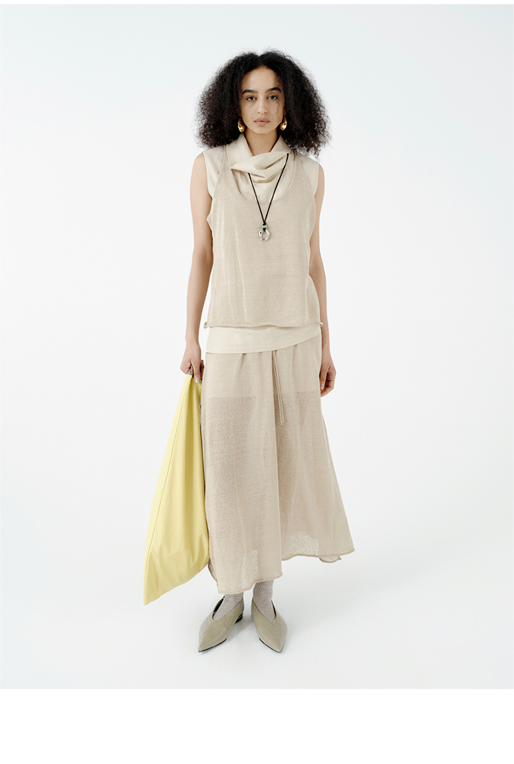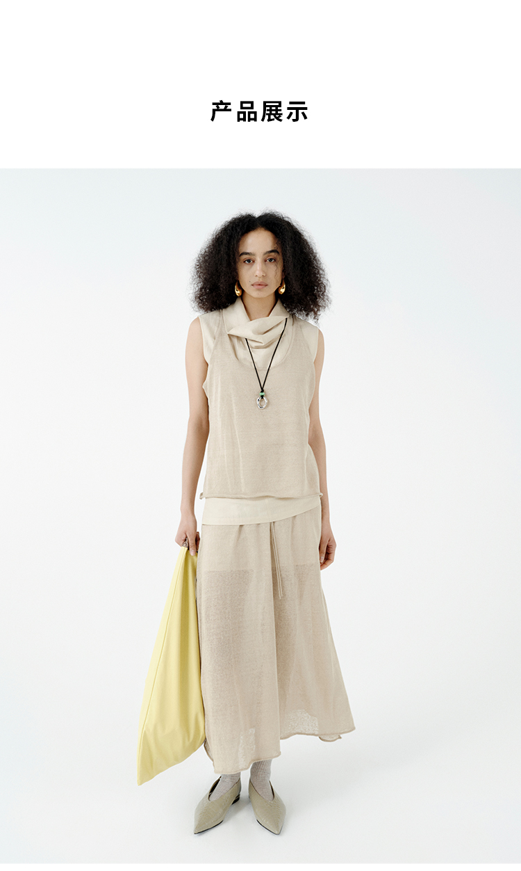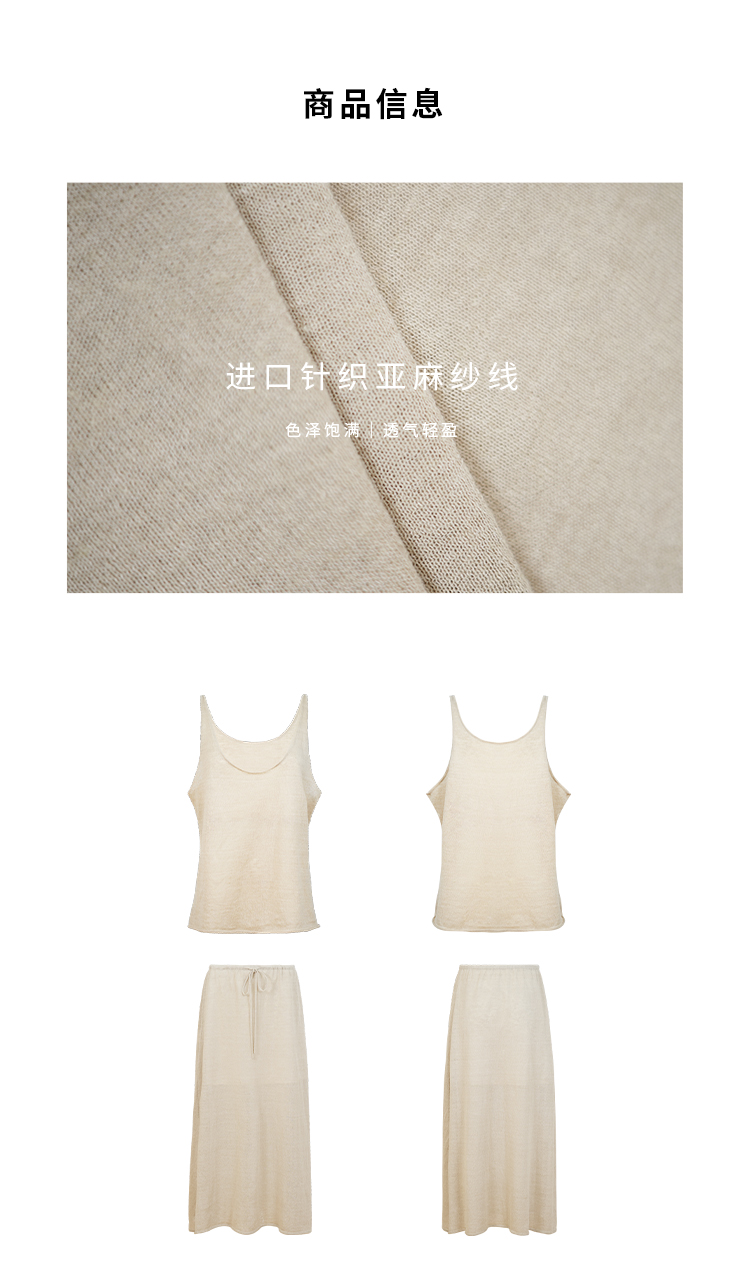 HIDEMI进口针织亚麻纱线自然肌理感背心半裙极简套装 背心/半裙