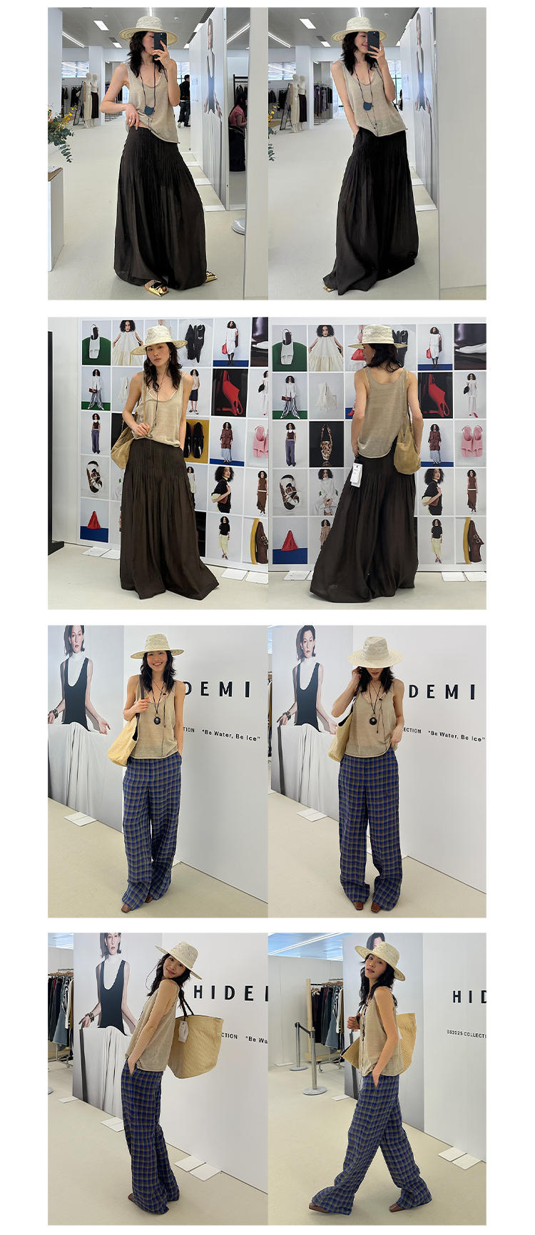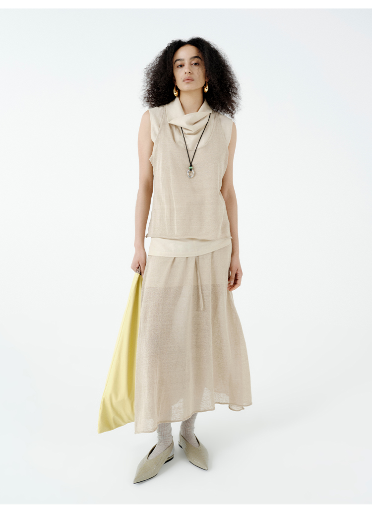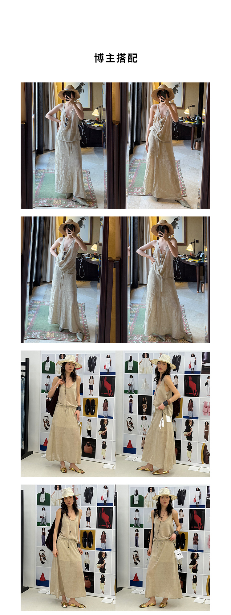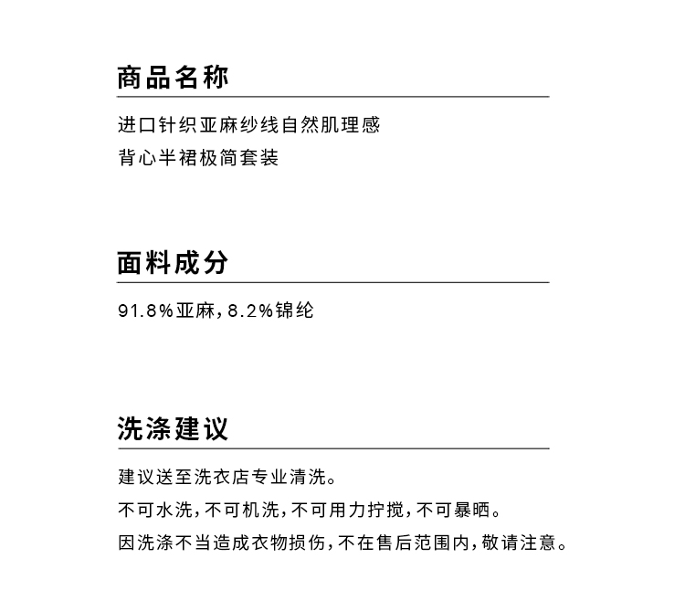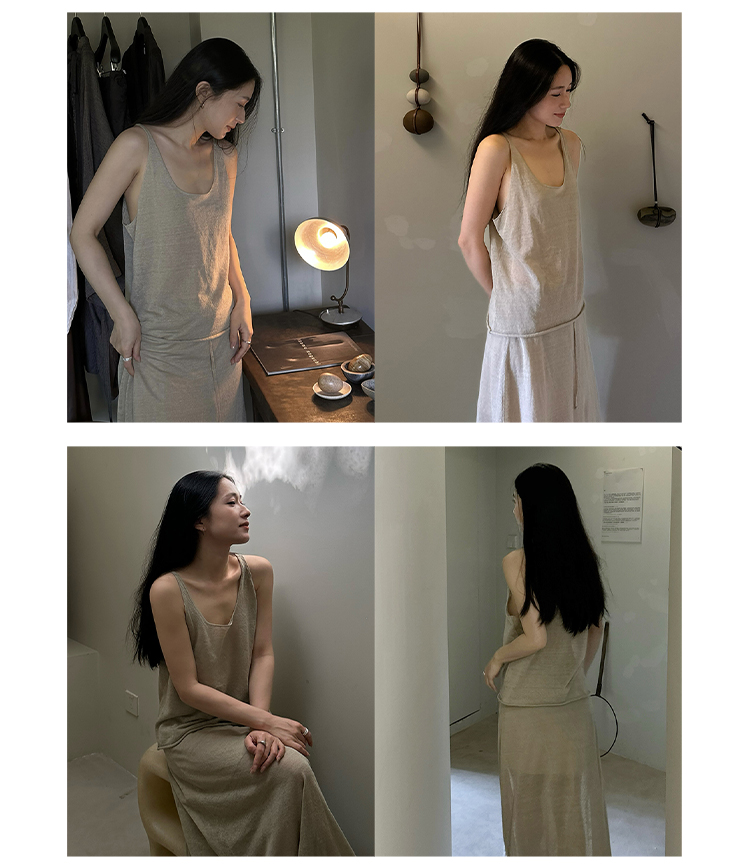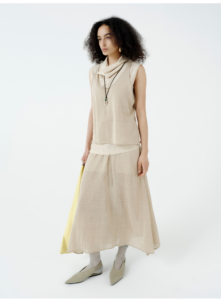 HIDEMI进口针织亚麻纱线自然肌理感背心半裙极简套装 背心/半裙