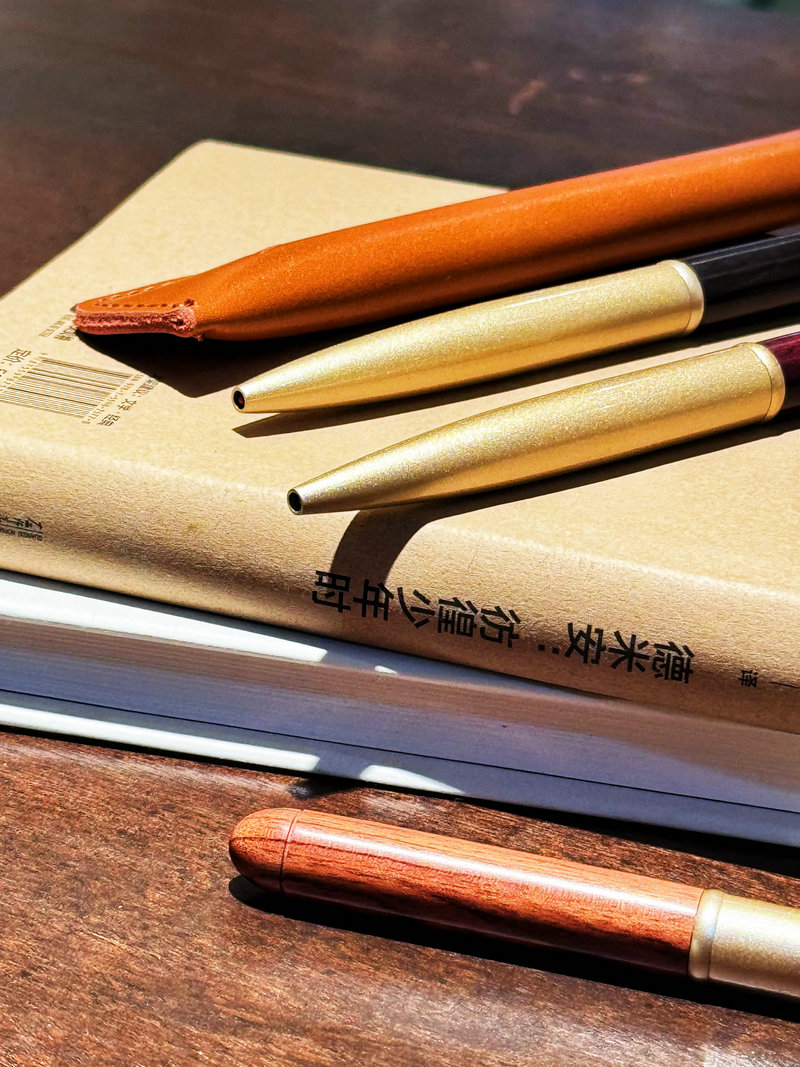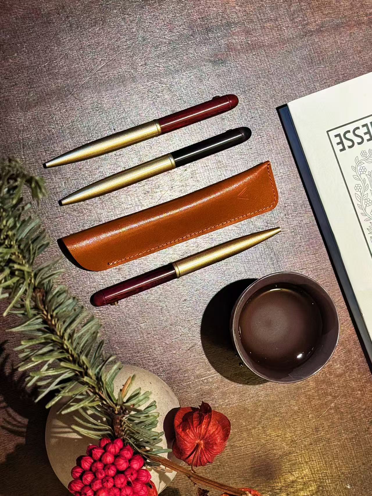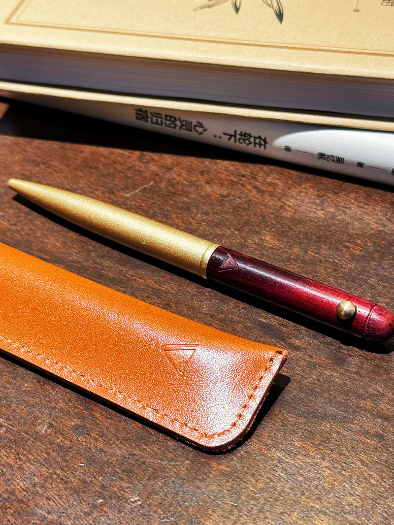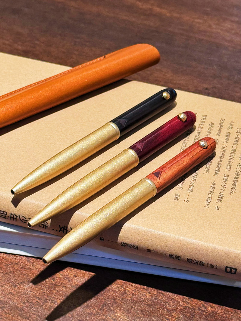 新品【升级版真皮套装】黄铜檀木签字笔