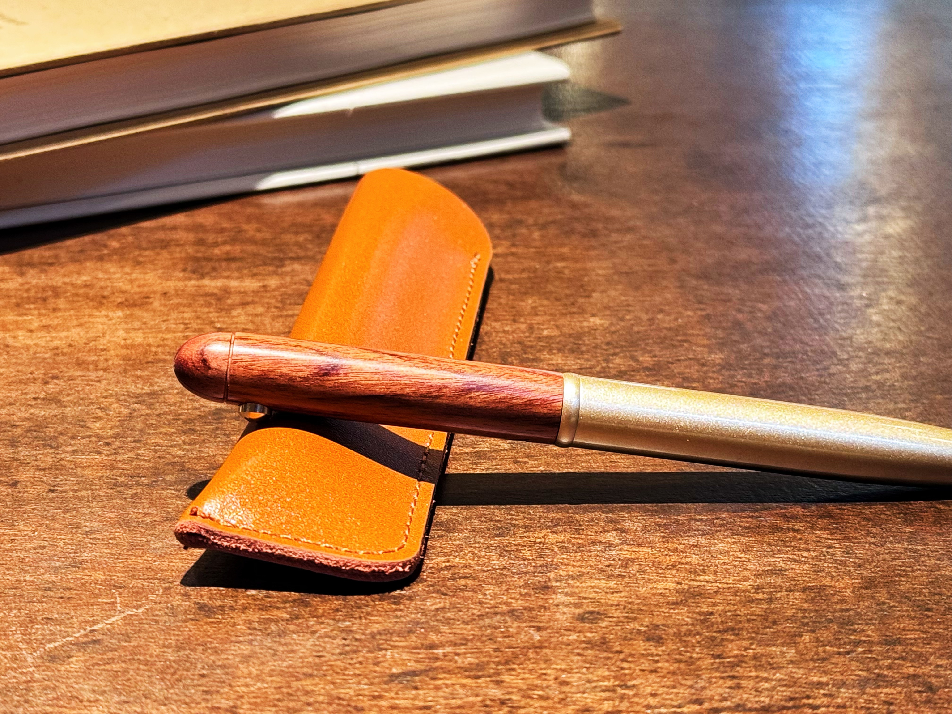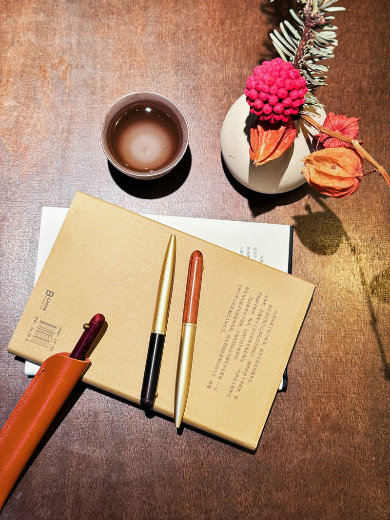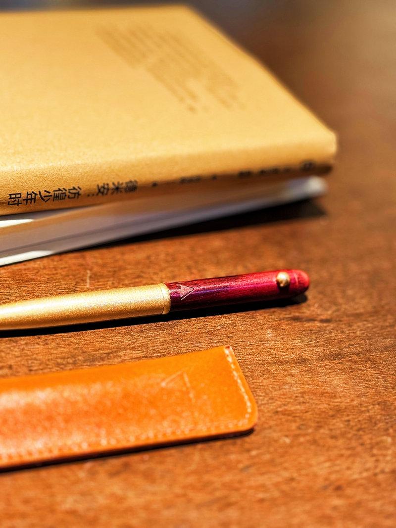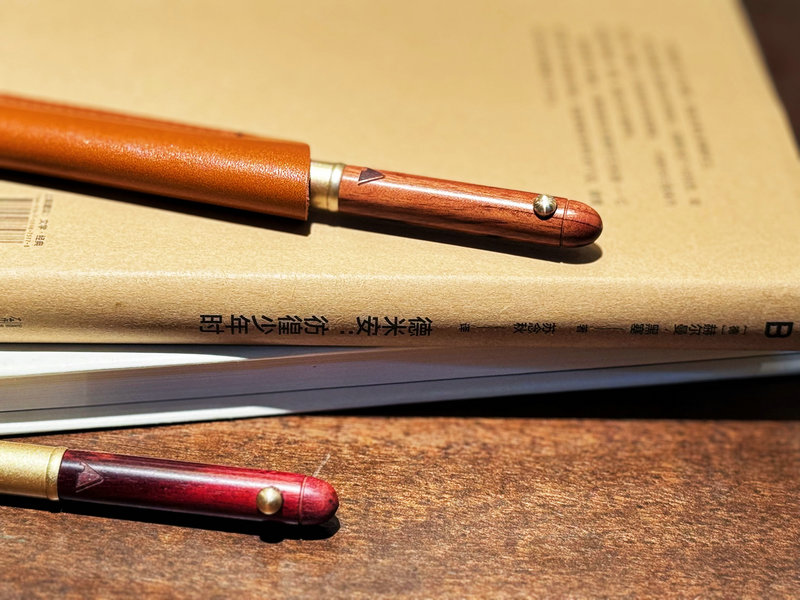 新品【升级版真皮套装】黄铜檀木签字笔