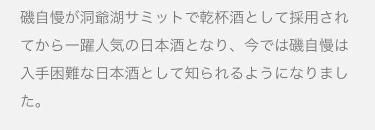 说到顶级清酒,想必大家都知道十四代、而今(清酒届的绝代双雄!而今VS十四代!谁才是真正的王者?),但其实日本的顶级清酒还有一个扫地僧一样的存在,那就是传承数百年低调又好喝到深不可测的顶级酒造「磯自慢」!在日本的膜拜程度真的到了家喻户晓,人人想喝却根本买不到的程度。