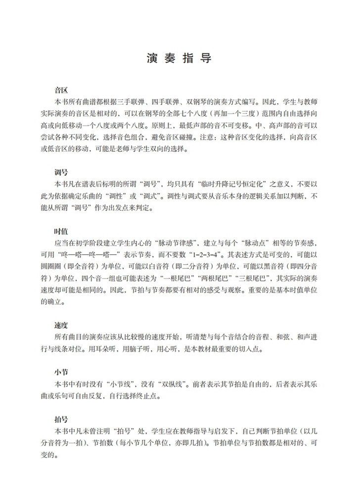 本套教程是作曲家、钢琴家、音乐教育家赵晓生教授结合自身多年的钢琴教学经验精心撰写的一套适用于少年儿童和成人的钢琴入门教程,该教程贯穿了“开启天聪,深播乐种”的基本思路,不仅教授学生钢琴演奏的基本技能,还对音程、节奏、和声、调式、调性等乐理概念进行了启发式教学,以培养学生乐感为出发点,打造了多位一体的钢琴教学模式。相信通过对本套教程的学习,钢琴学习者们可以通过开发听觉,了解音乐特性,感受音乐,从而学会音乐表达。同时,书中师生合奏如四手联弹及双钢琴演奏的教学模式可以营造轻松有趣的音乐教学氛围,极大程度地提高同学们的演奏积极性,体会钢琴学习的无限乐趣。