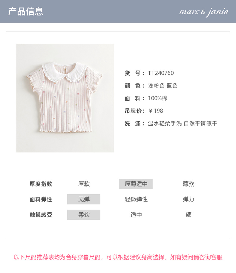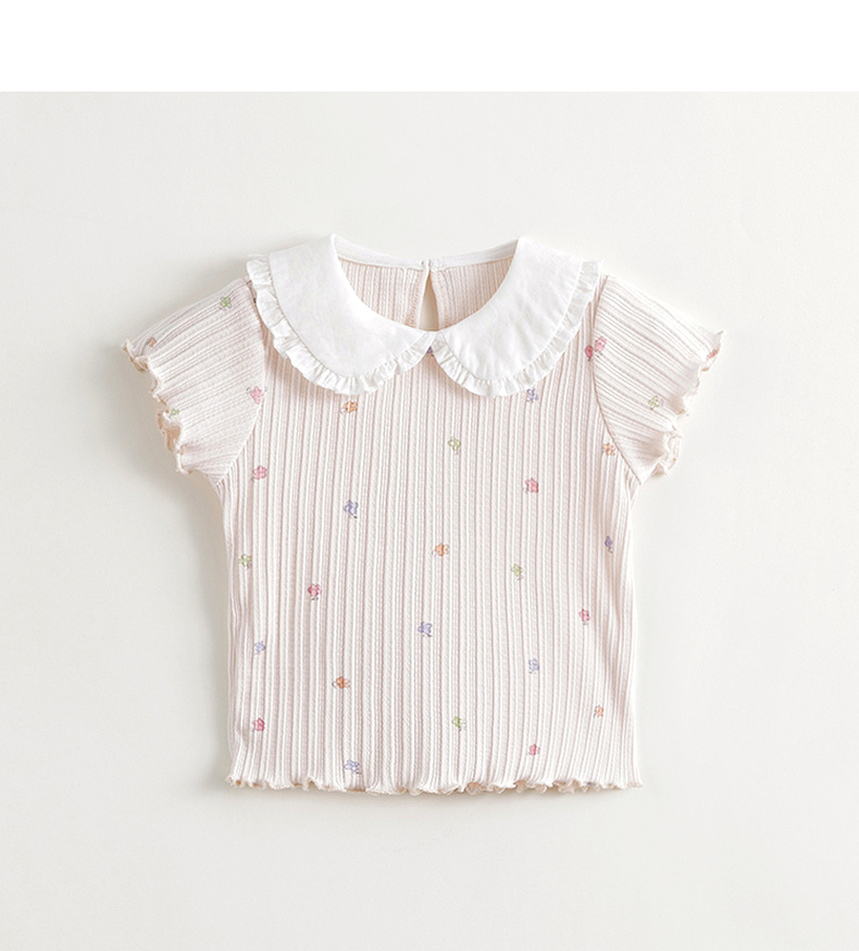 马克珍妮女童满底花卉娃娃领短袖T恤儿童纯棉上衣夏装新款240760