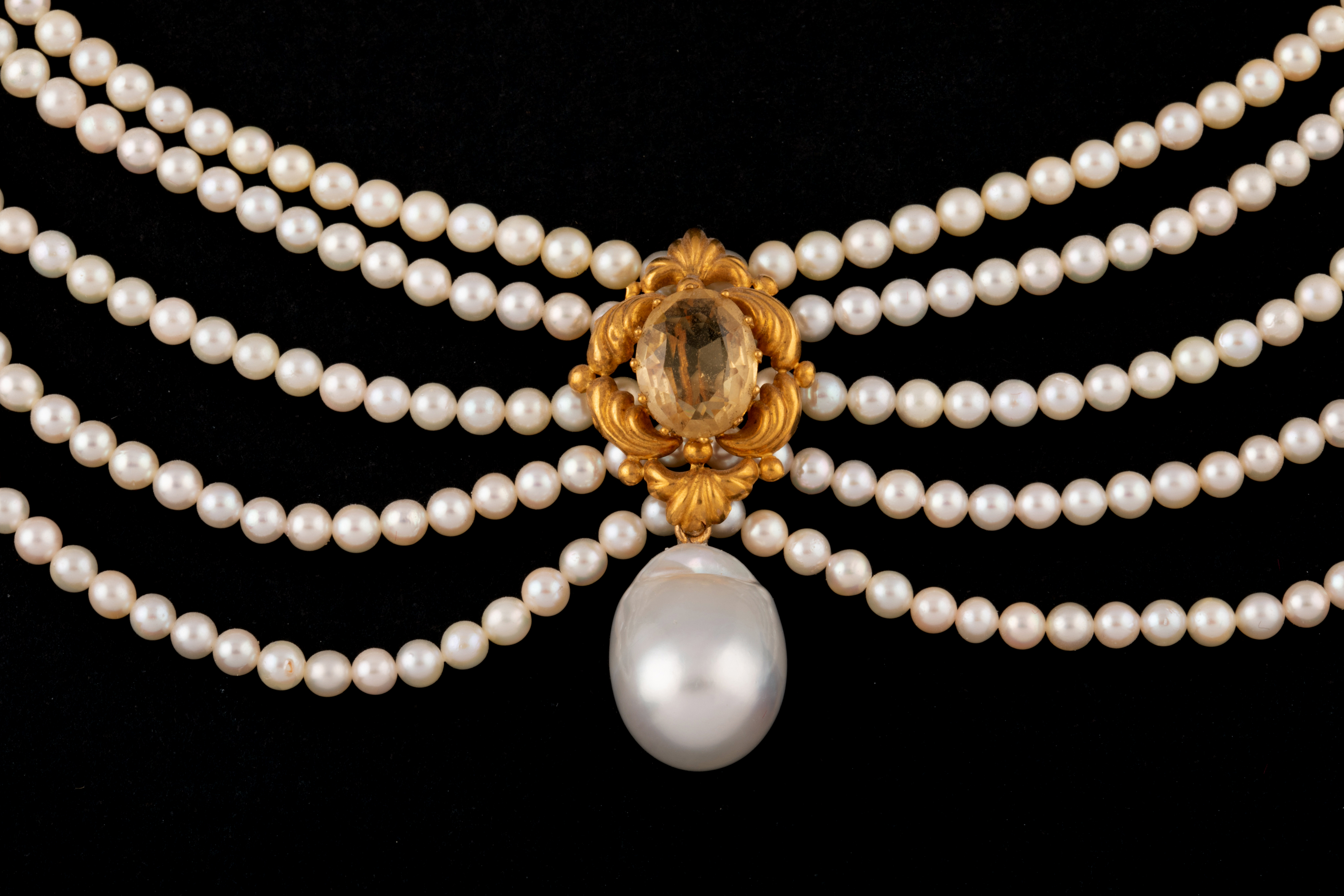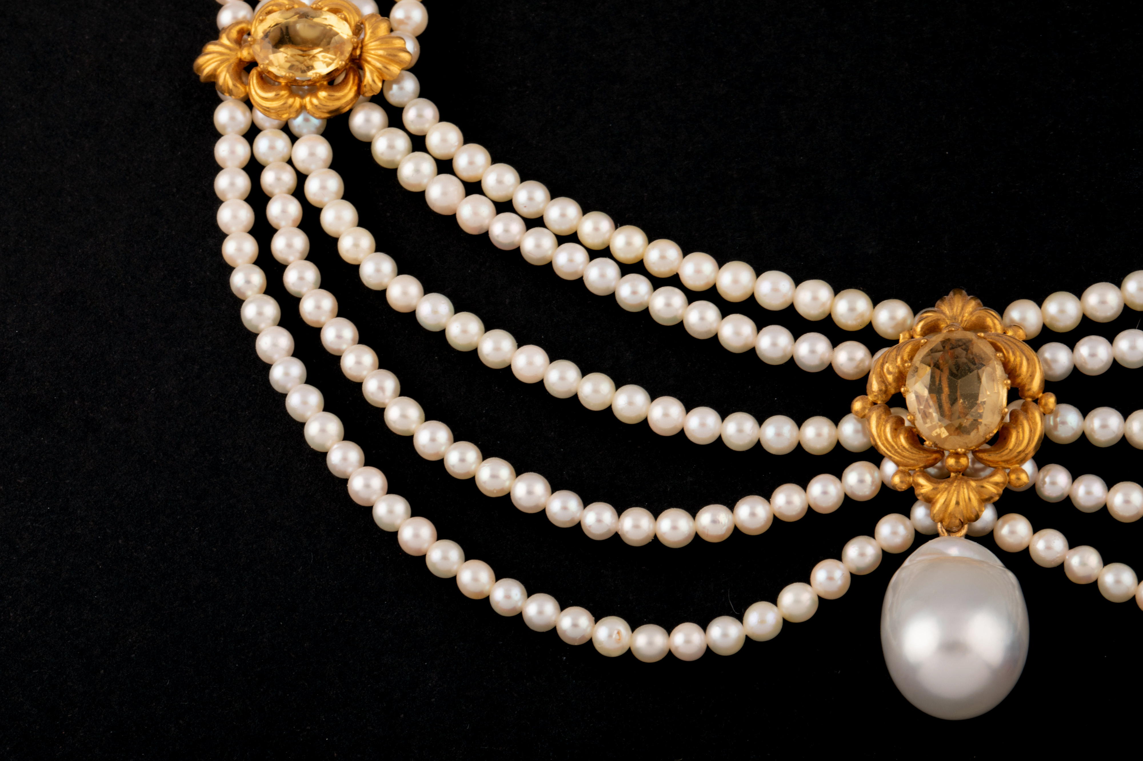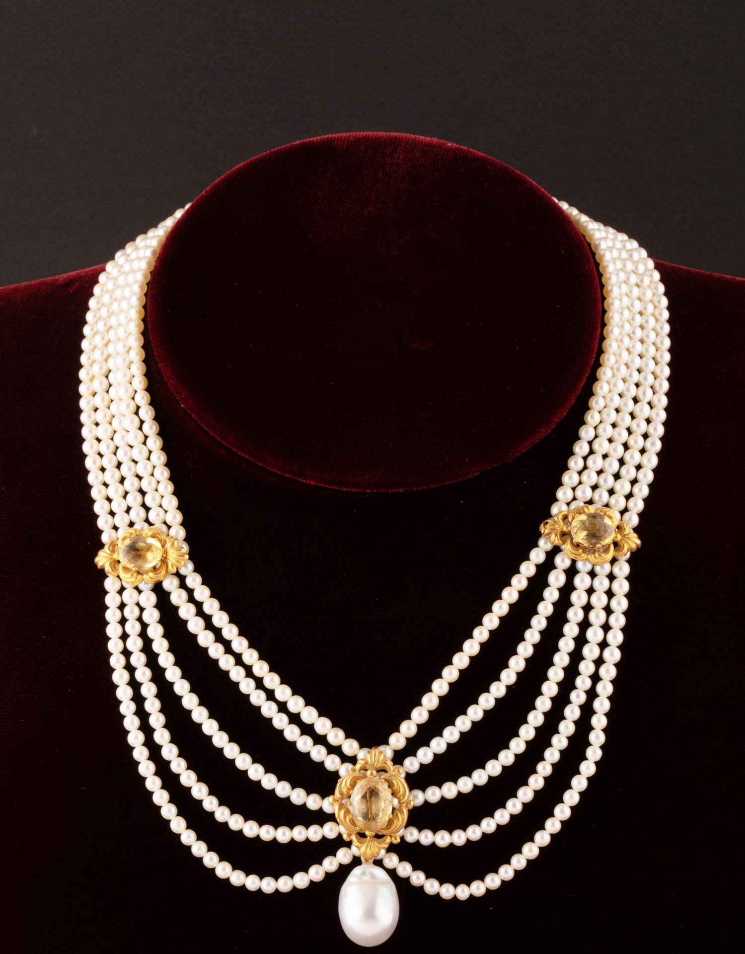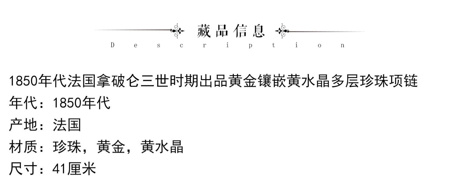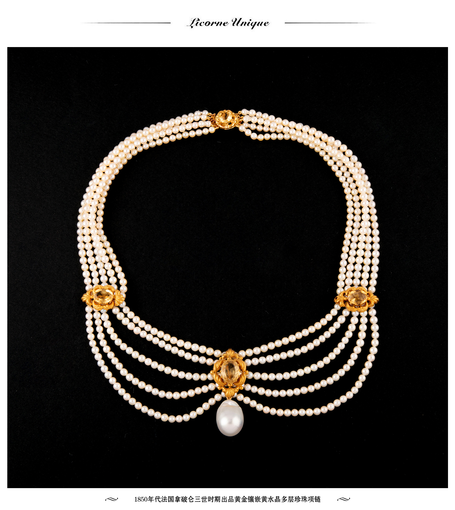 独角鹿西洋古董珠宝首饰拿破仑三世时期黄金镶嵌黄水晶珍珠项链