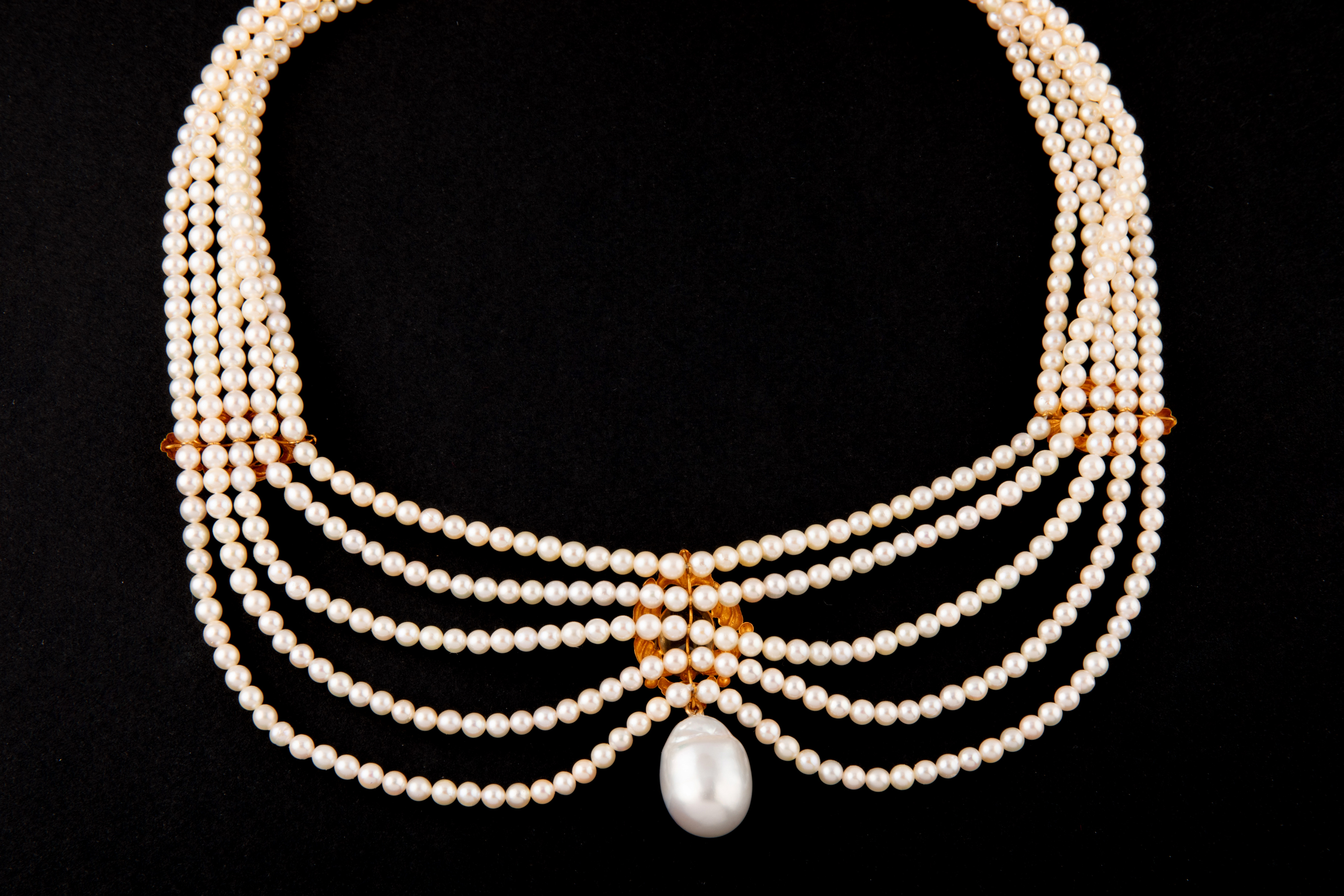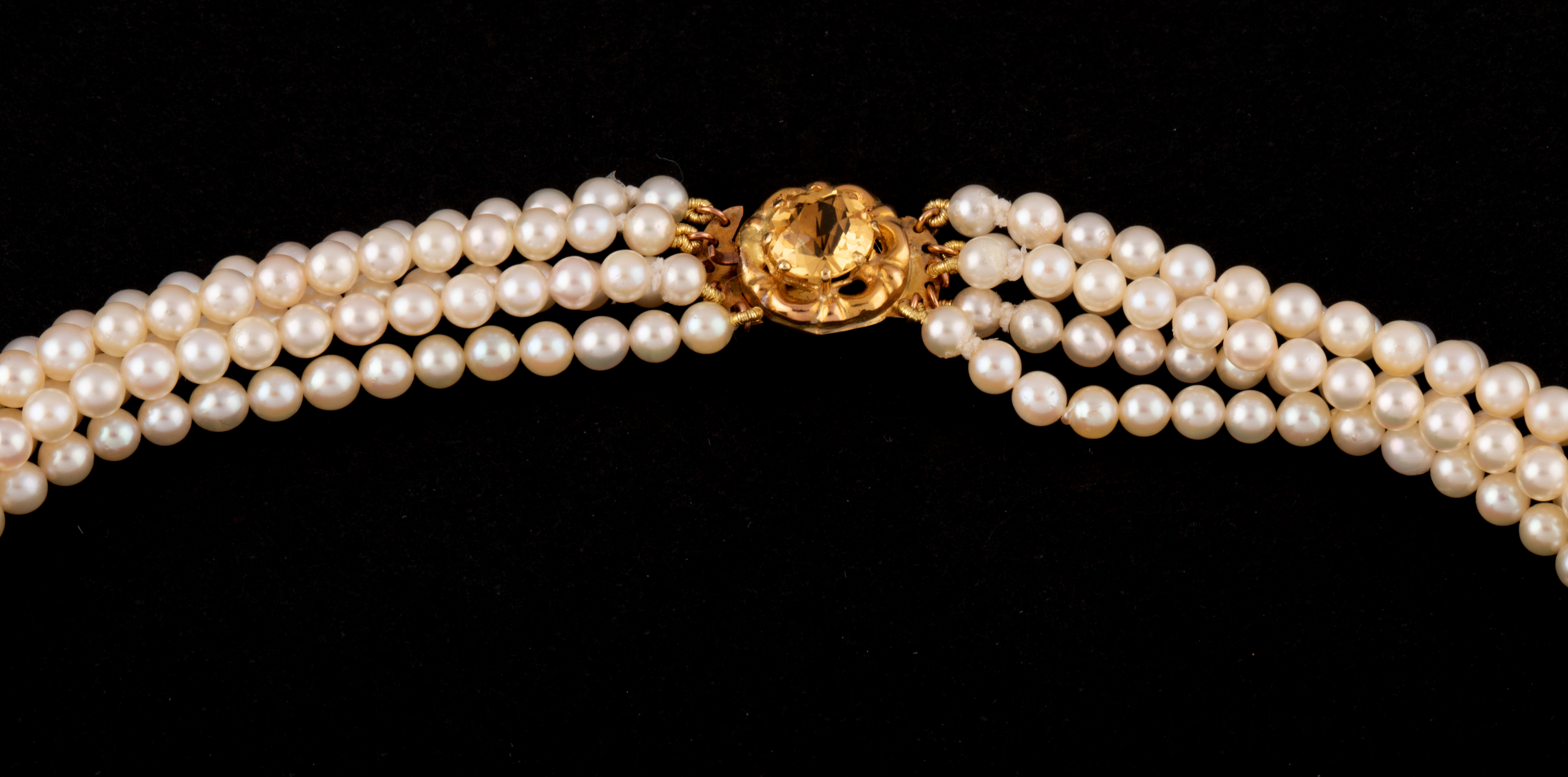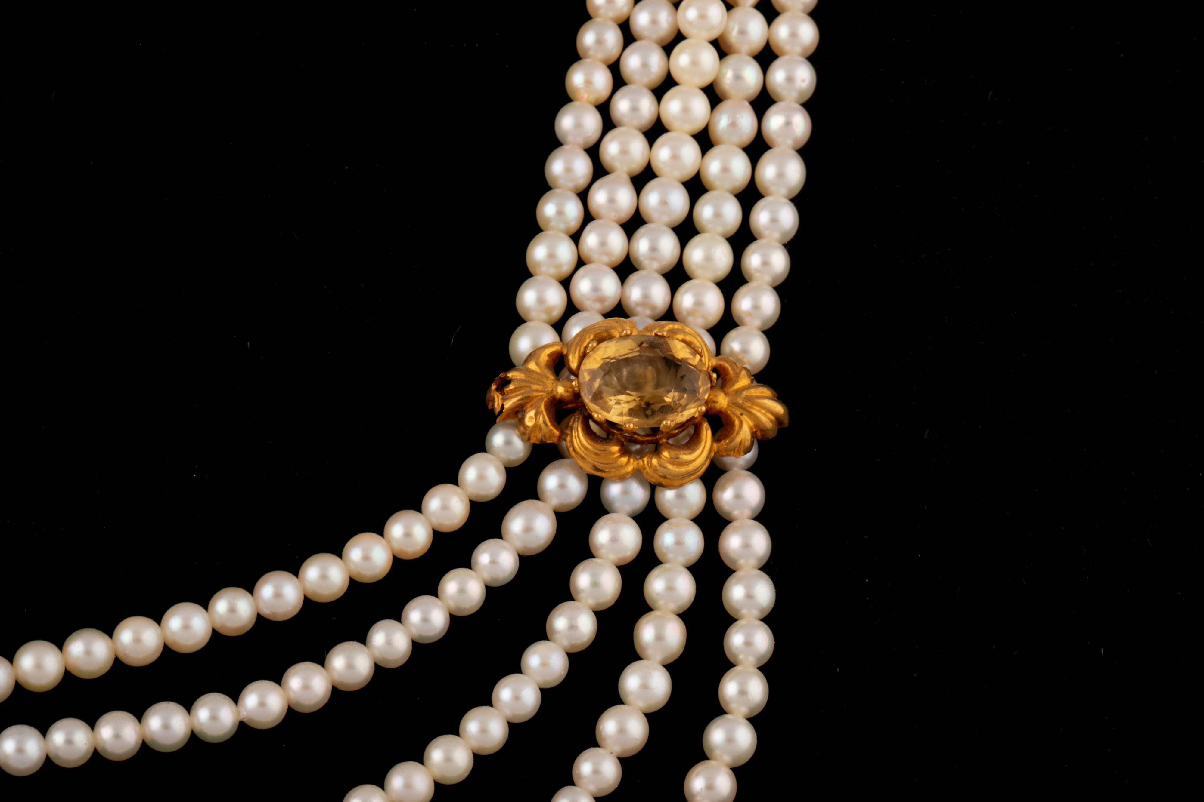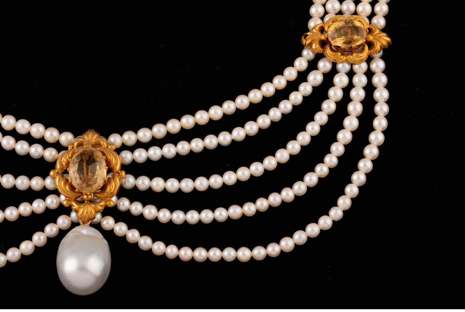 独角鹿西洋古董珠宝首饰拿破仑三世时期黄金镶嵌黄水晶珍珠项链