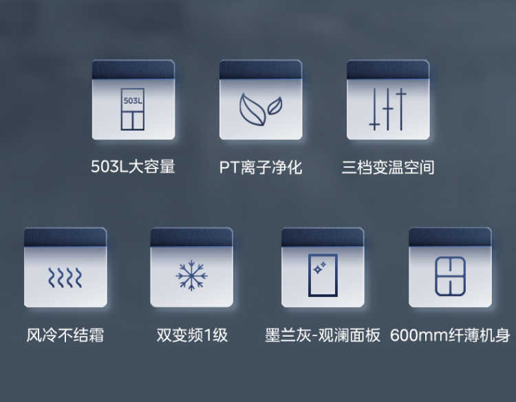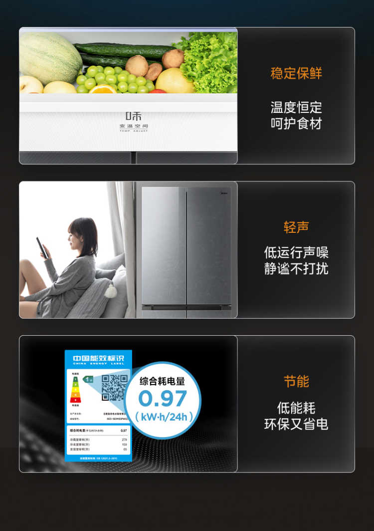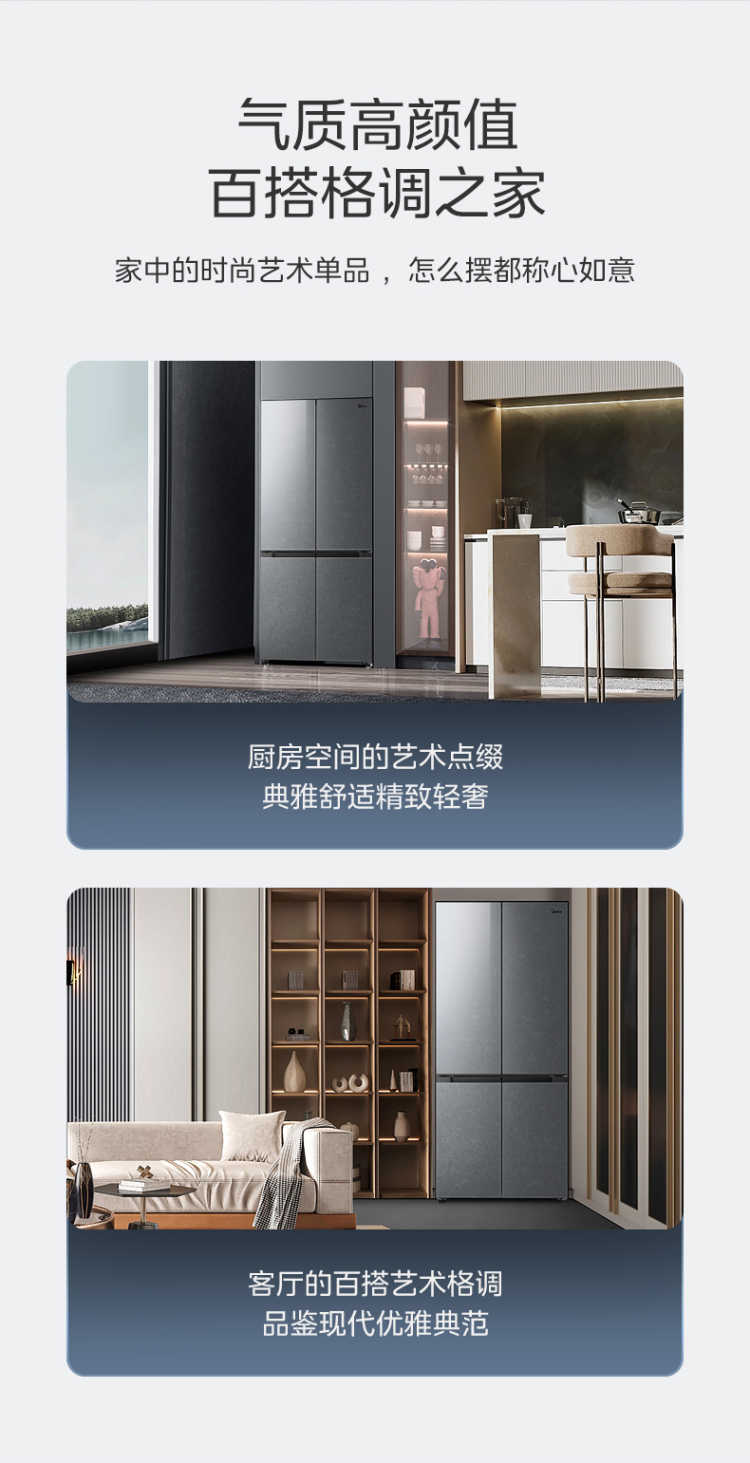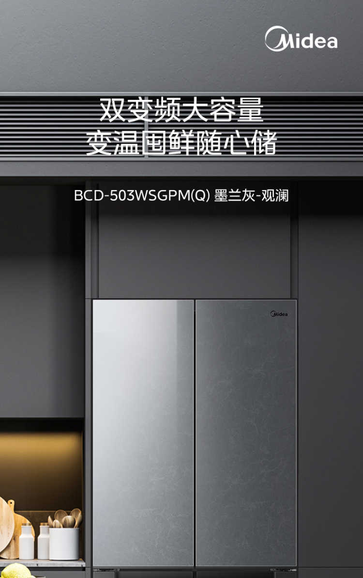 美的冰箱(292900) BCD-503WSGPM(Q) 墨兰灰-观澜 一级能效,节能环保,静音运行,超大容量