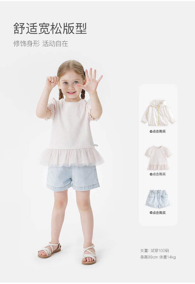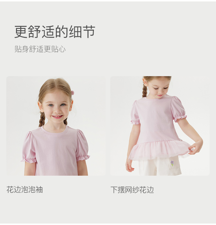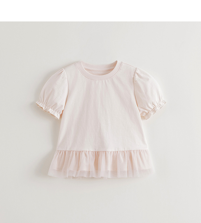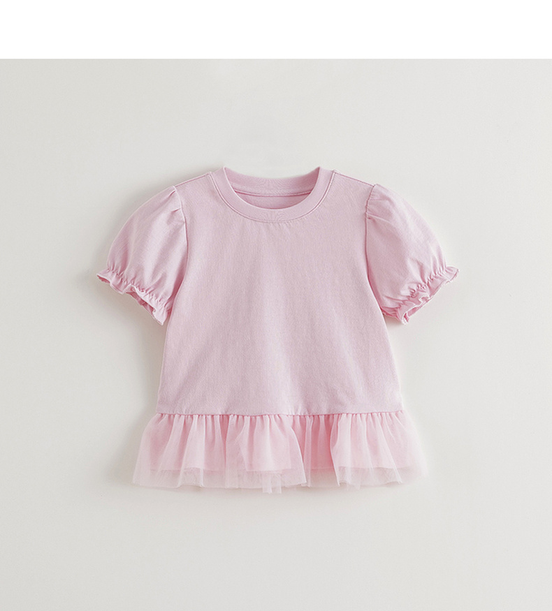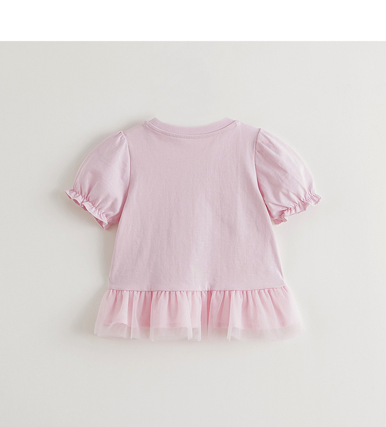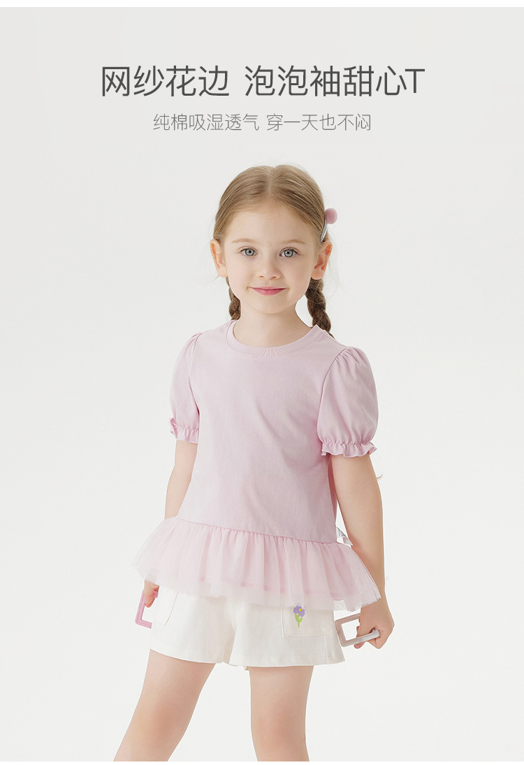 马克珍妮女童网纱花边短袖T恤 宝宝泡泡袖上衣2025夏装新款550785
