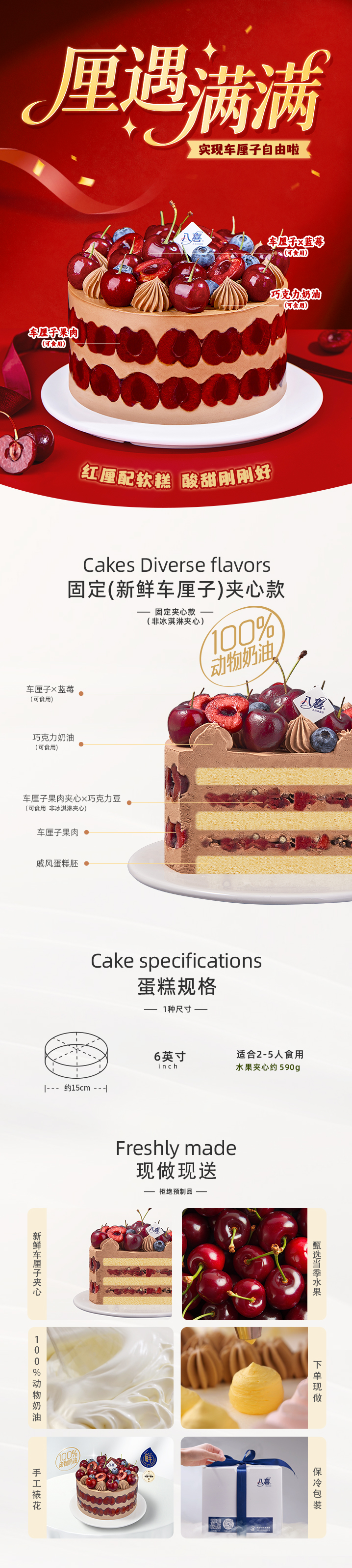 ※【厘遇满满】6英寸 新鲜车厘子生日蛋糕 不含冰淇淋