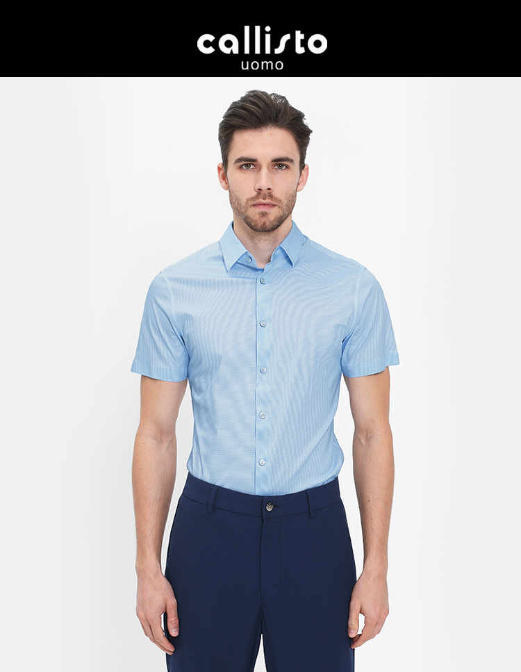 callisto蓝色维希格弹棉混纺意式领衬衫 SRSTS045C