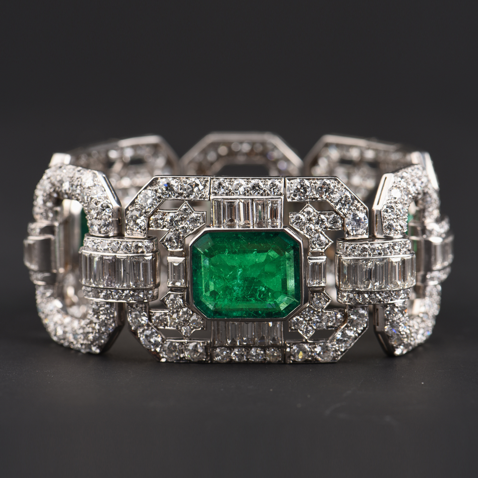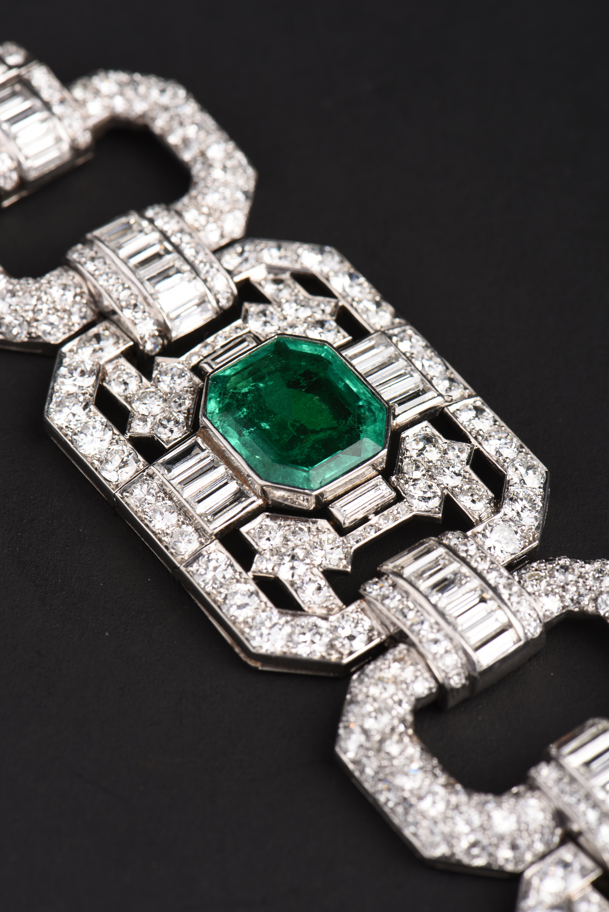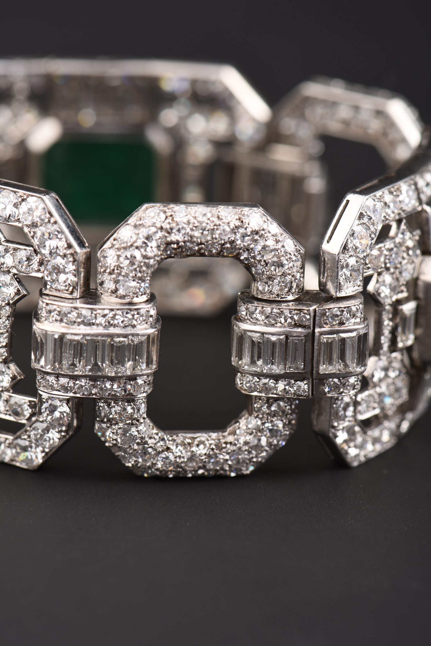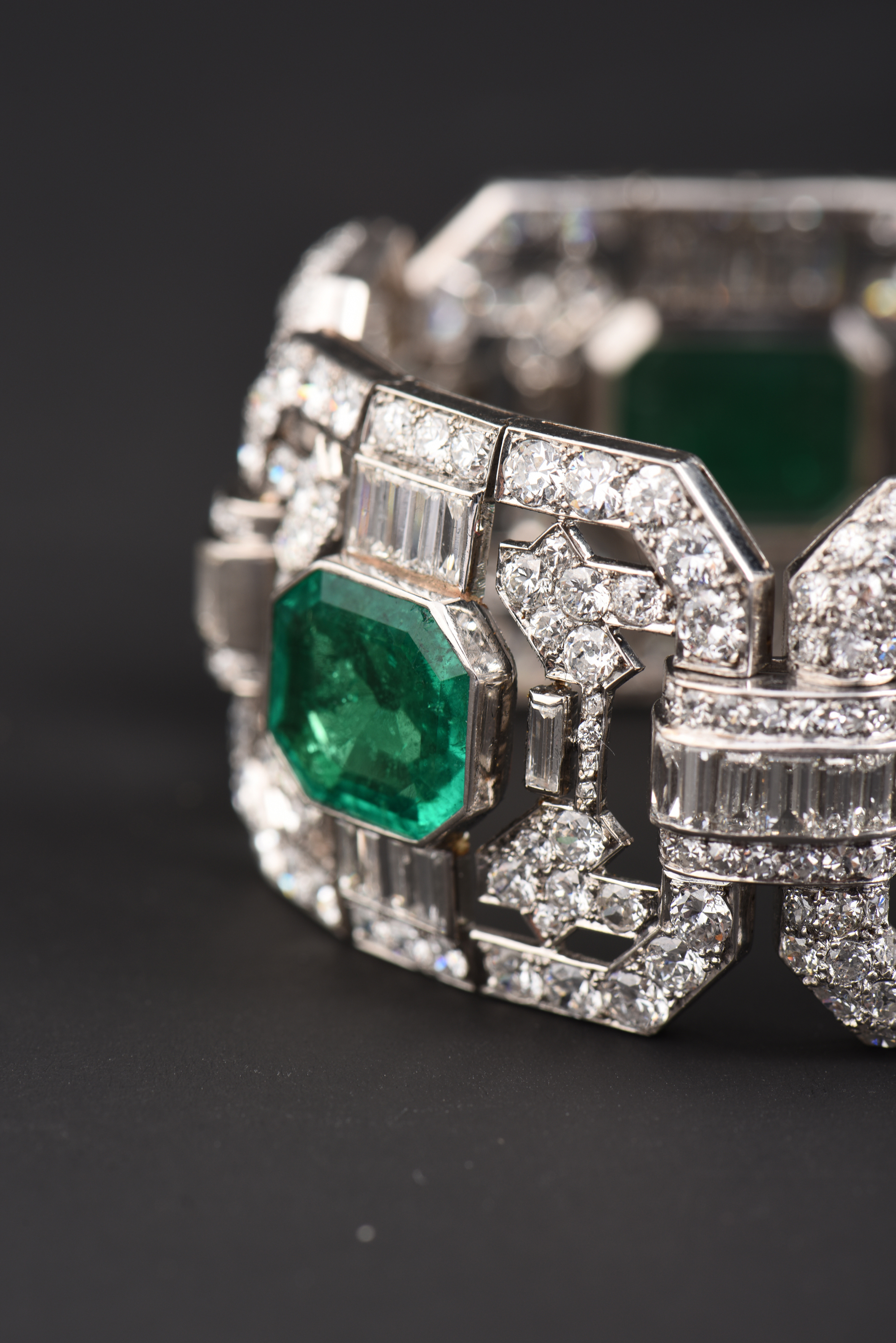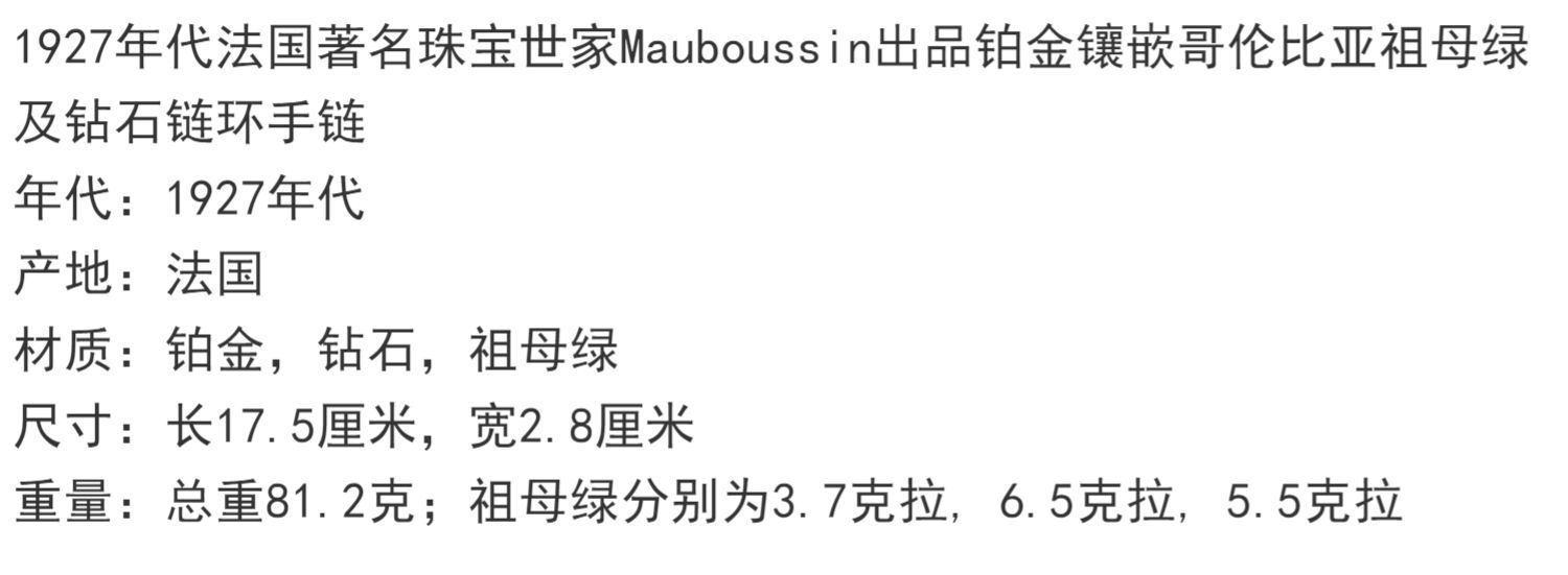 独角鹿西洋古董Mauboussin铂金镶嵌哥伦比亚祖母绿钻石宽手链手镯