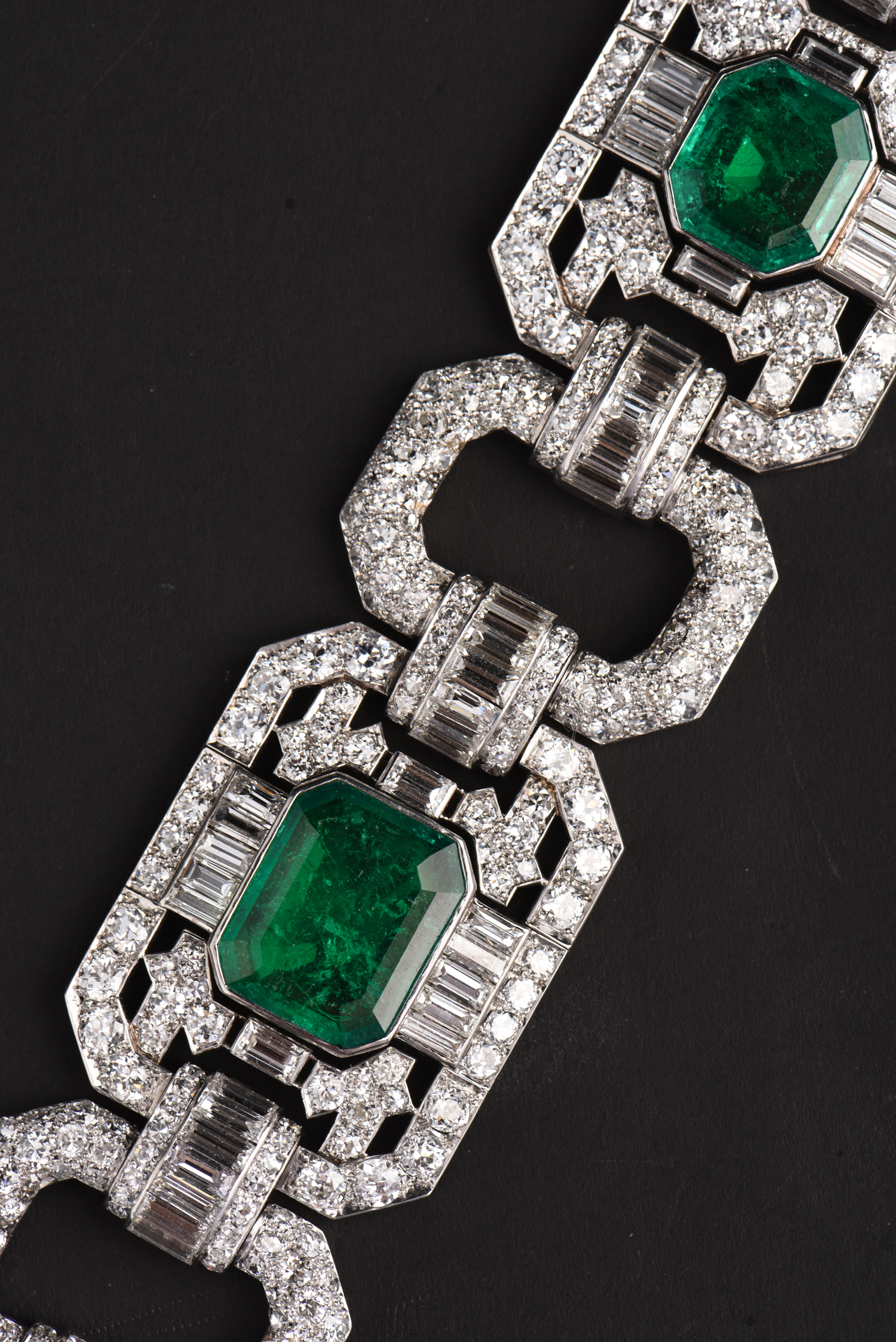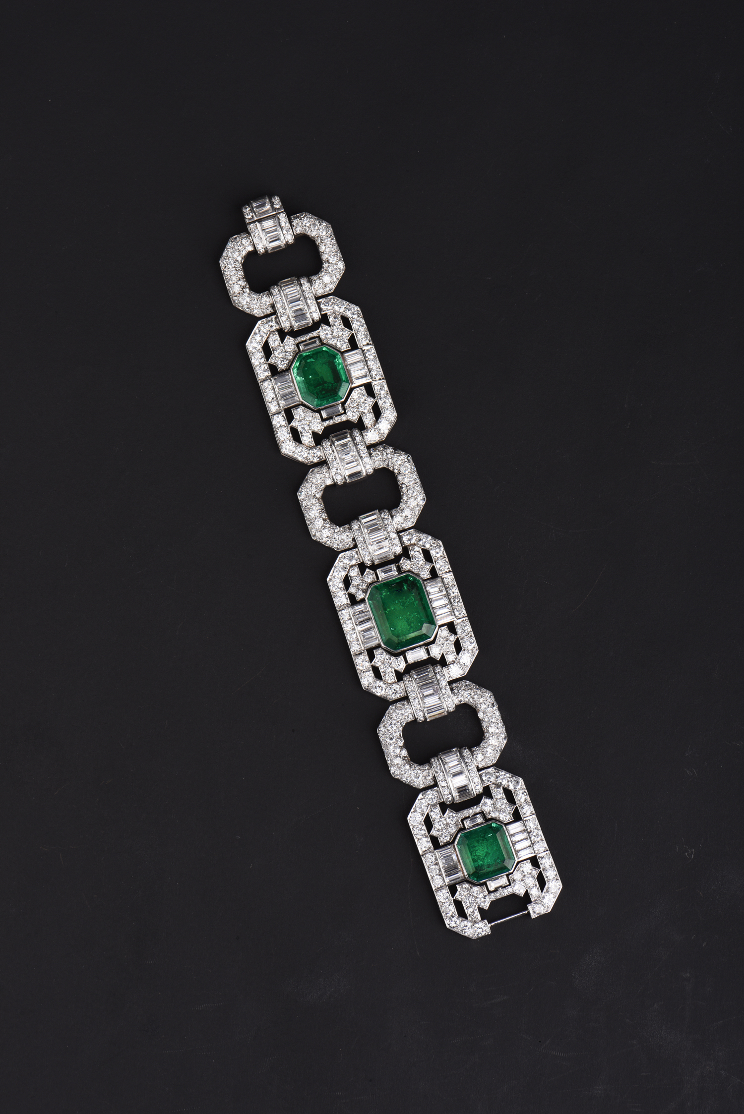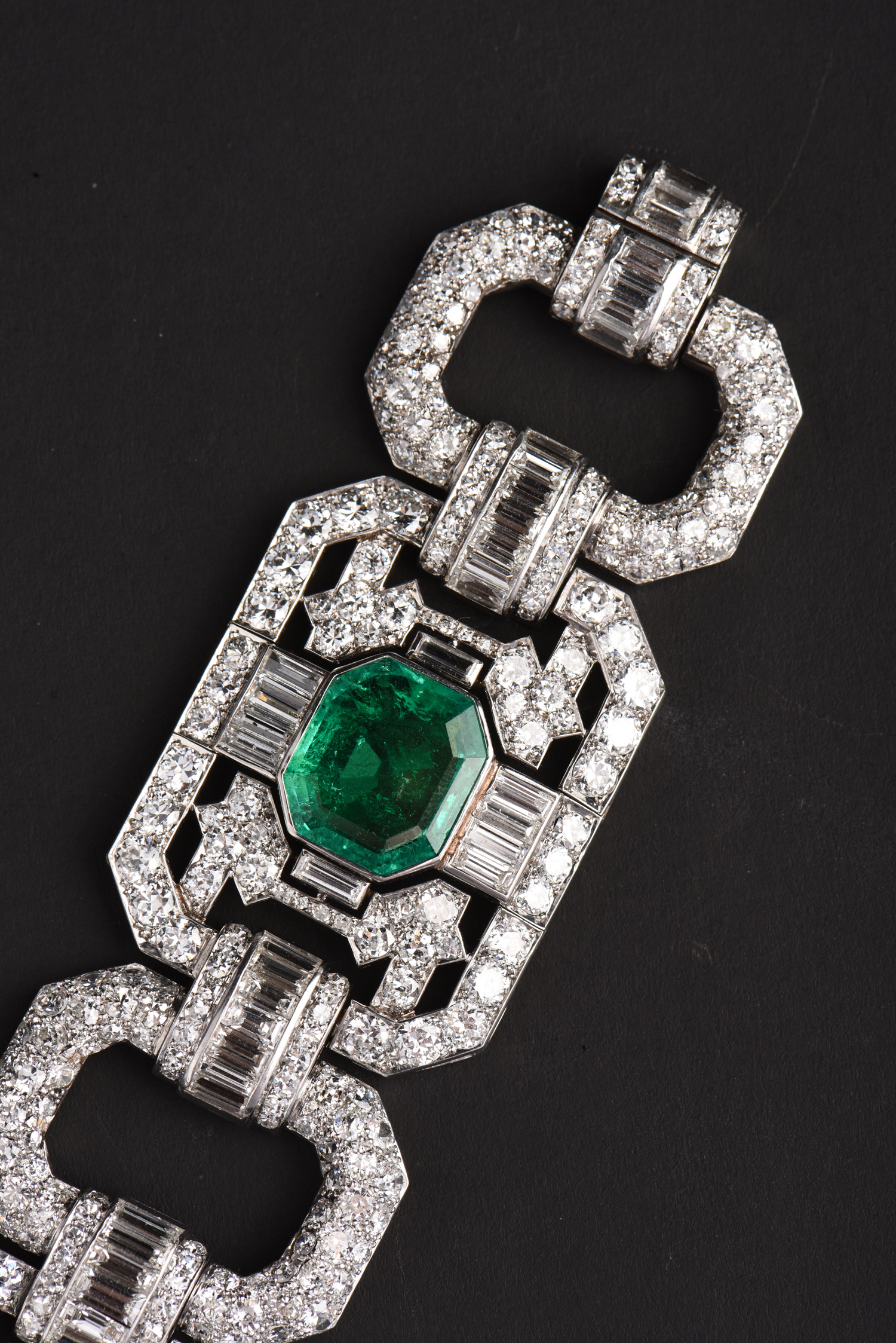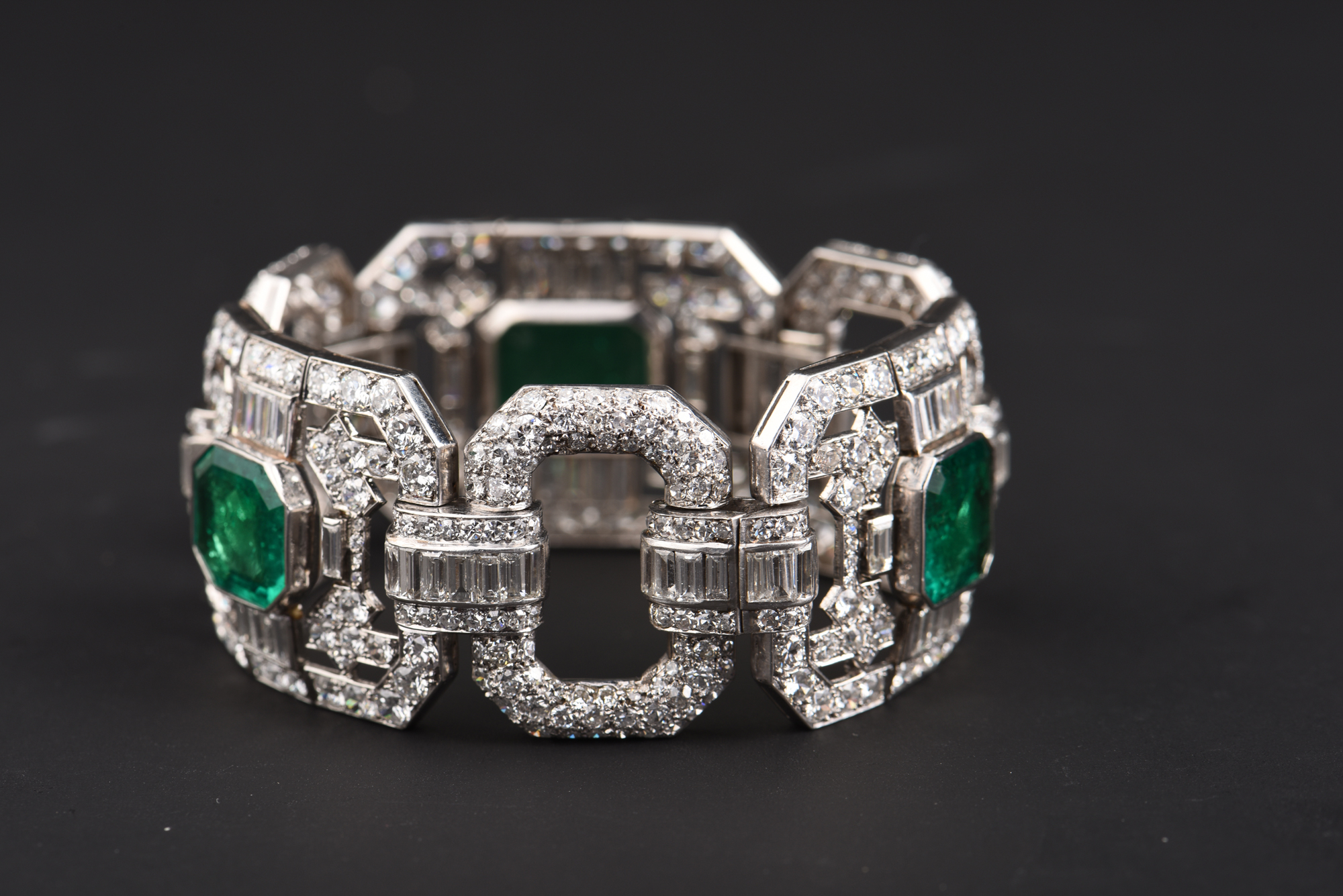 独角鹿西洋古董Mauboussin铂金镶嵌哥伦比亚祖母绿钻石宽手链手镯