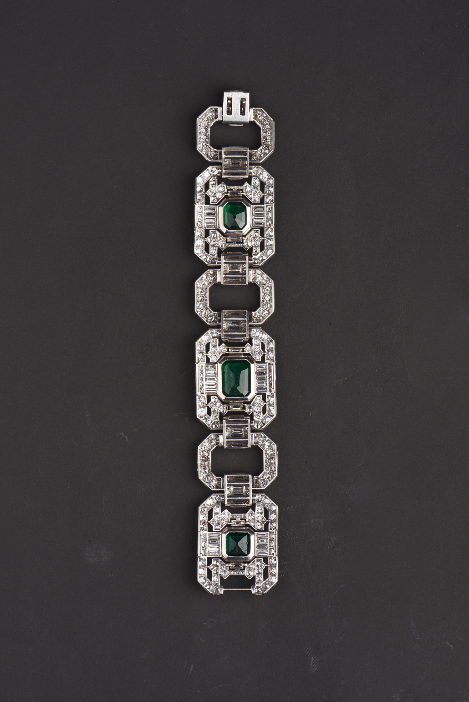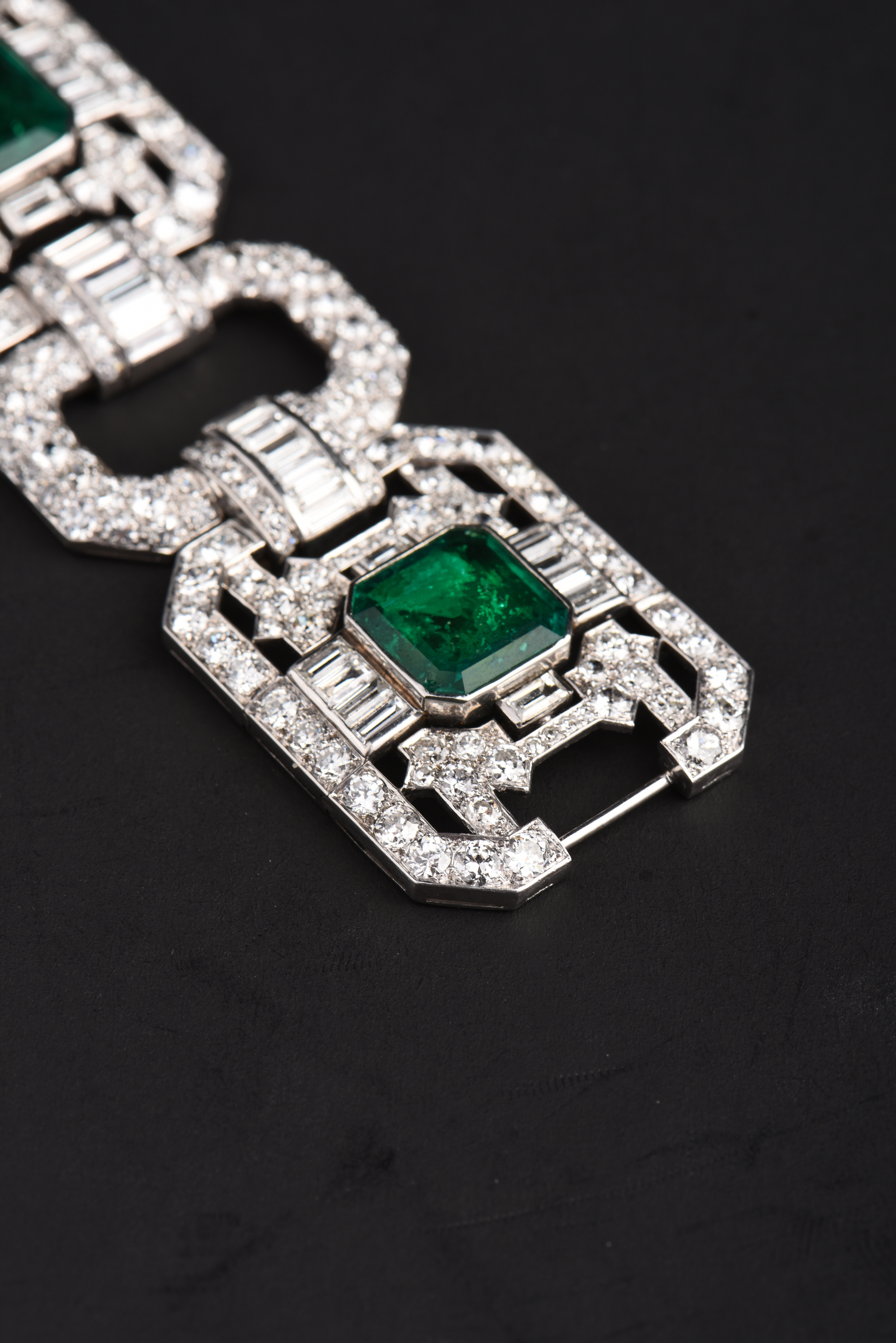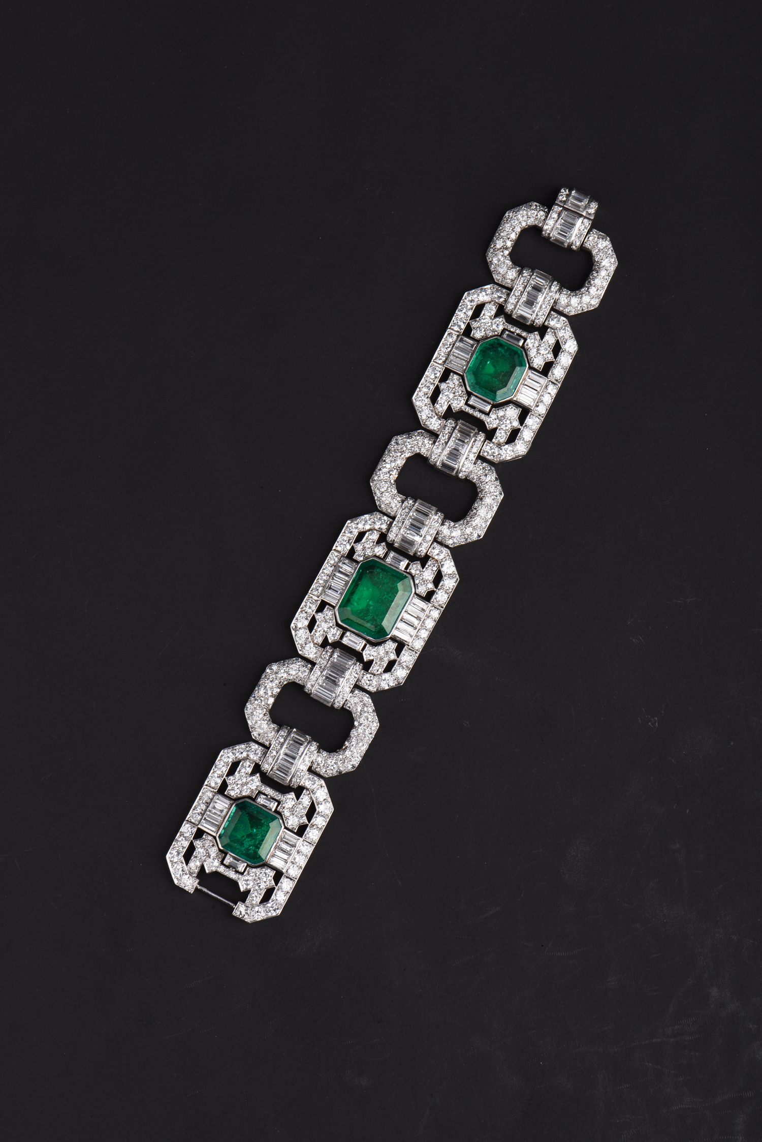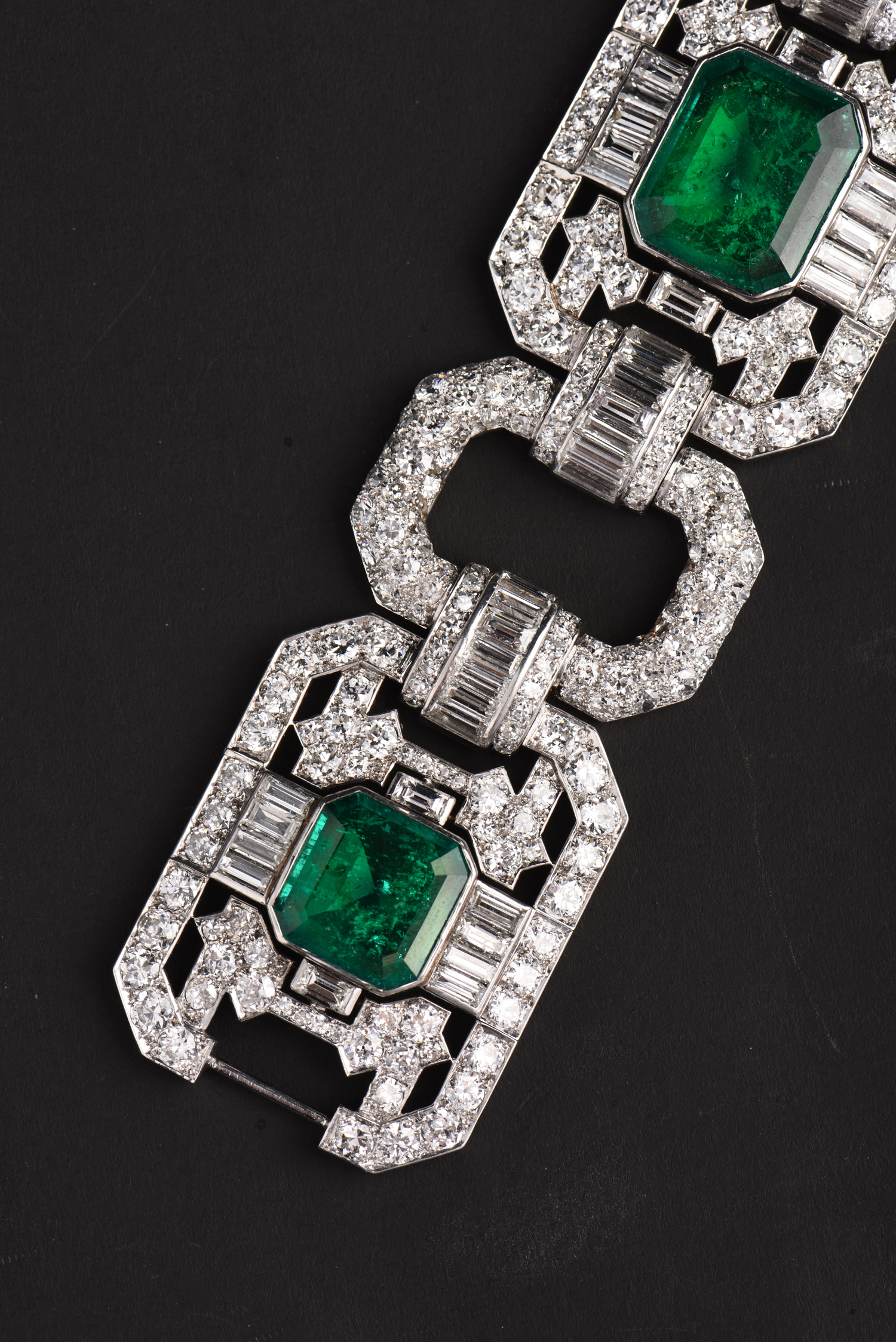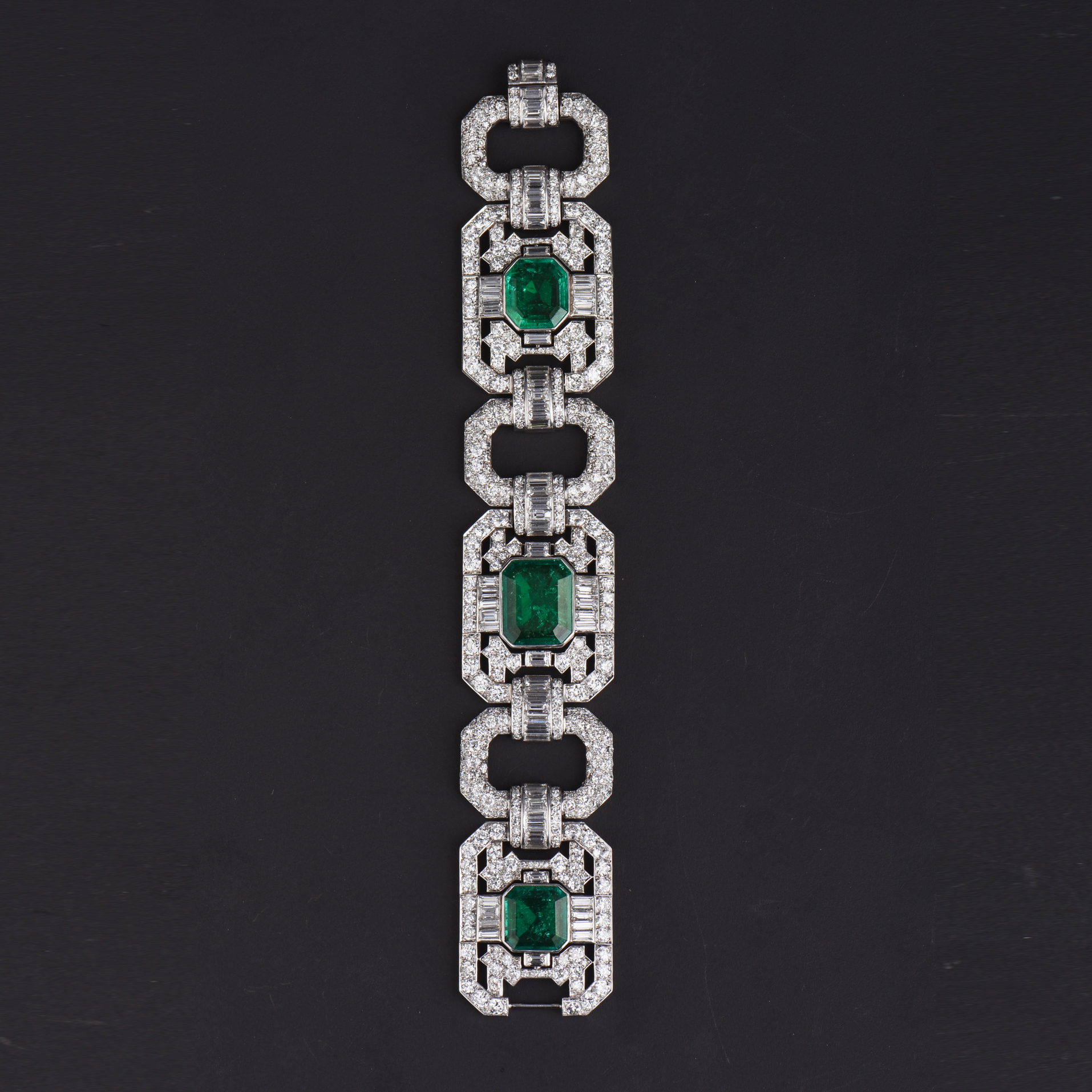 独角鹿西洋古董Mauboussin铂金镶嵌哥伦比亚祖母绿钻石宽手链手镯