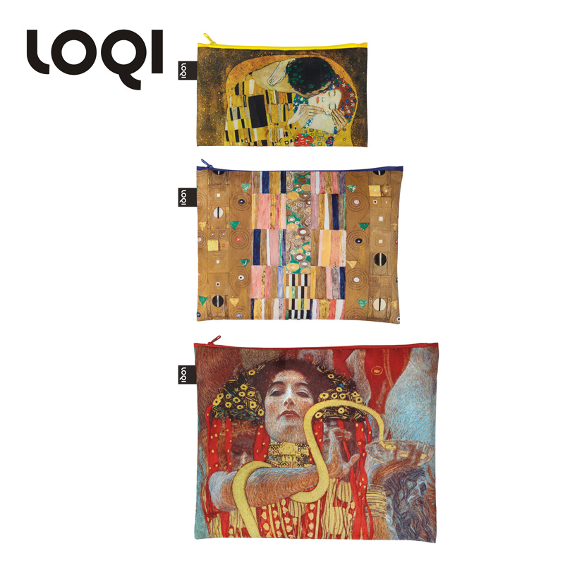 【收纳袋】德国LOQI 博物馆名画系列 环保收纳袋三件套 梵高星空 戴珍珠耳环的少女 蒙娜丽莎的微笑 文具数码配件收纳整理套包洗漱化妆防泼水潮流