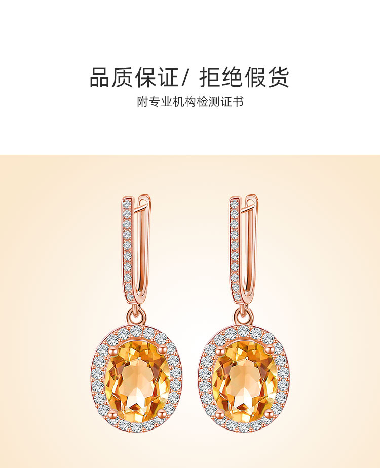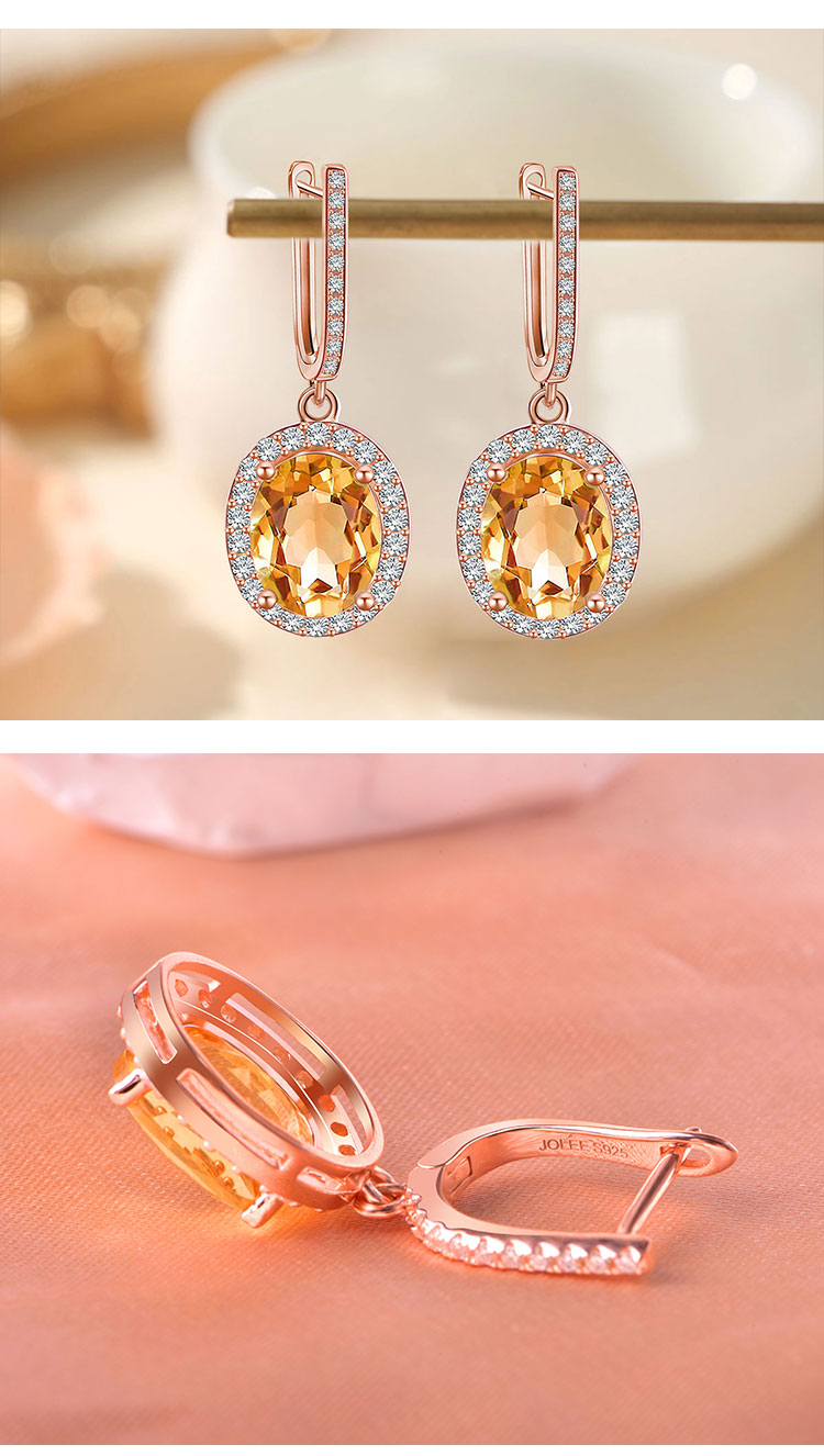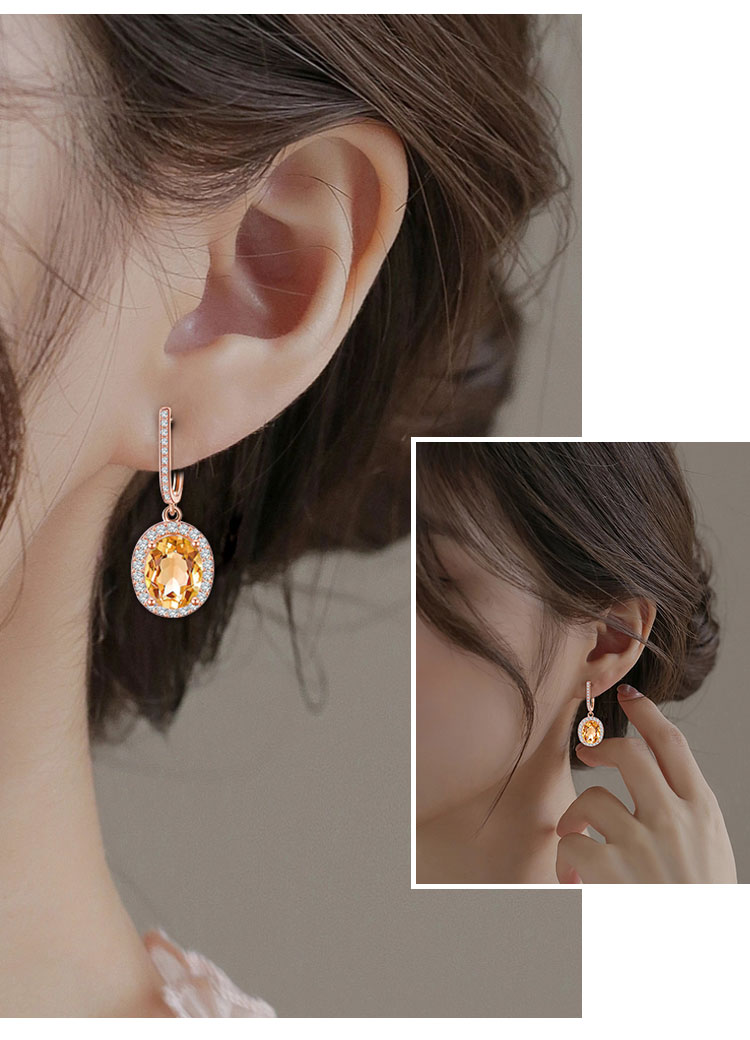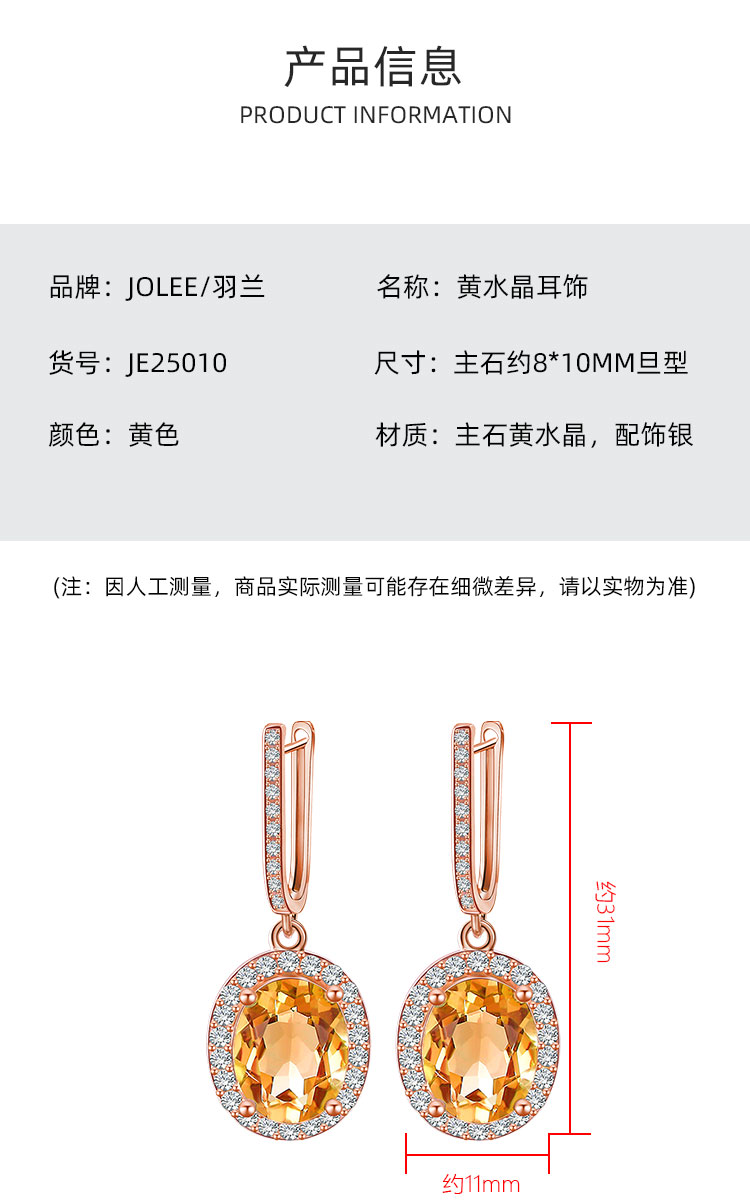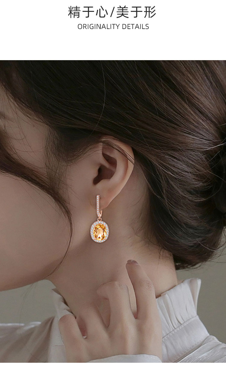 【黄水晶耳环】耳坠女S925银黄水晶轻奢时尚彩色宝石耳扣耳钉饰品JE25010
