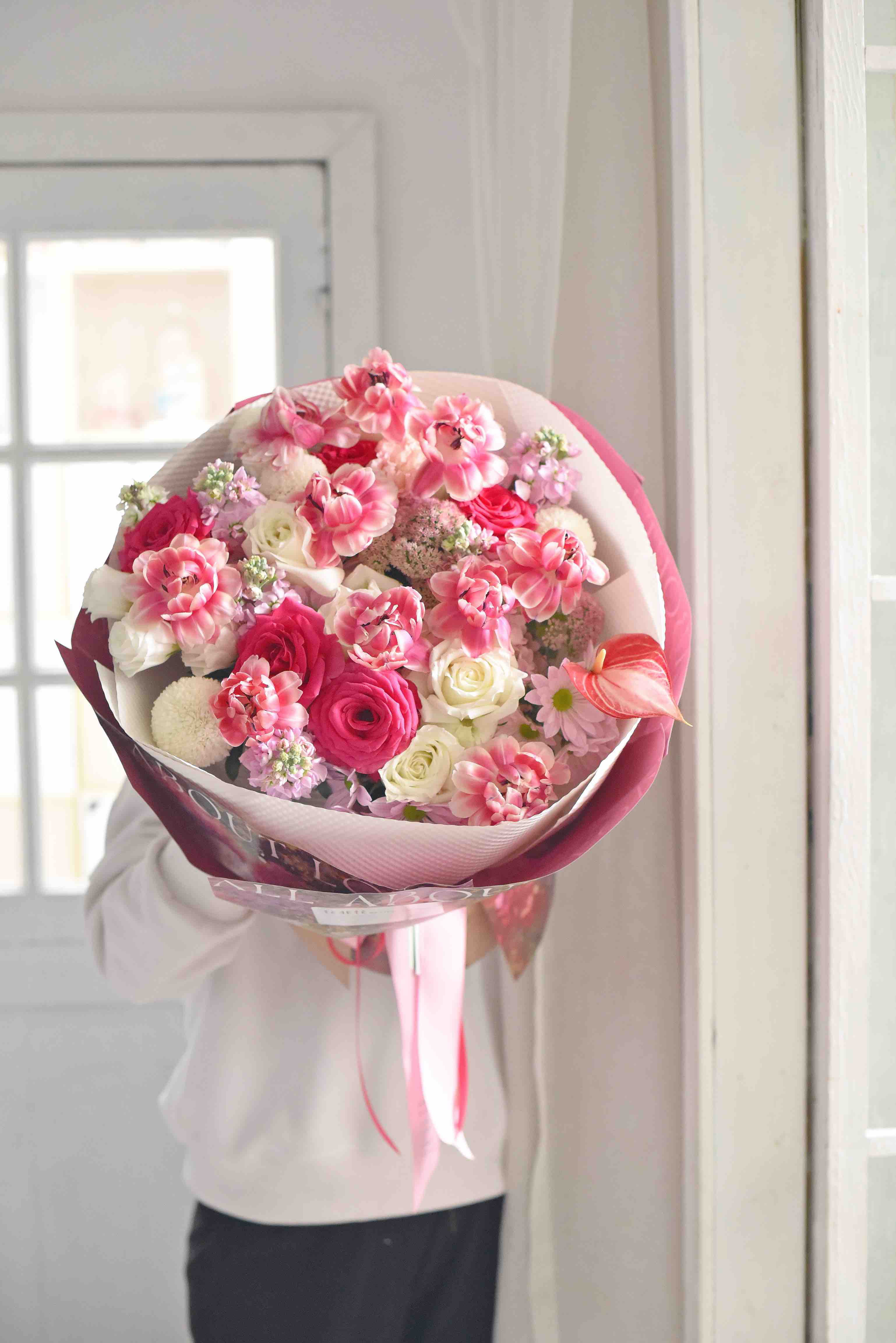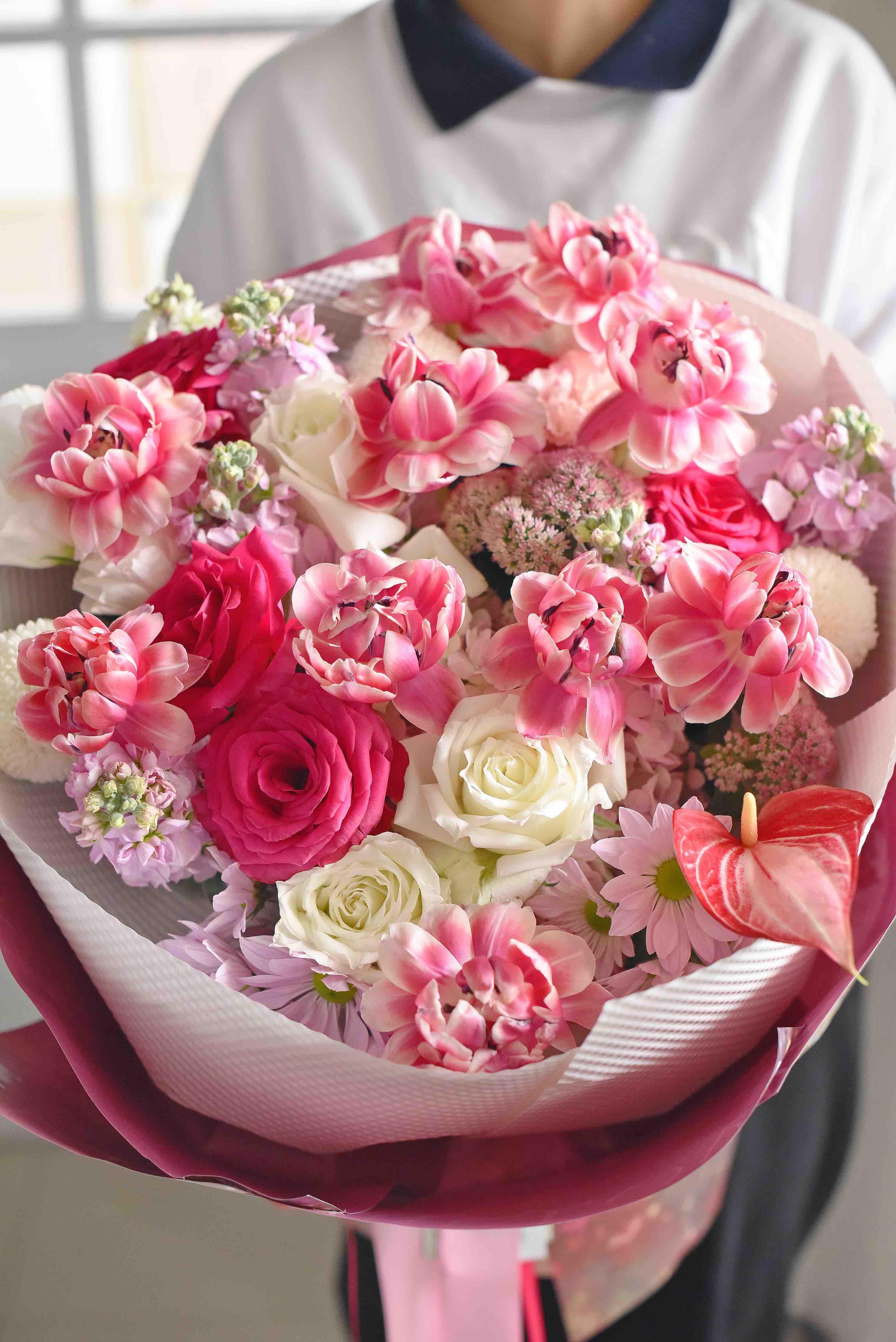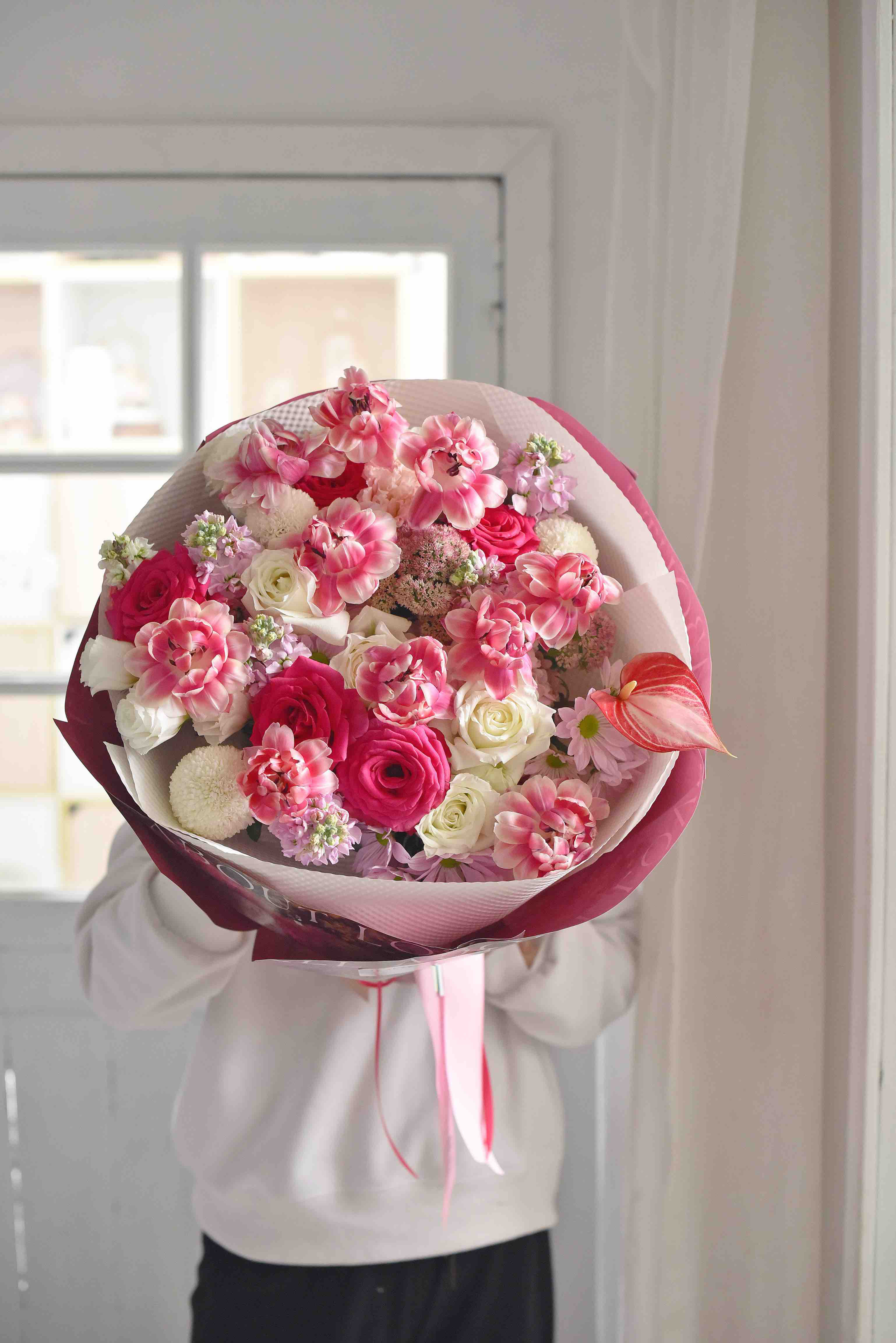 《草莓松饼》 草莓松饼郁金香弗洛伊德玫瑰油画风花束