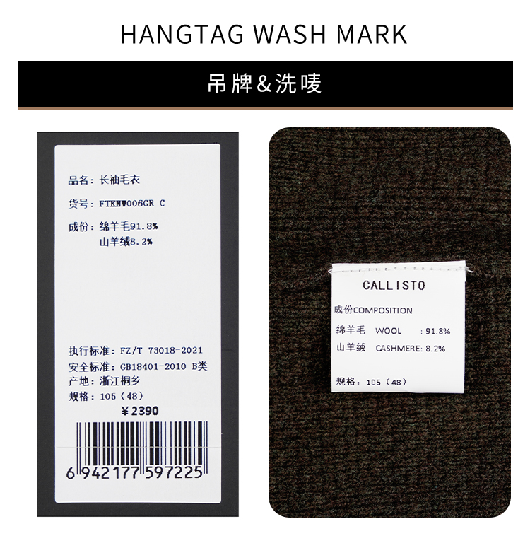 callisto“绒”系列绿色绵羊毛混纺长袖毛衣