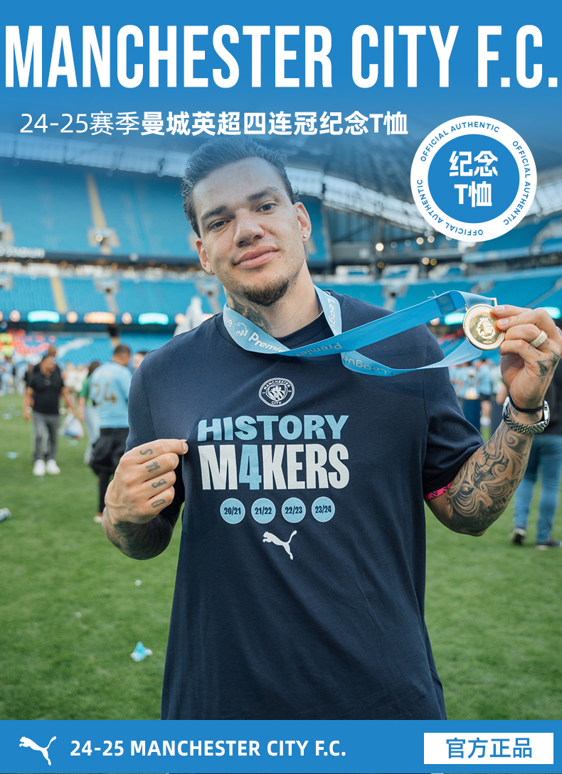 SFS正品 PUMA彪马 23/24赛季曼城英超四连冠纪念T恤783466-06