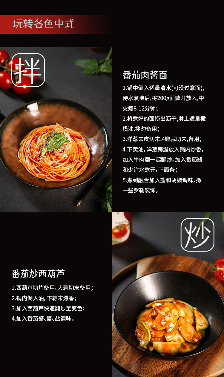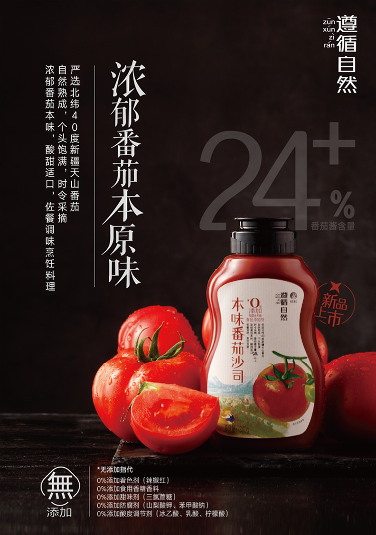 遵循自然本味番茄沙司 ling添加,可点蘸,炒菜,做汤,调制西式酱汁等
