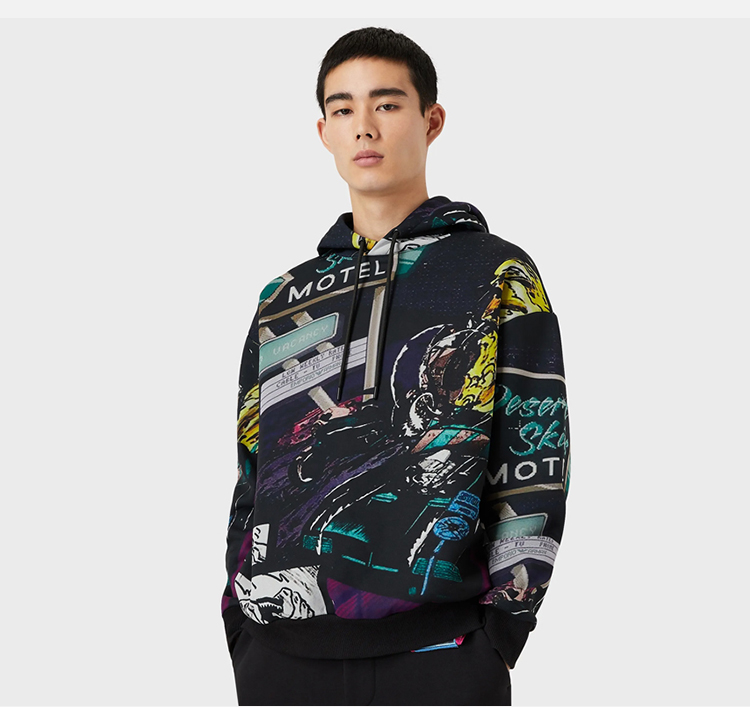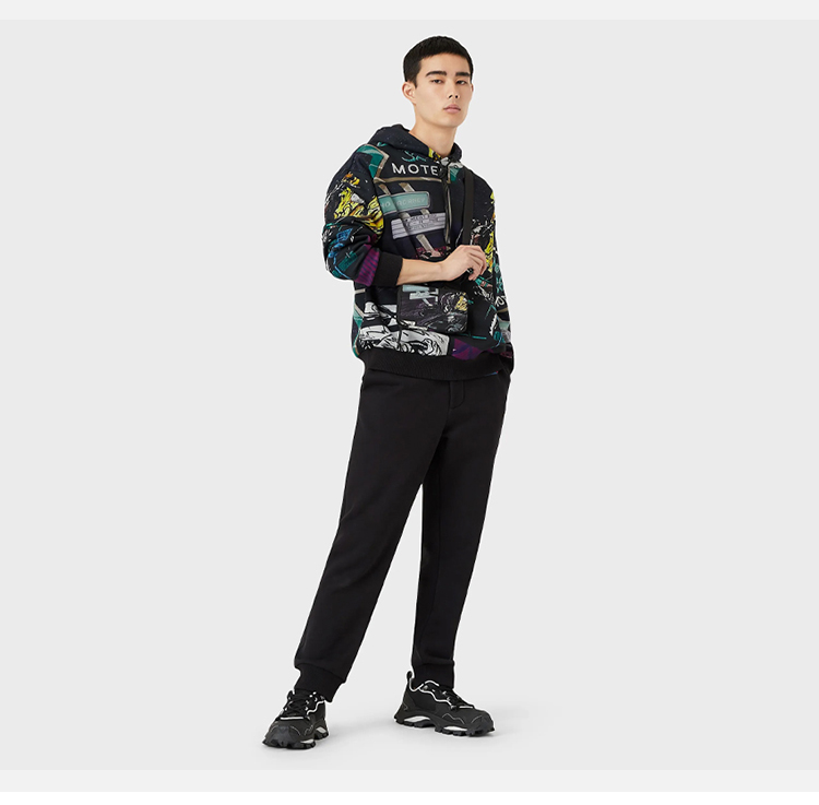 EMPORIO ARMANI 阿玛尼 男士涤纶通体赛车印花连帽卫衣 3L1M8P 1JW2Z F014