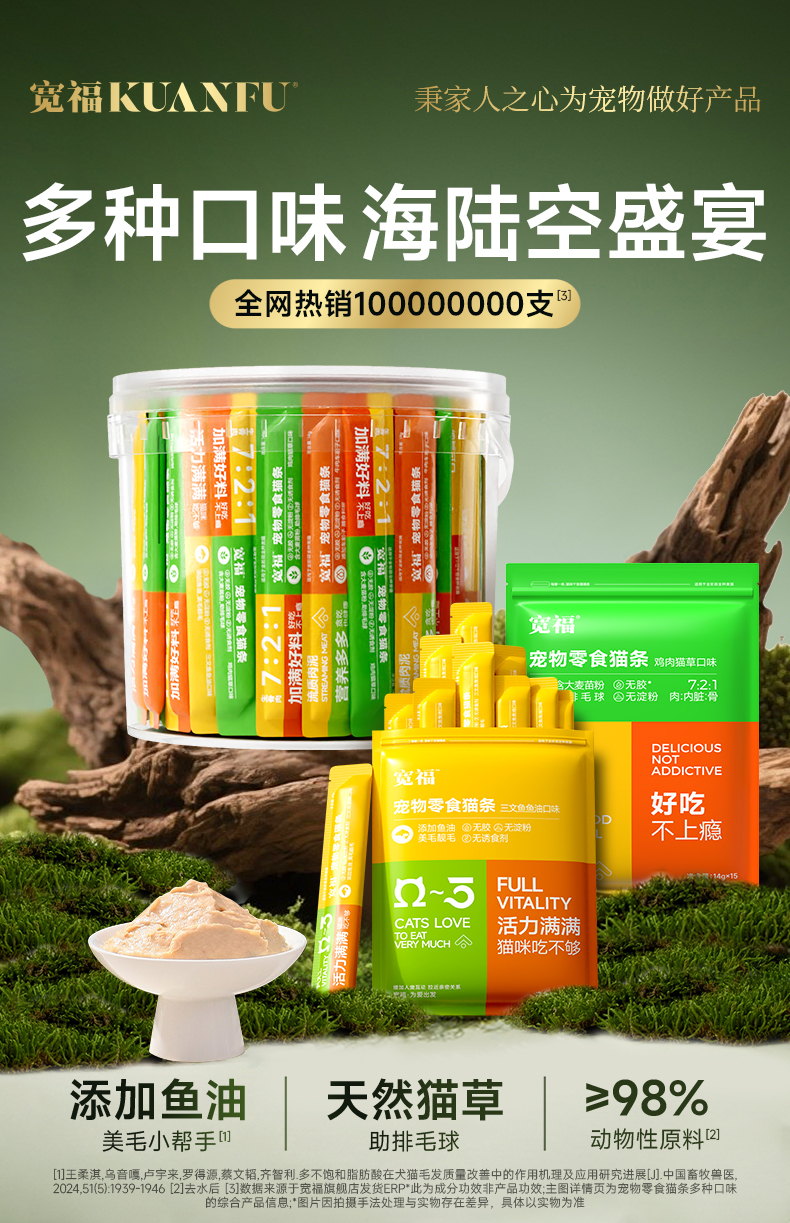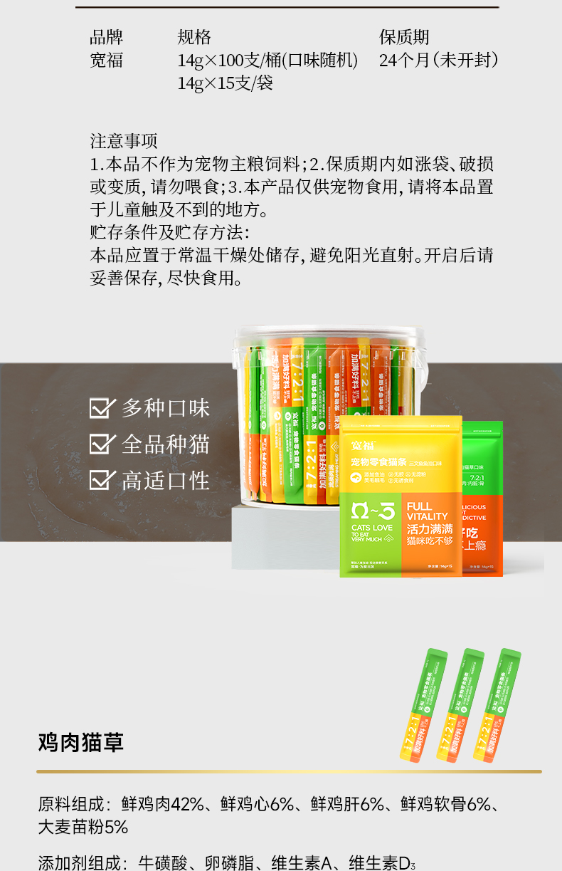 【微信会员特惠】[桶装 100支39.9元]宽福 猫条特惠 混合口味 鲜肉猫条 0胶0诱食剂