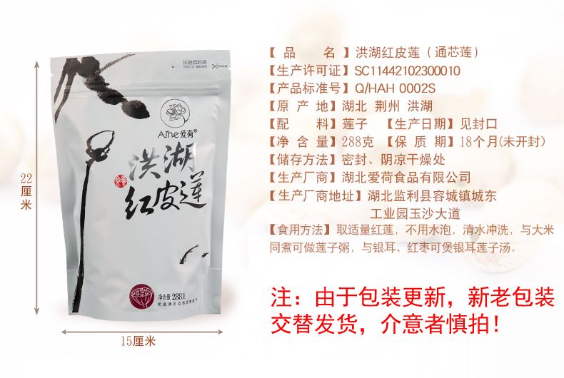 【严选】【有机莲子】爱荷洪湖有机红莲子288g去心钻芯红皮莲湖区农家新鲜干货手工筛选粉糯 288g(厂家直发)