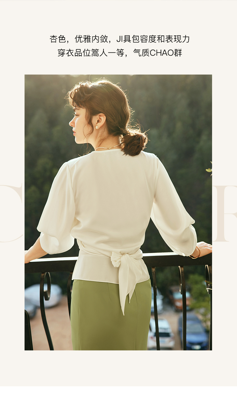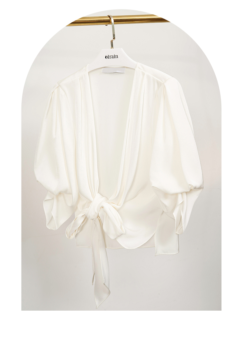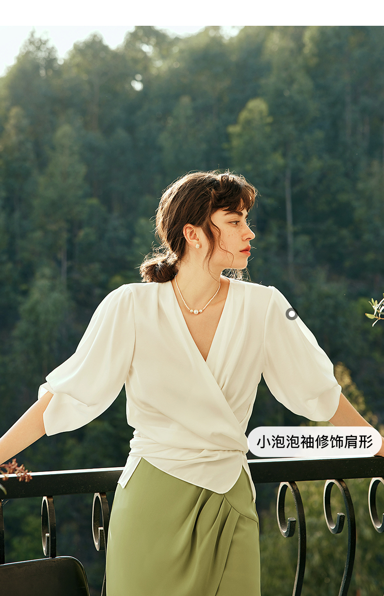 OLrain欧芮儿法式V领杏色衬衫女夏季2023年新款宽松气质休闲衬衣
