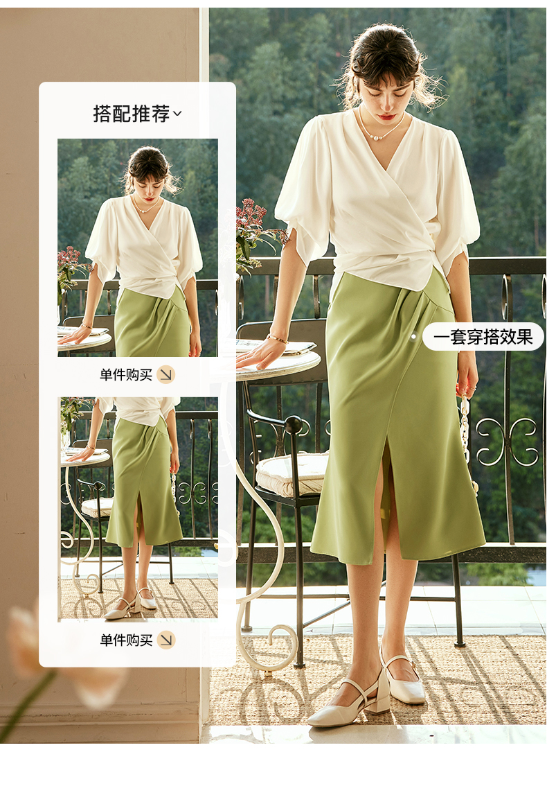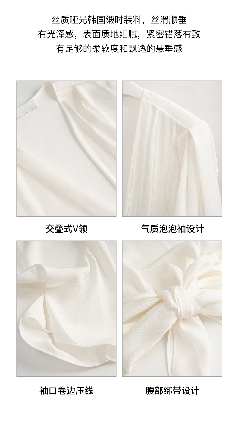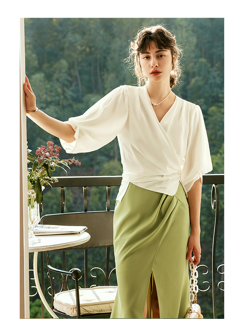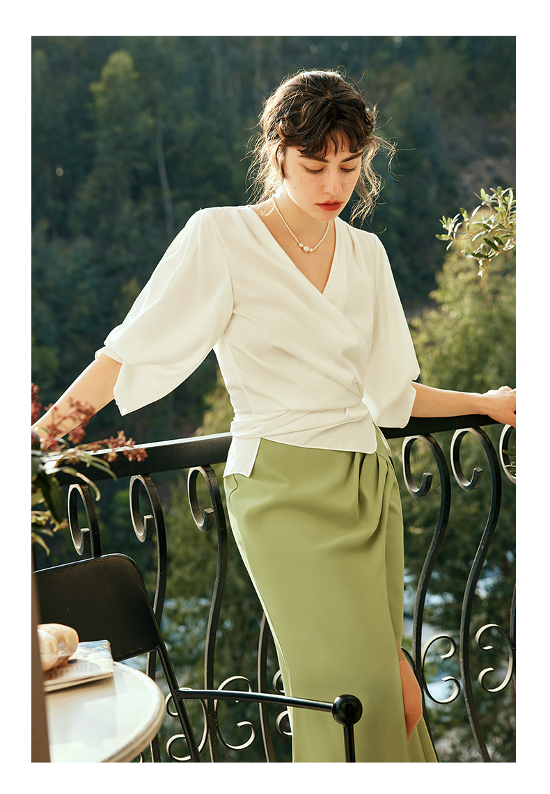 OLrain欧芮儿法式V领杏色衬衫女夏季2023年新款宽松气质休闲衬衣