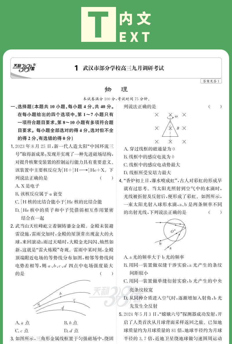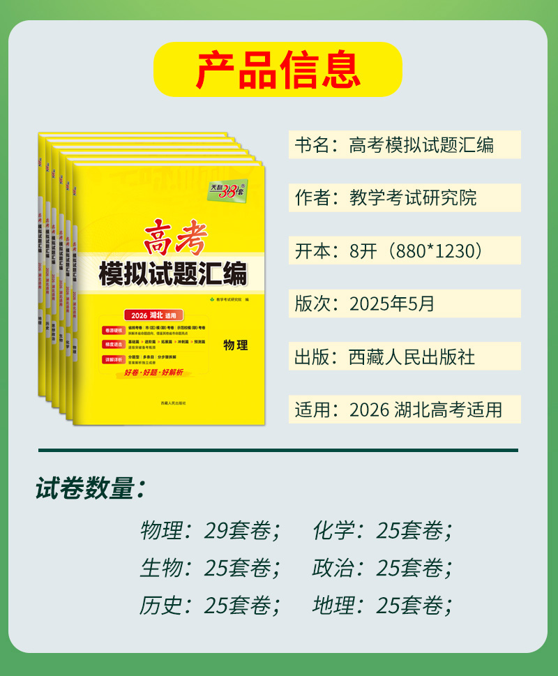 天利38套 2026湖北高考模拟试题汇编 物理 化学 生物 政治 历史 地理