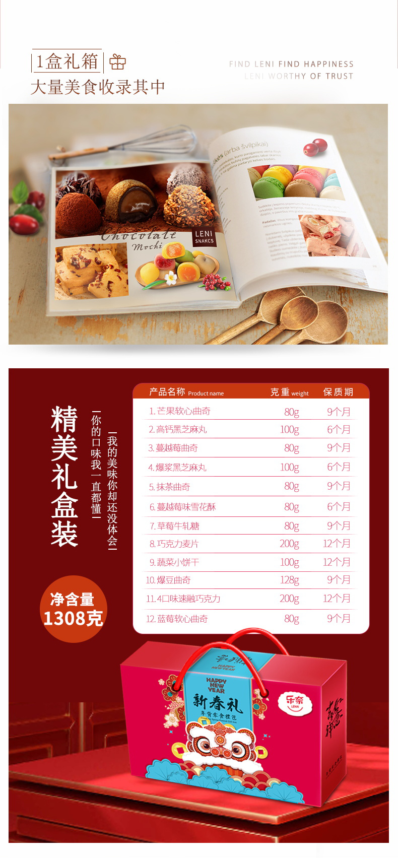 乐奈新春礼网红糕点糖果大礼箱JL-m3(1308g)