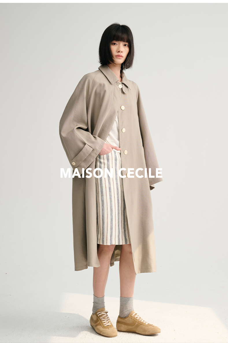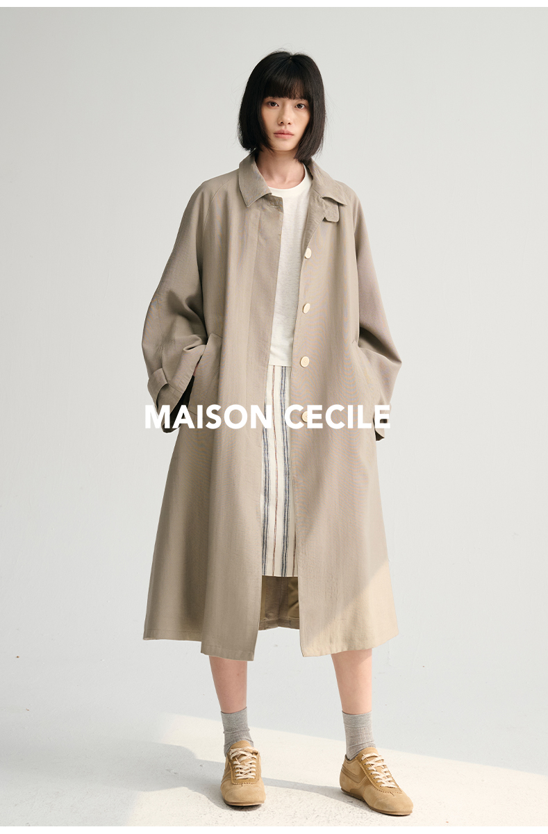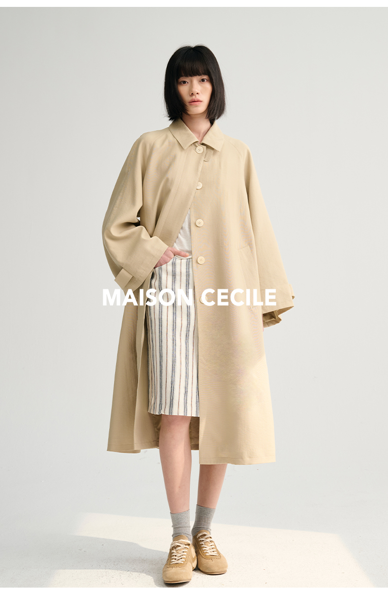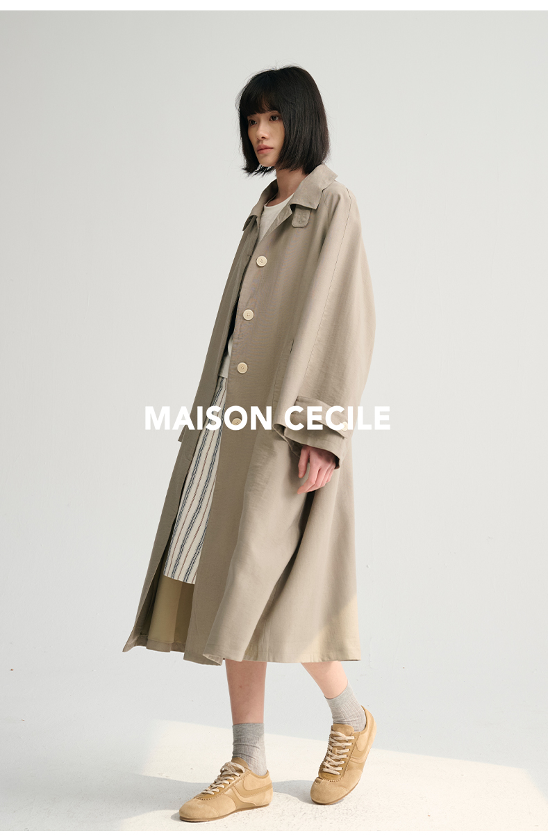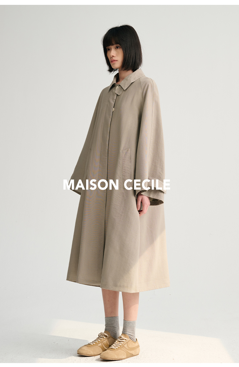 MAISON CECILE灰绿/卡其水洗感棉A摆大袖口廓形风衣
