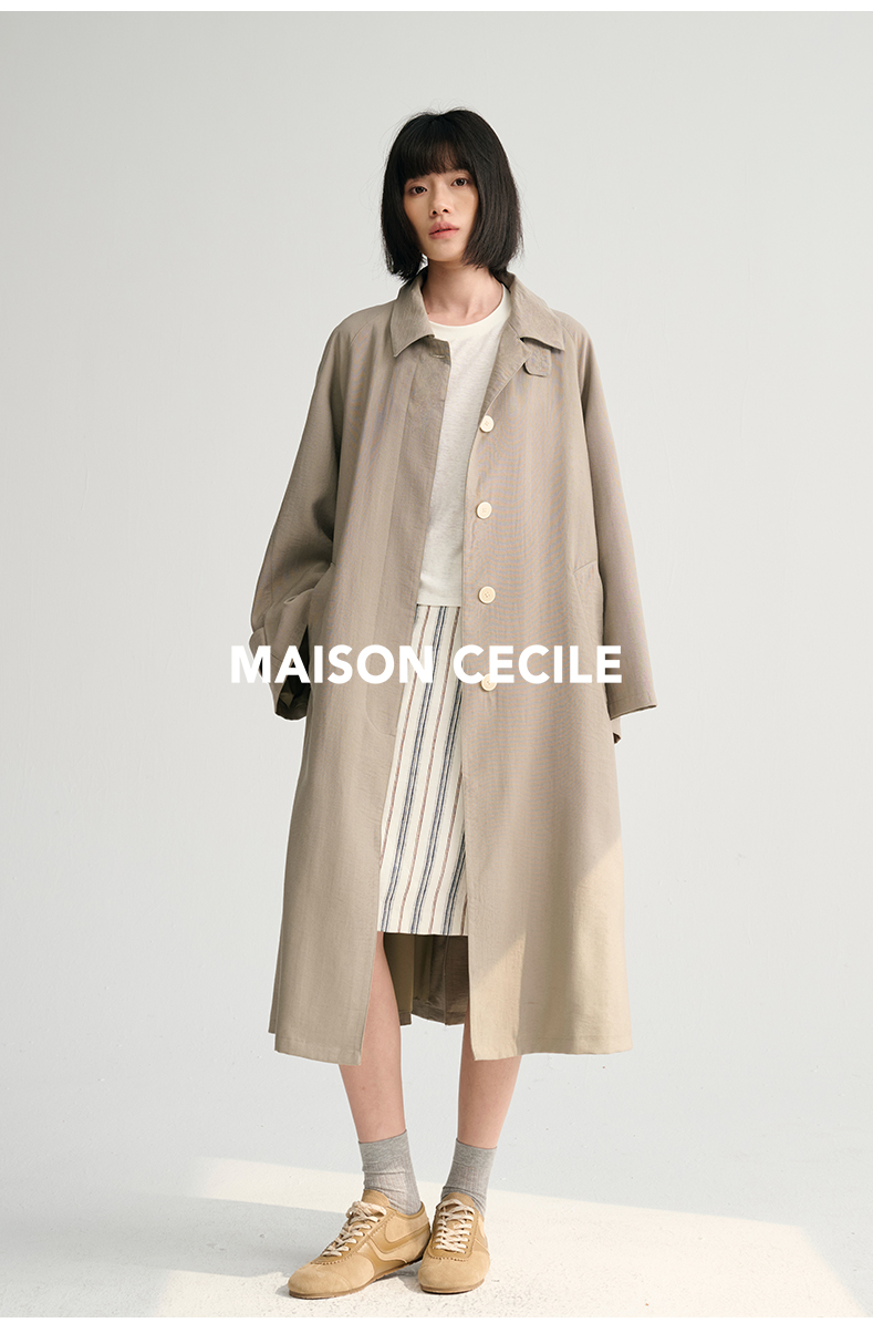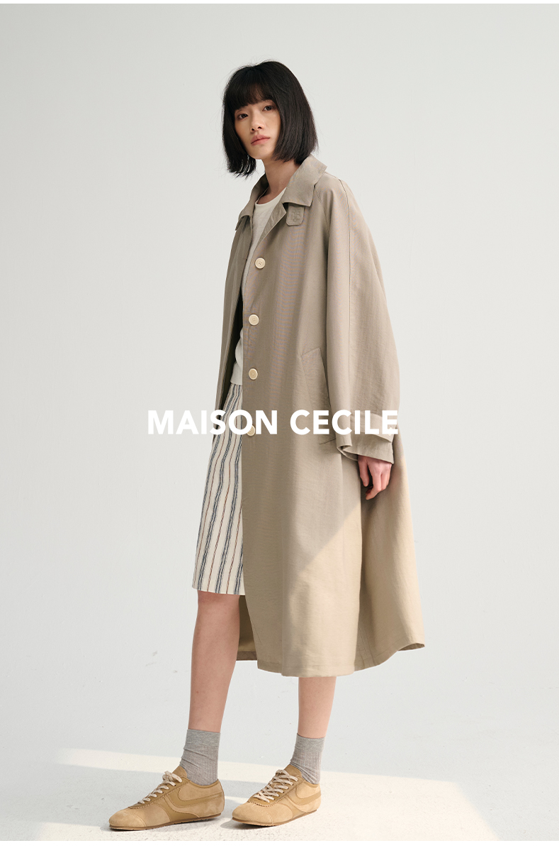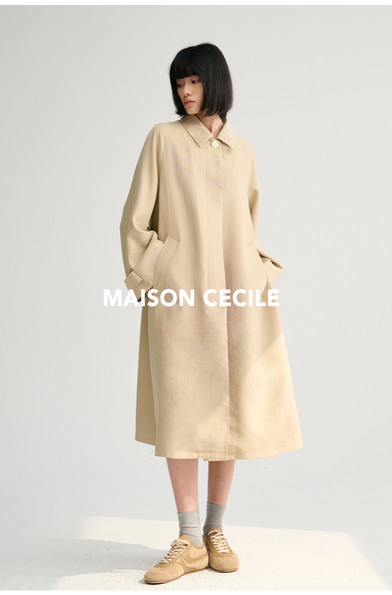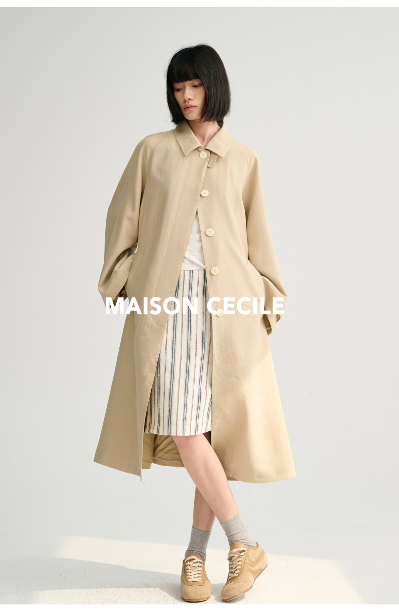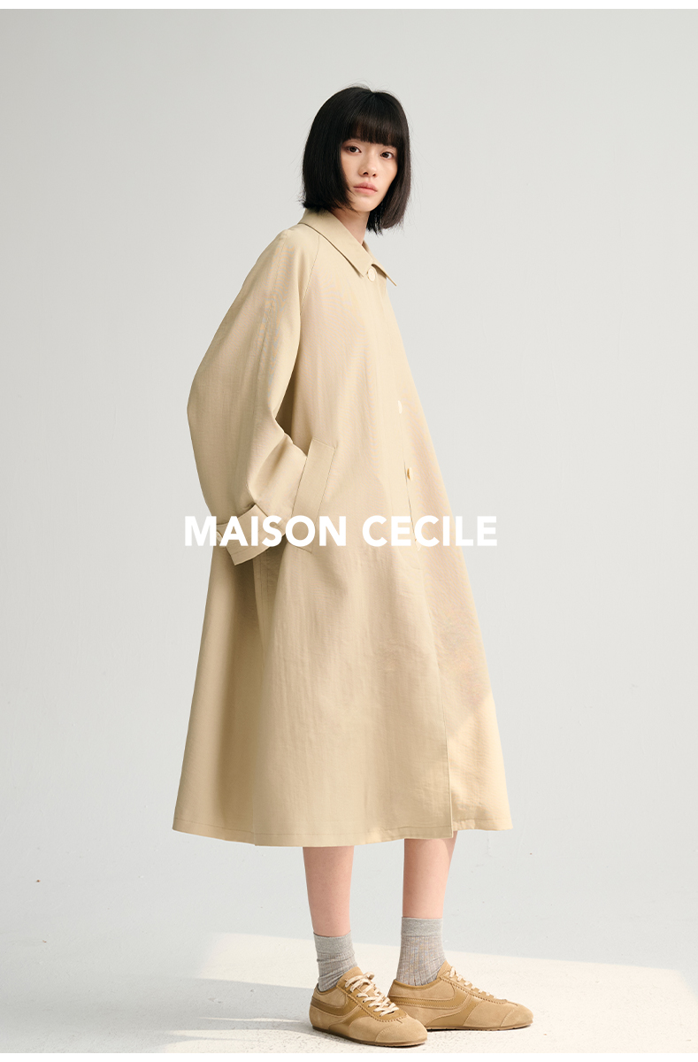 MAISON CECILE灰绿/卡其水洗感棉A摆大袖口廓形风衣