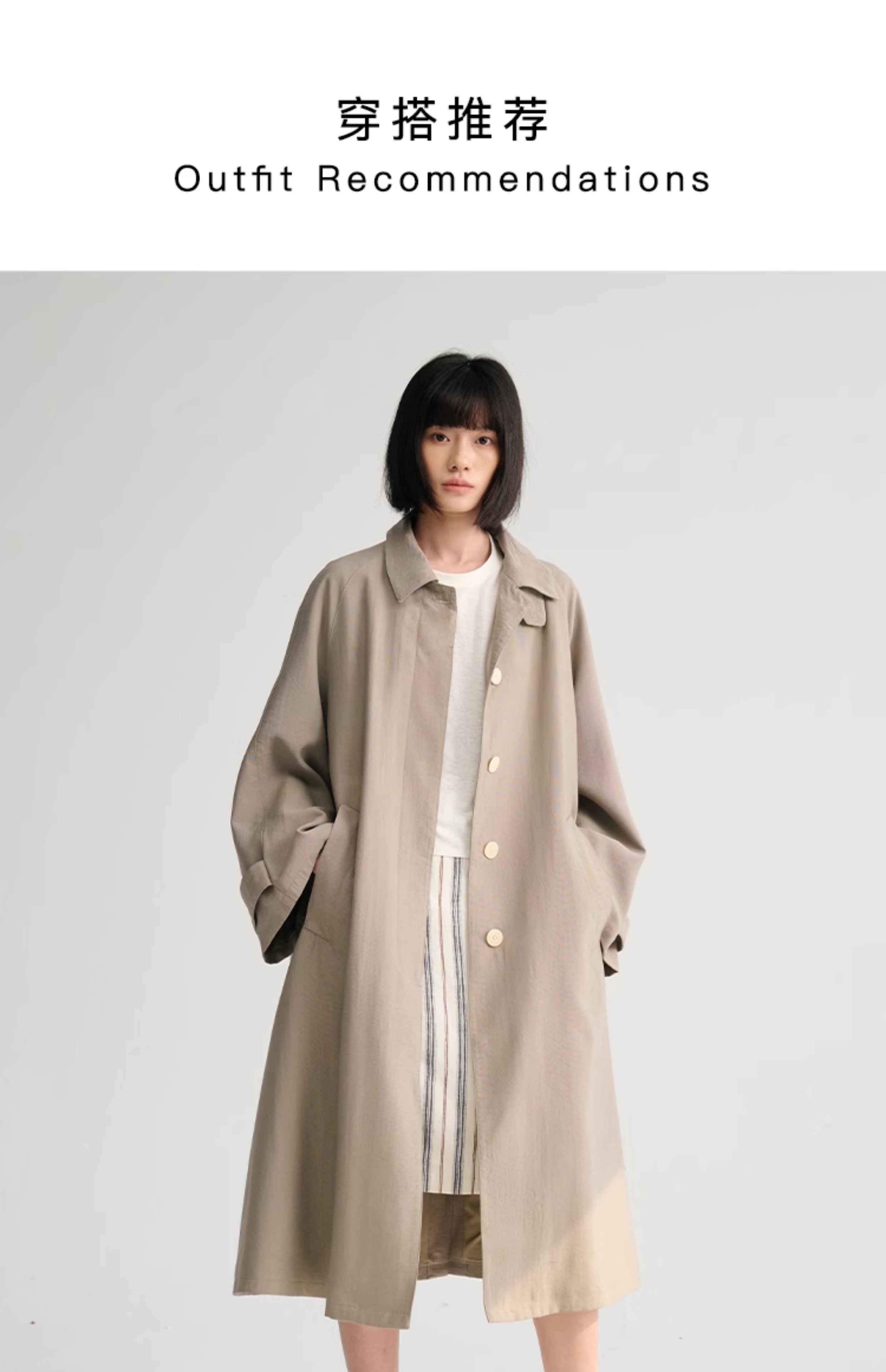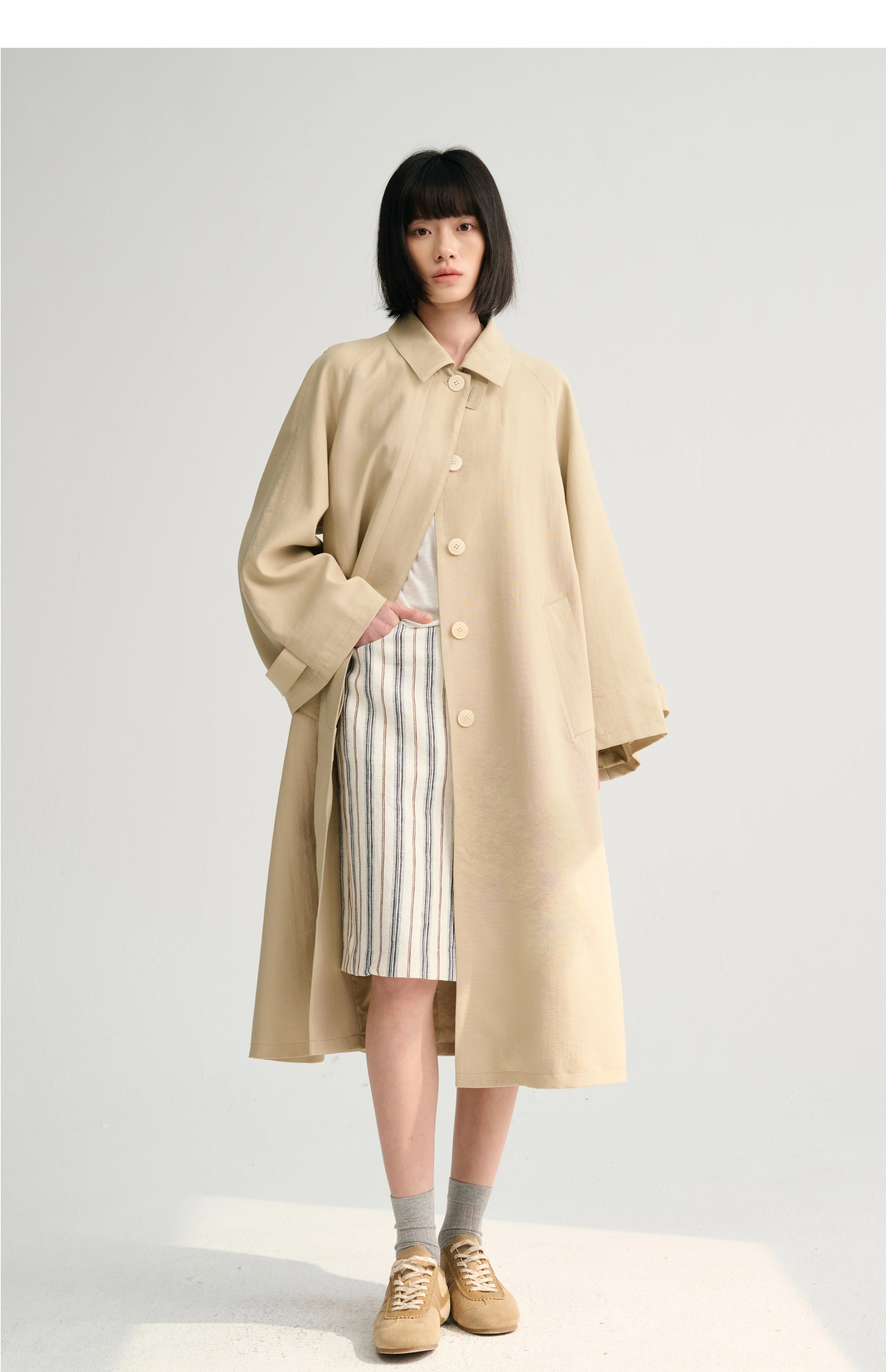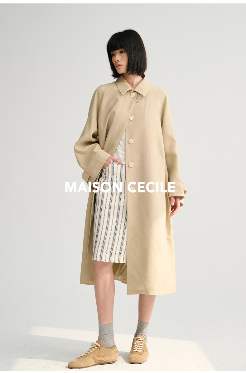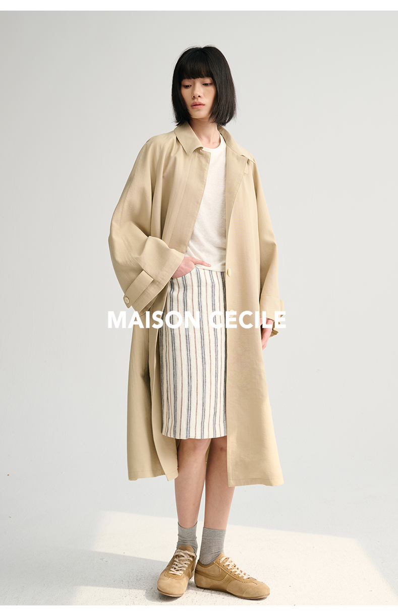 MAISON CECILE灰绿/卡其水洗感棉A摆大袖口廓形风衣