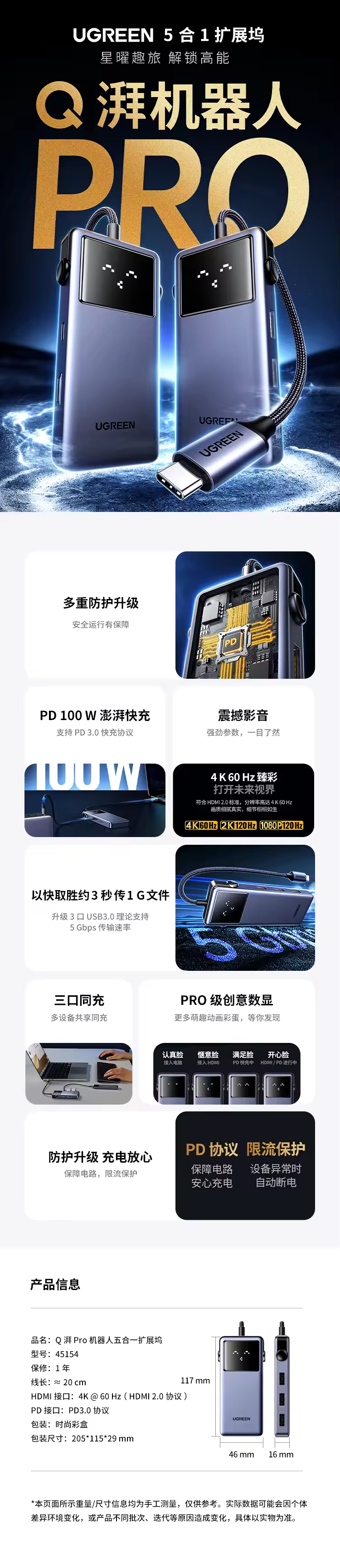 连接线 机器人五合一扩展坞 深空灰 - 绿联